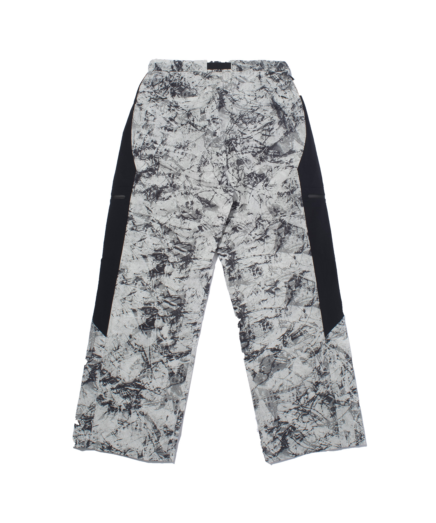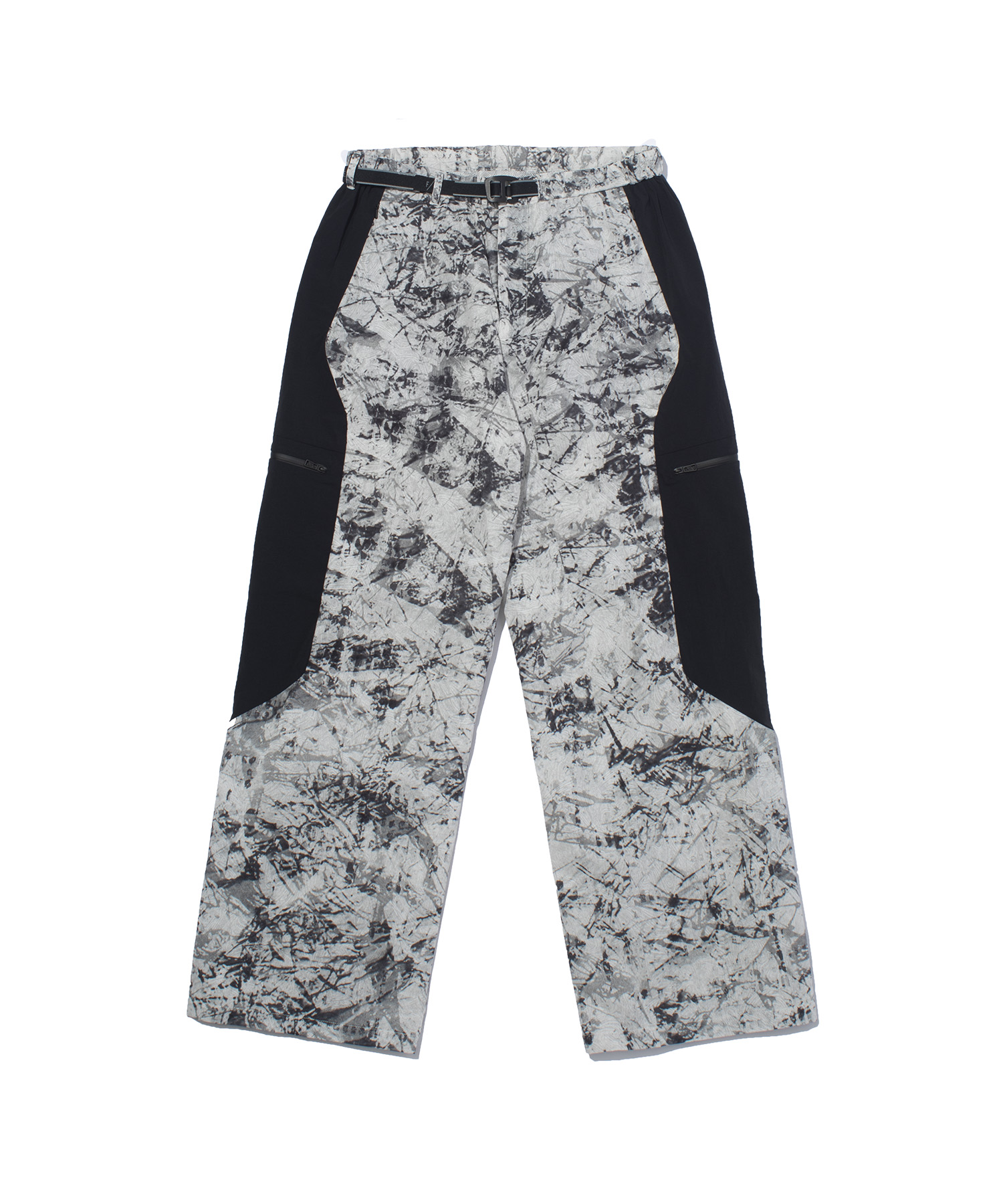 電気自動車のリチウムイオン電池内部で使用されるセパレーター素材を再構築し、防水性と通気性を兼ね備えたハイスペックマテリアル“TEXNICR”を用いたストレートパンツ。