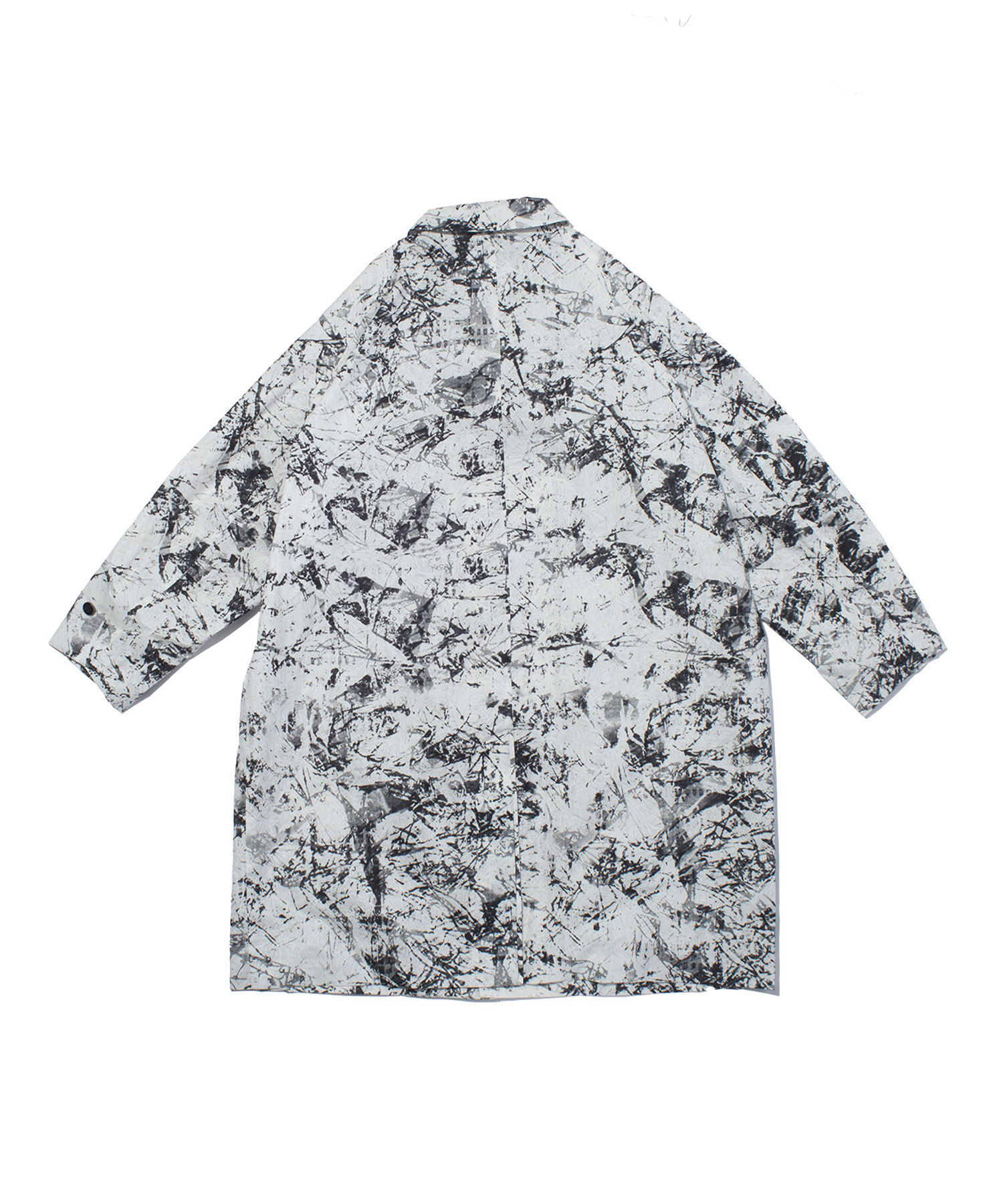 前立て・カフス・ファスナーにはホットメルト加工とシワ加工のコントラストを効かせ、ミニマルで立体的な表情を加えています。