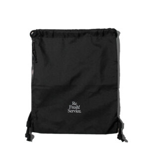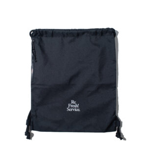 サウナグッズをまとめて持ち運べるReFresh!Serviceのナップサック。ショルダーストラップがドローコードの役目を果たし、物の出し入れも容易。側面に小物用のファスナーポケット付き。今回よりネイビーが仲間入り。※この製品は、BAGBASEというイギリスのブランドが作る商品をボディとして使用しており、日本基準の商品管理は難しく、製品化や仕入れ時期によって、色やサイズのバラつき等個体差がございます。