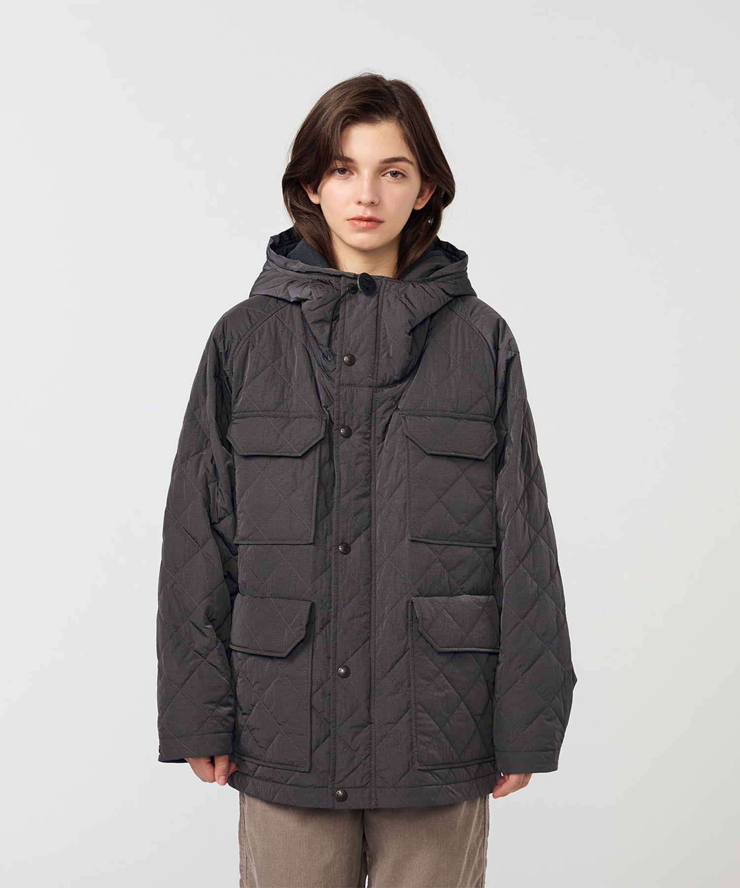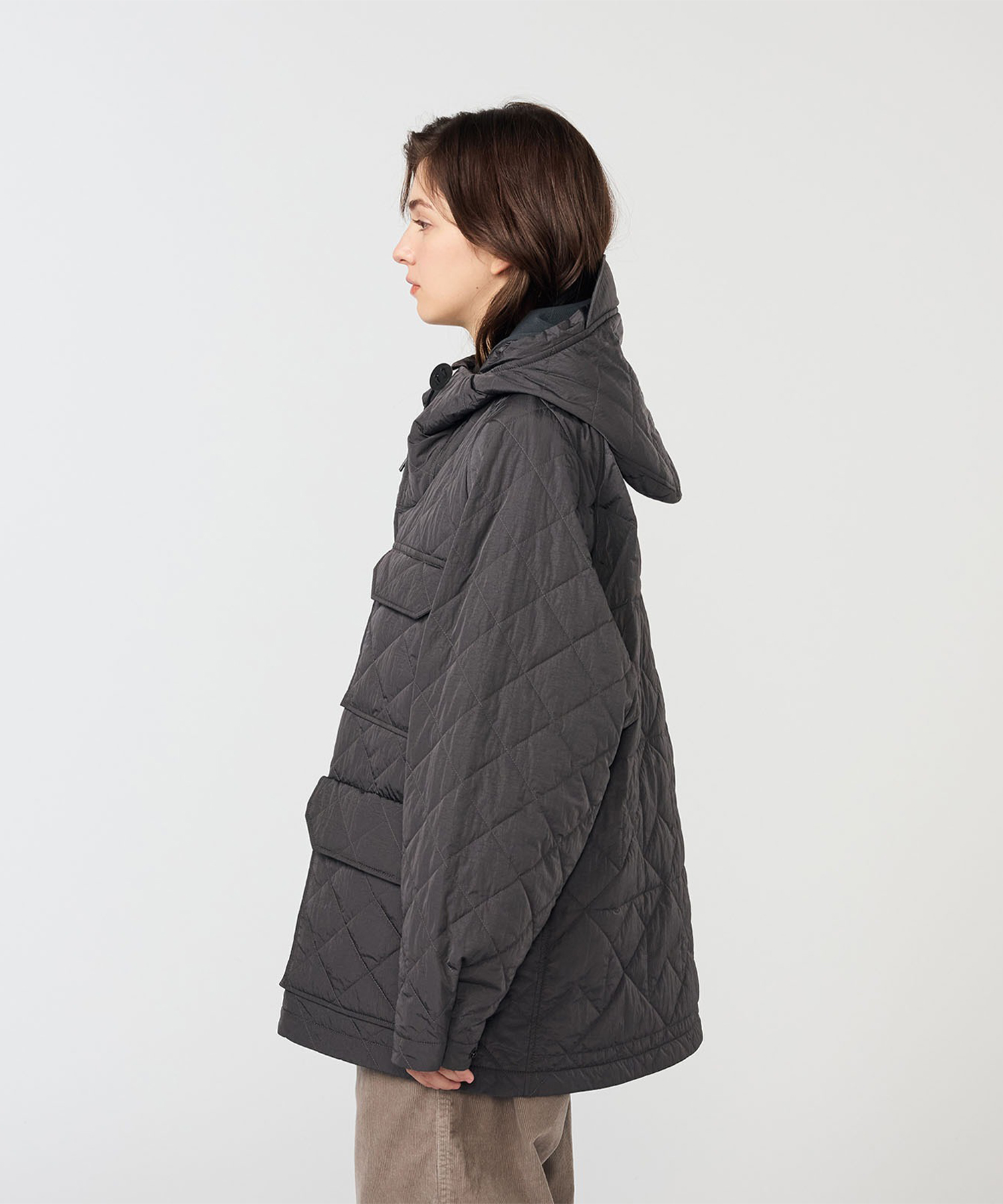 ・リサイクルナイロンタフタのキルティング素材を使用したマウンテンパーカ