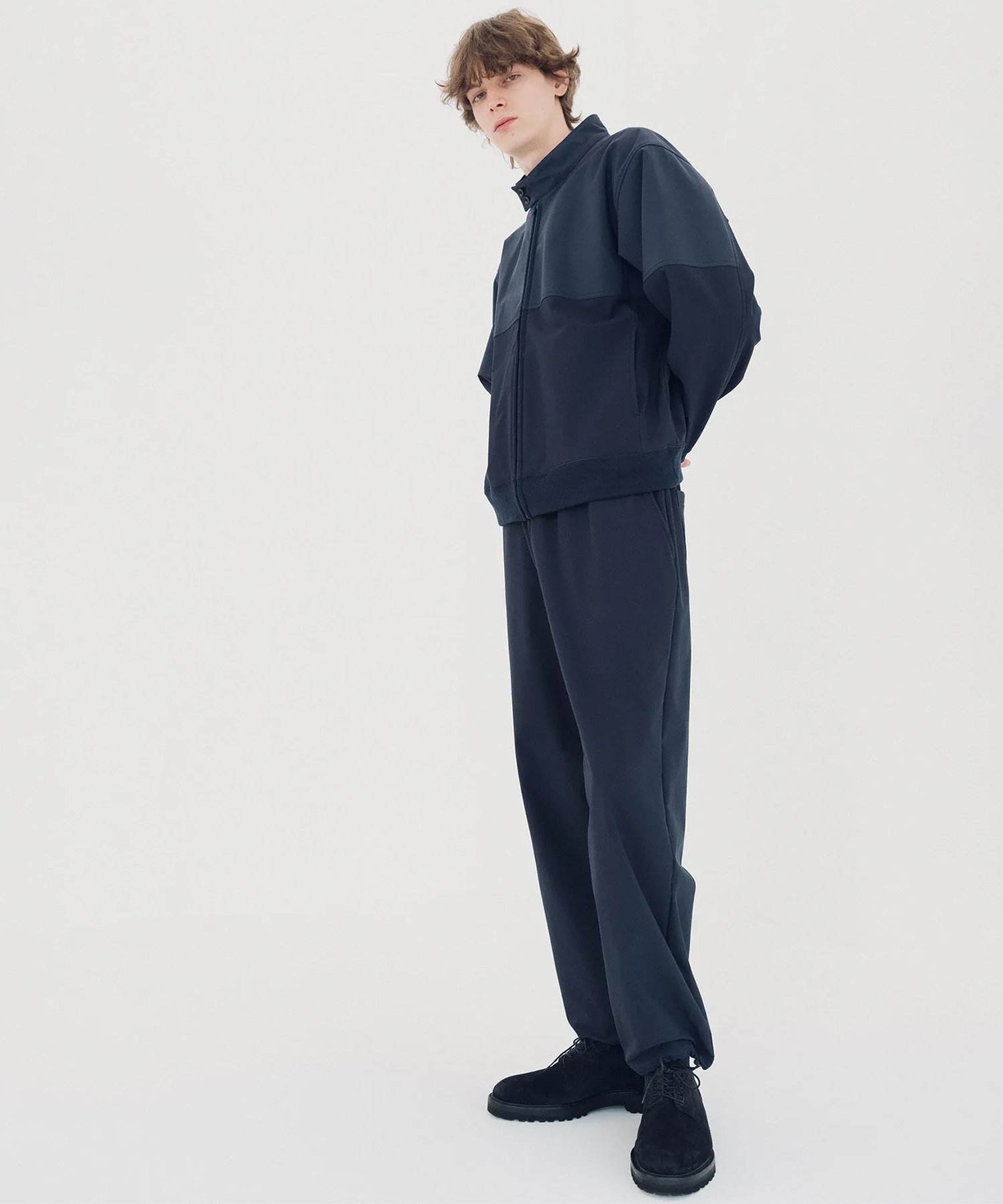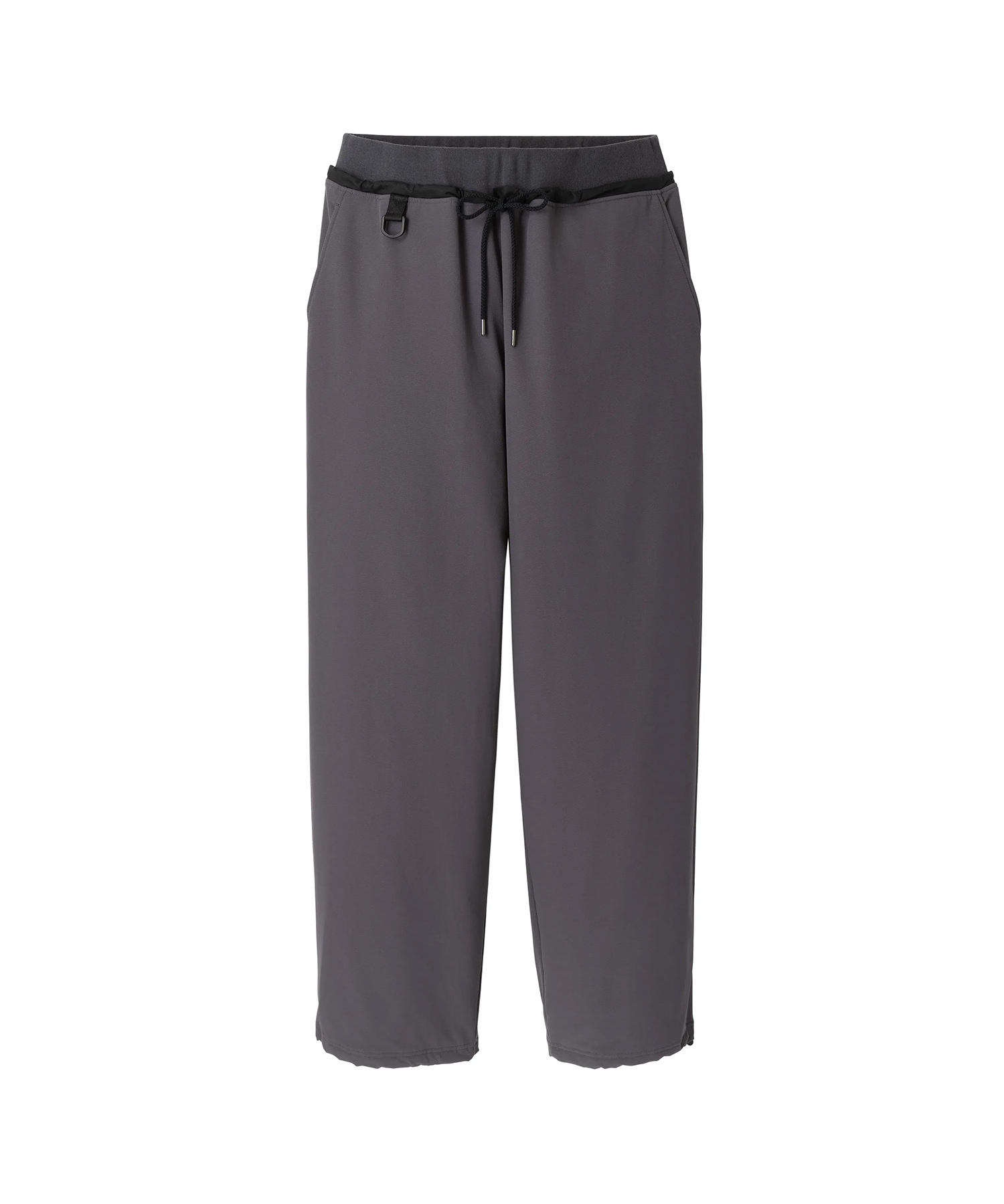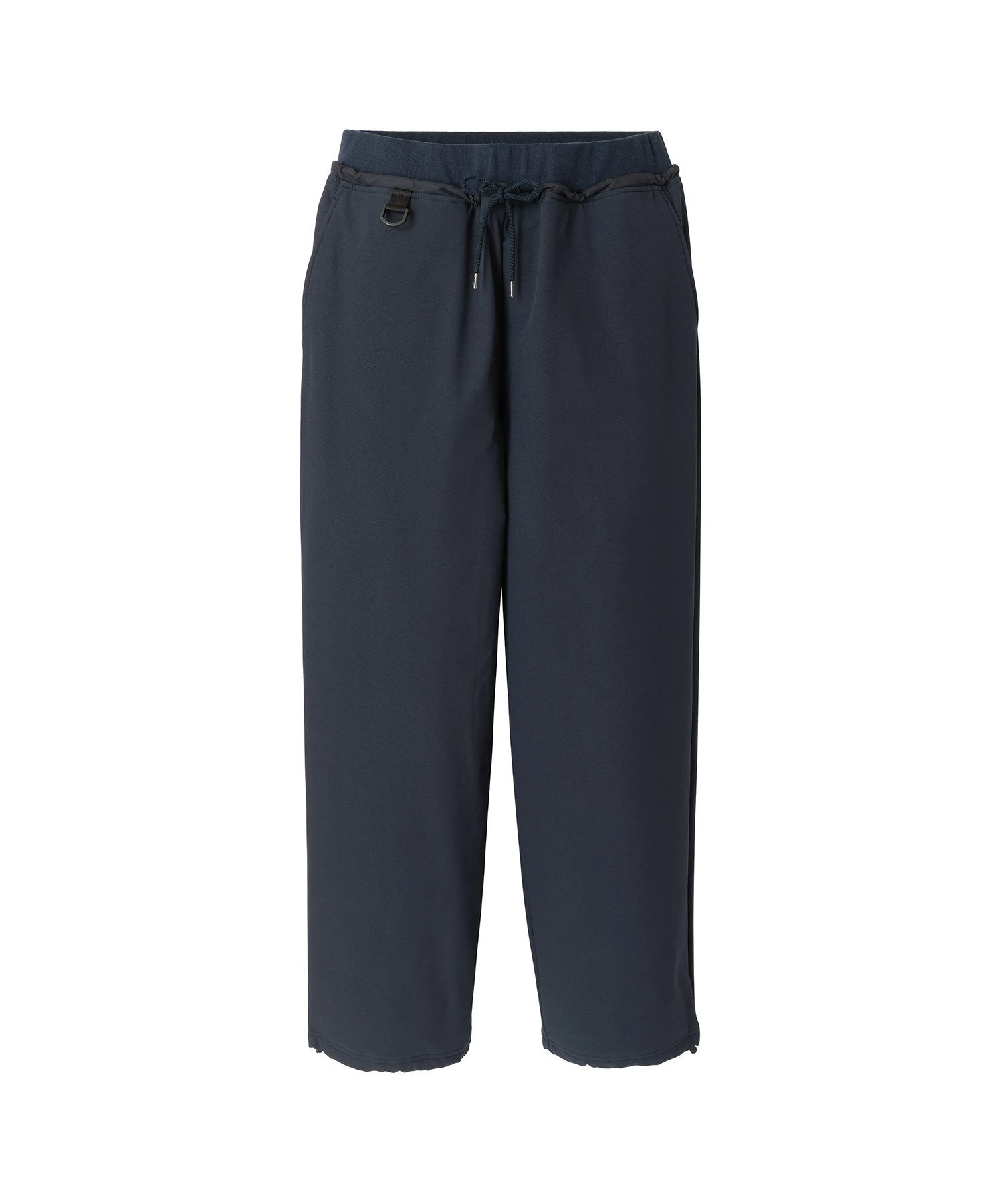 すっきりとしたテーパードシルエットに、裾に配したコードでさらに調整が可能。