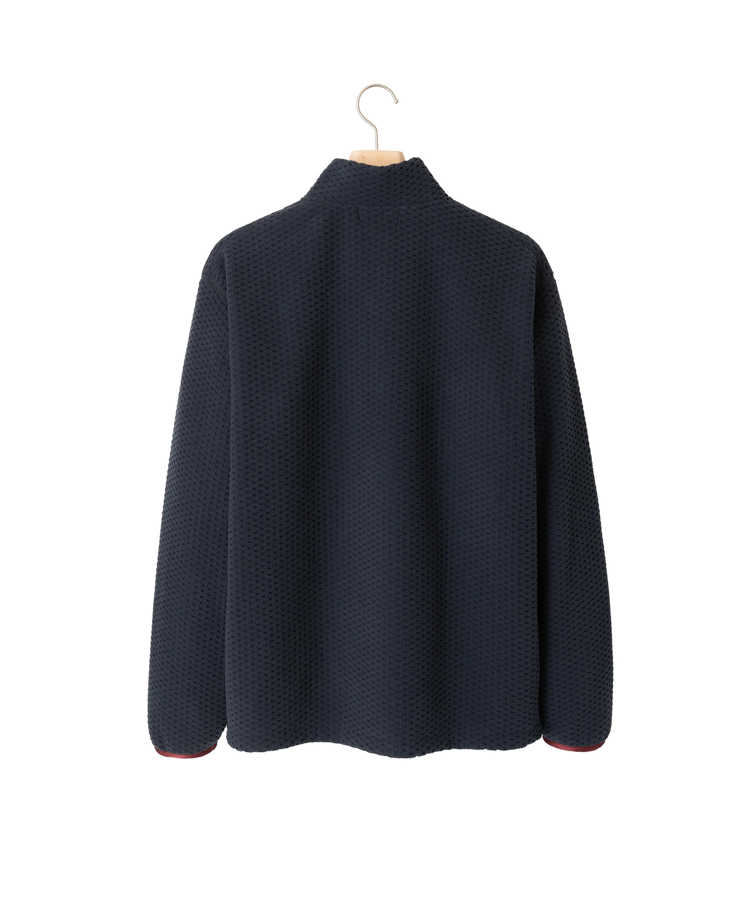 軽くてソフトな手触りのポリエステルフリースは、亀の甲羅を模った凹凸のあるユニークな素材。