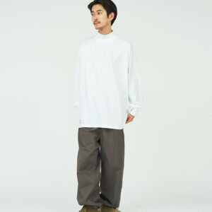 1枚でもインナー使いにも活用出来る6.2ozのボディはふっくらとボリュームがありながらもドライでザックリとした風合いのタフな仕上がり。吸湿性が高く、速乾性に優れている点も特徴。脇に縫い目の無い丸胴仕様も健在で、左裾のスペックプリントがさりげない主張を。