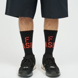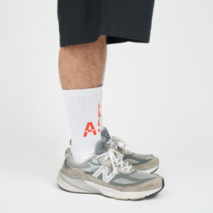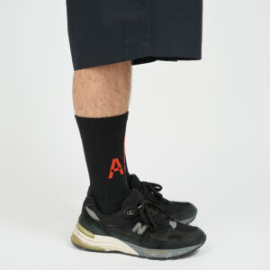 両ブランドのロゴを配したビビッドなオレンジが目を引く2パックソックス。