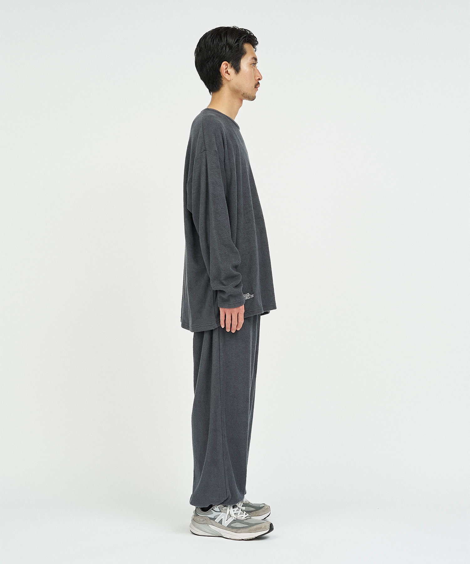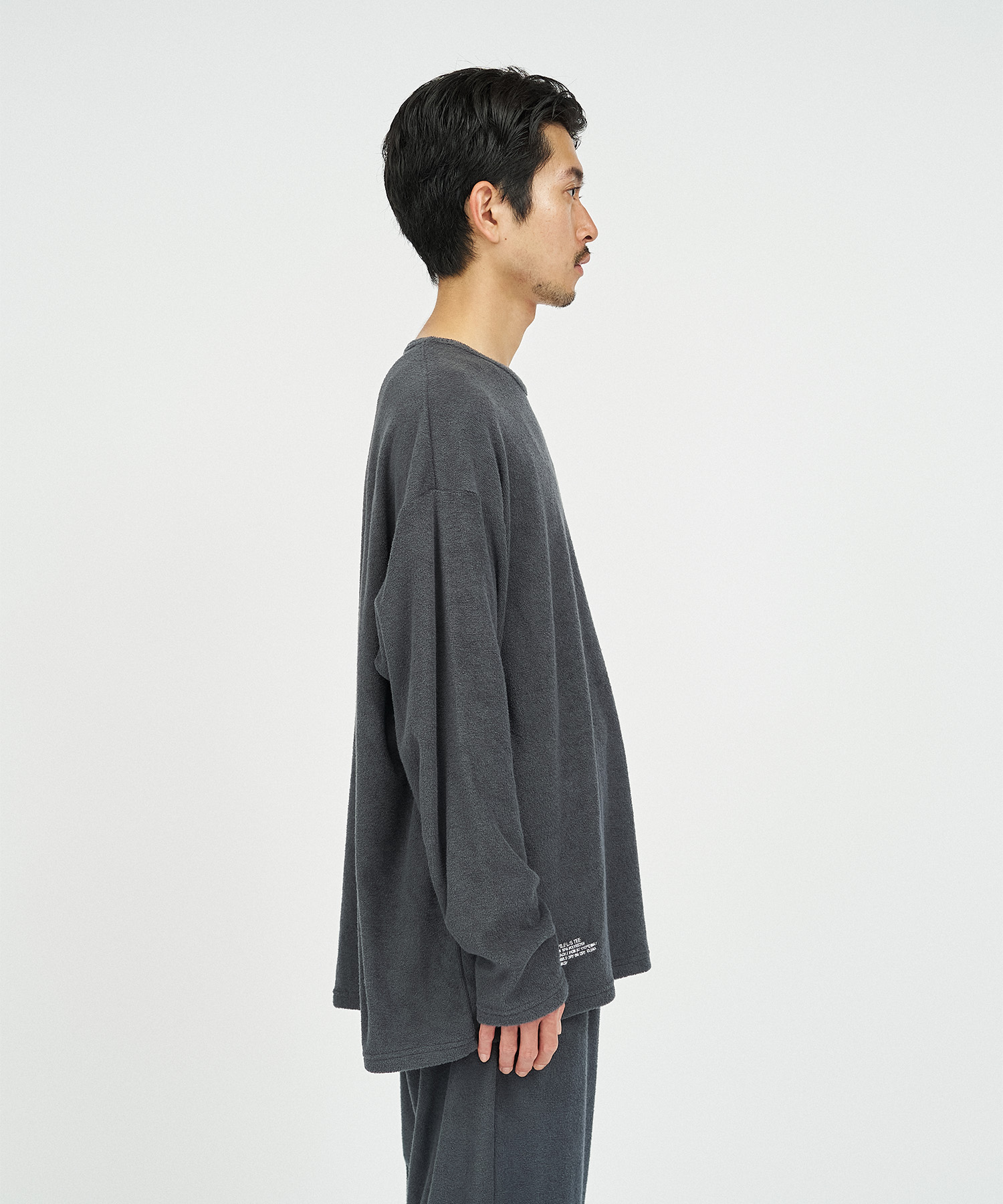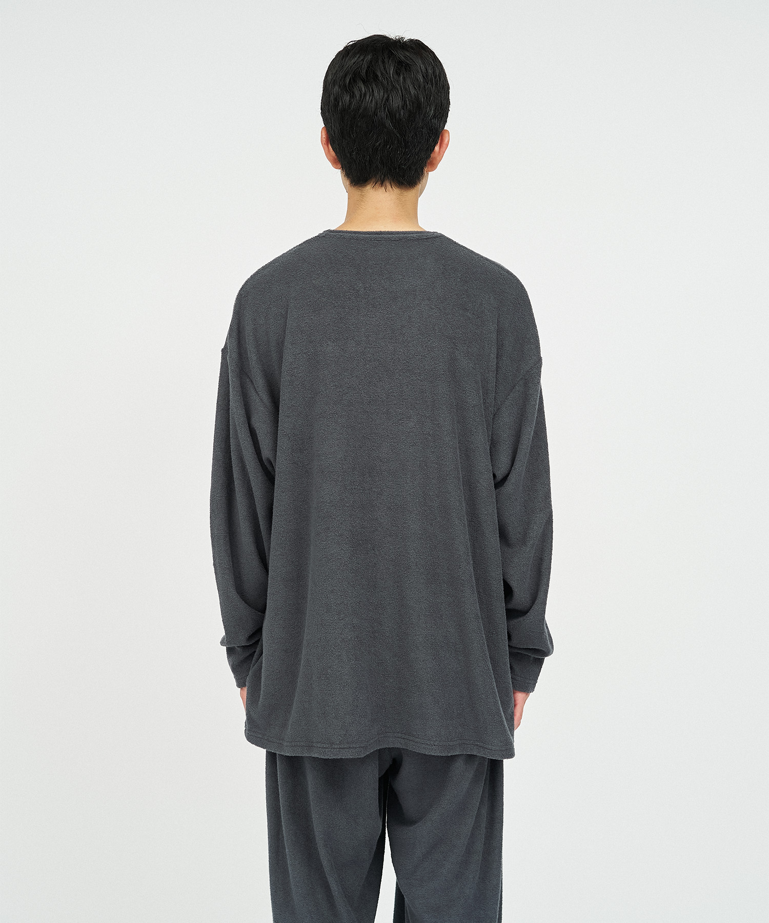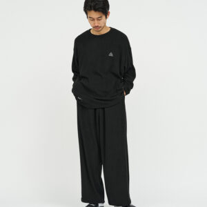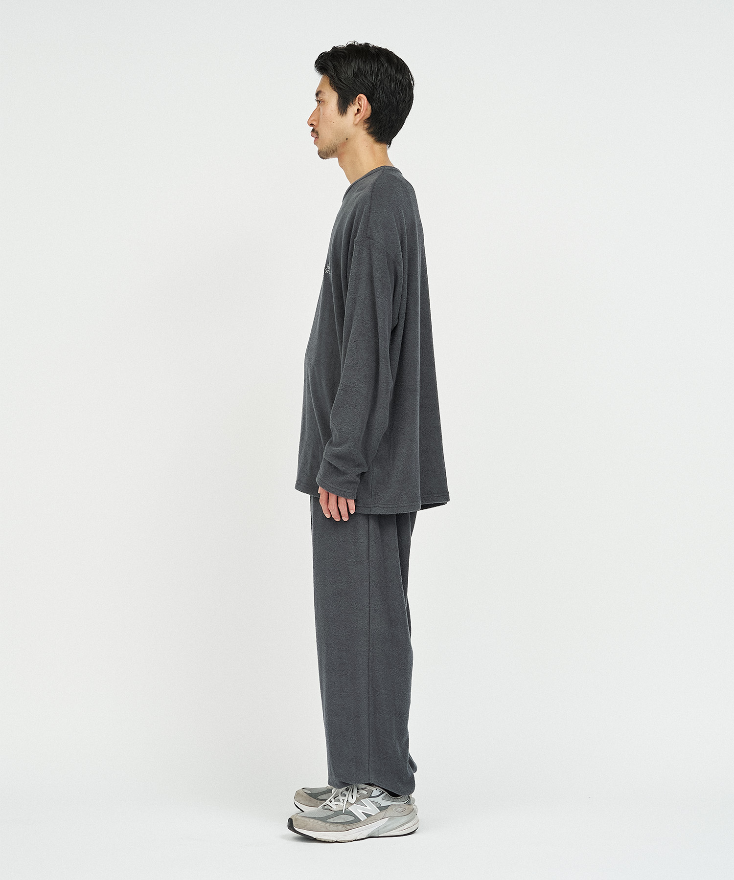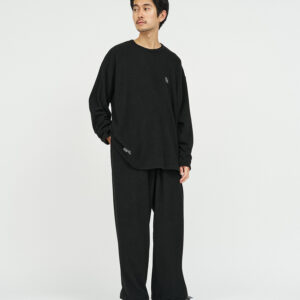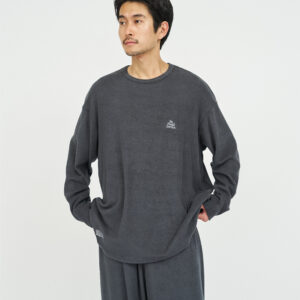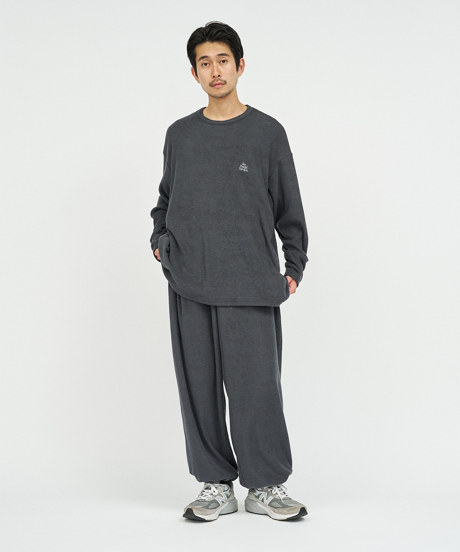 柔らかな肌触りでリラックス感溢れるパイル地を使用したReFresh!ServiceのロングスリーブTシャツとイージーパンツのセットアップ。ゆったりとしたサイジングで伸縮性も抜群。通気性も良くルームウェアとしても快適。