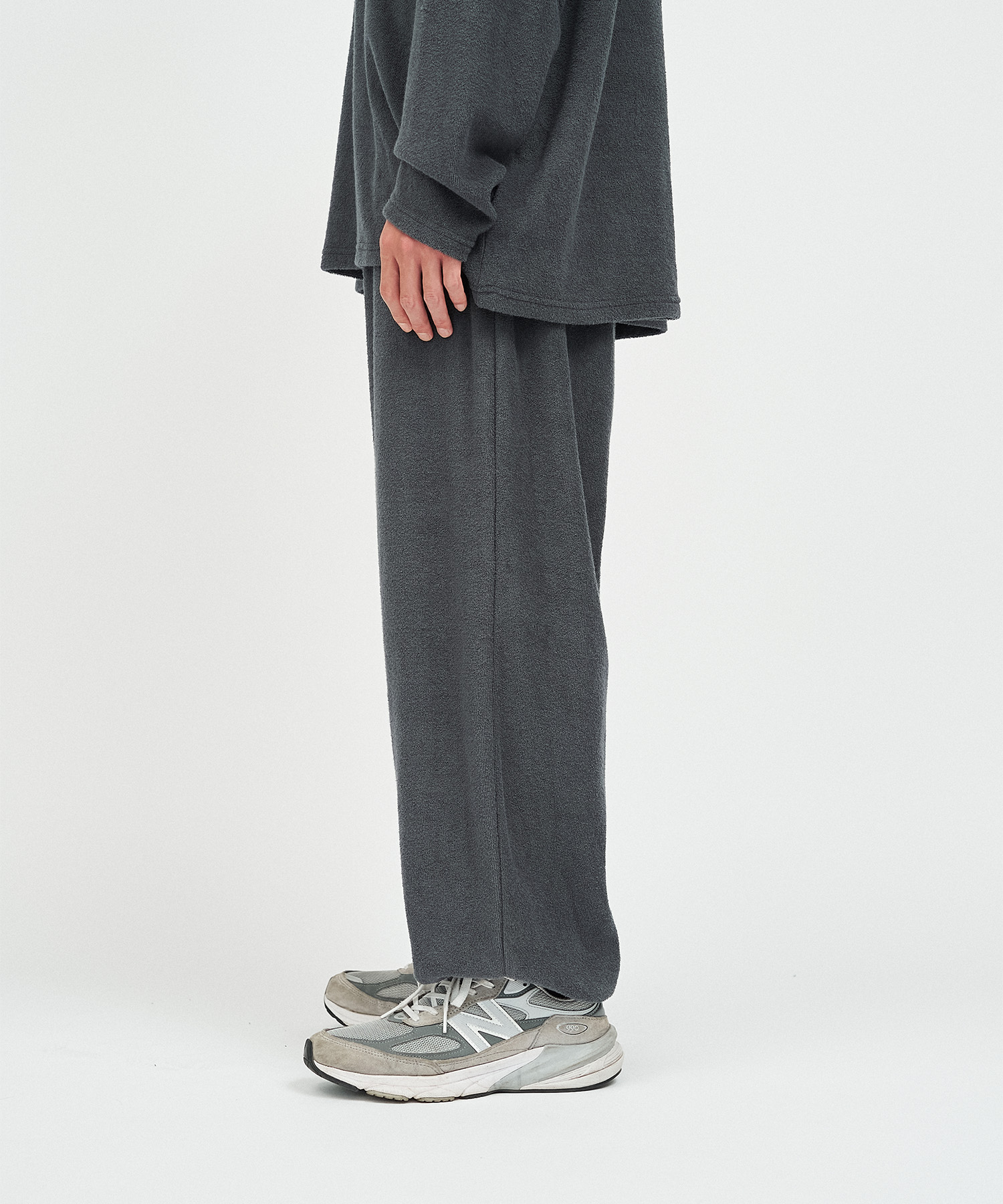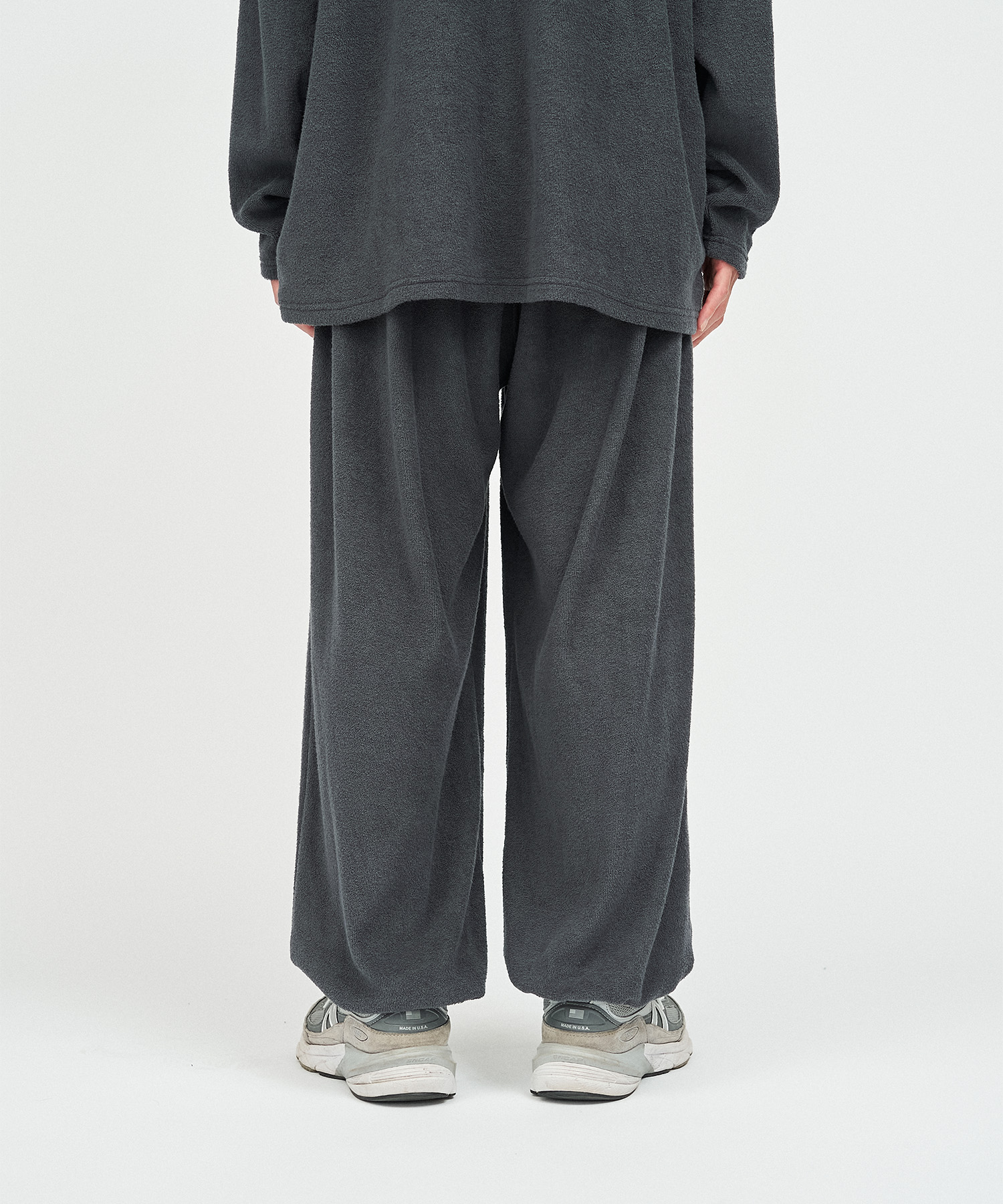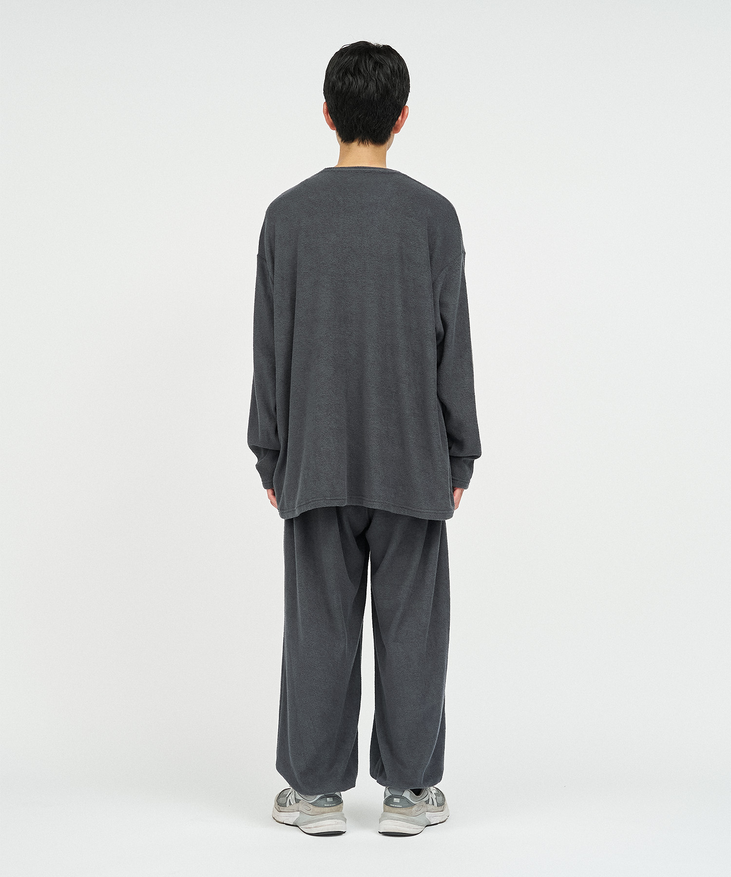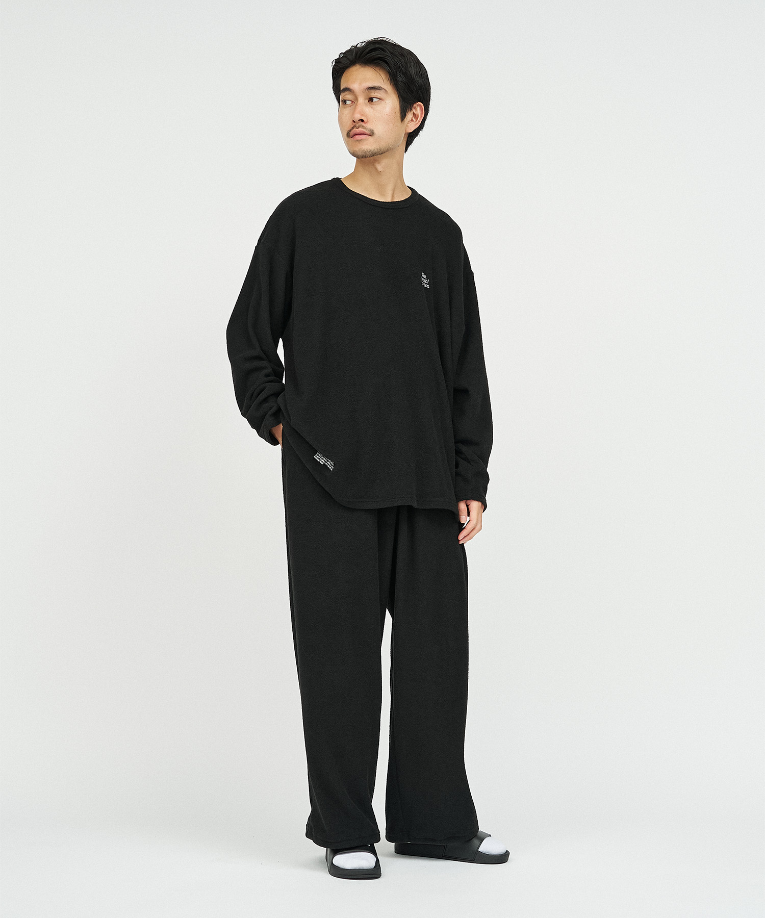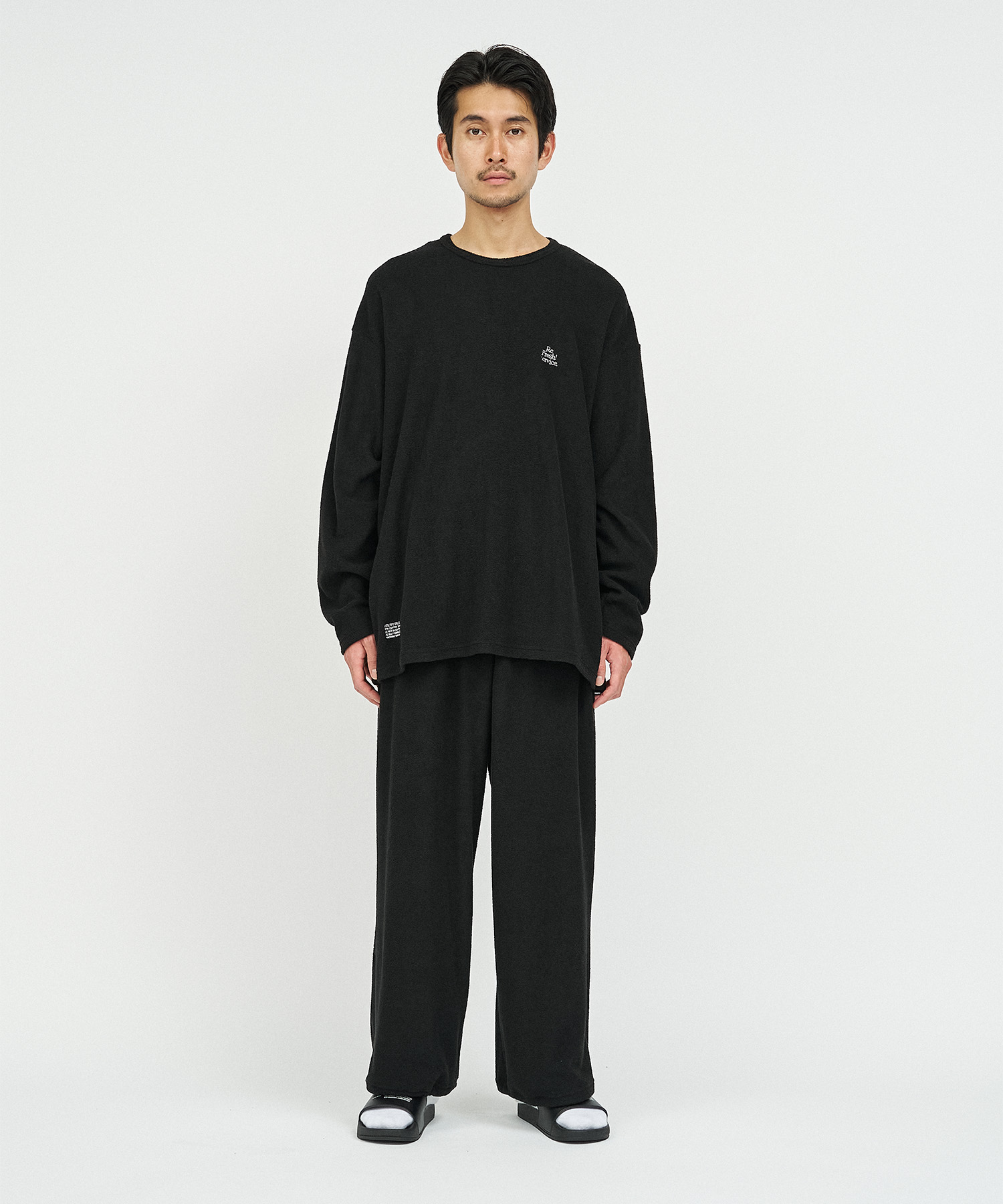 柔らかな肌触りでリラックス感溢れるパイル地を使用したReFresh!ServiceのロングスリーブTシャツとイージーパンツのセットアップ。ゆったりとしたサイジングで伸縮性も抜群。通気性も良くルームウェアとしても快適。