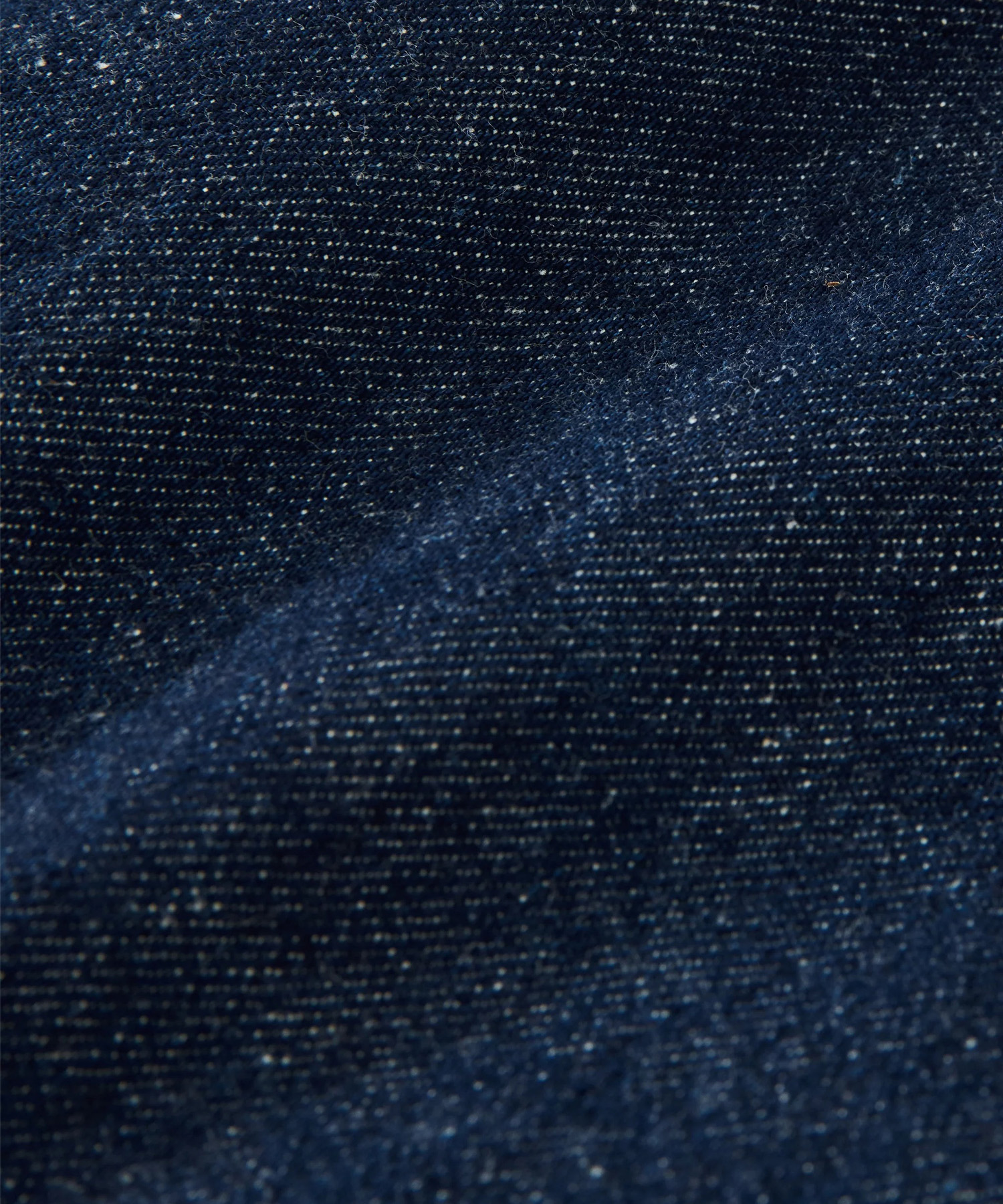 13オンスの日本製デニムを使用し、洗いをかけたことで柔らかな手触りとしわ感のある仕上がりが特徴的。