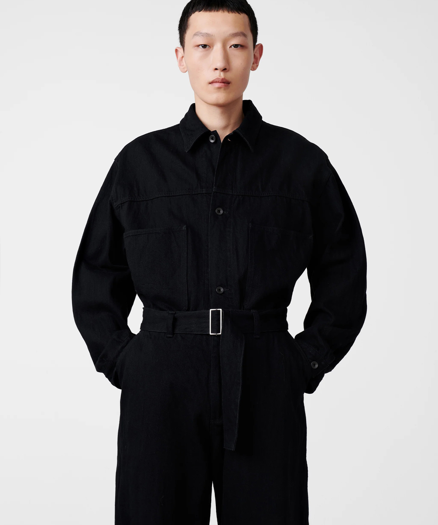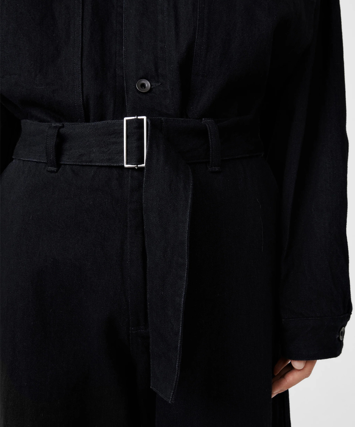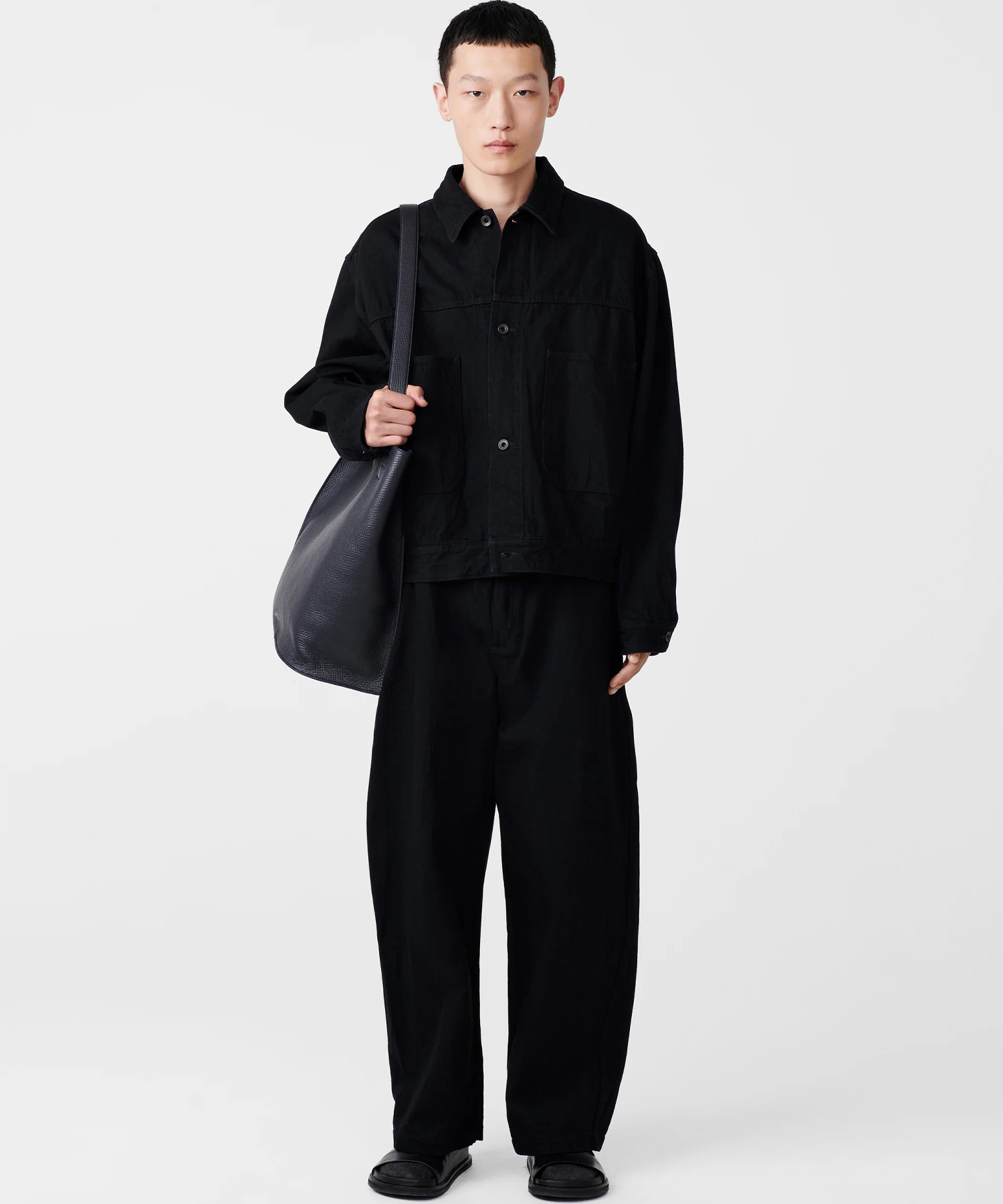 世界的に有名な日本の産地で糸からこだわりシワ加工を施したデニム生地を生産。その生地を使用したワイドボリュームパンツ。