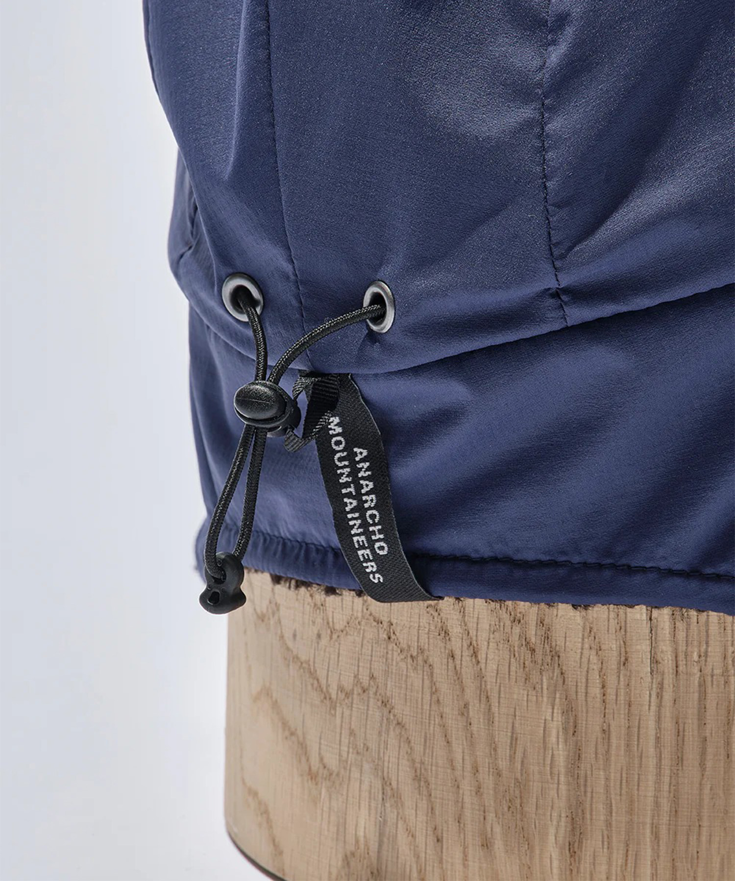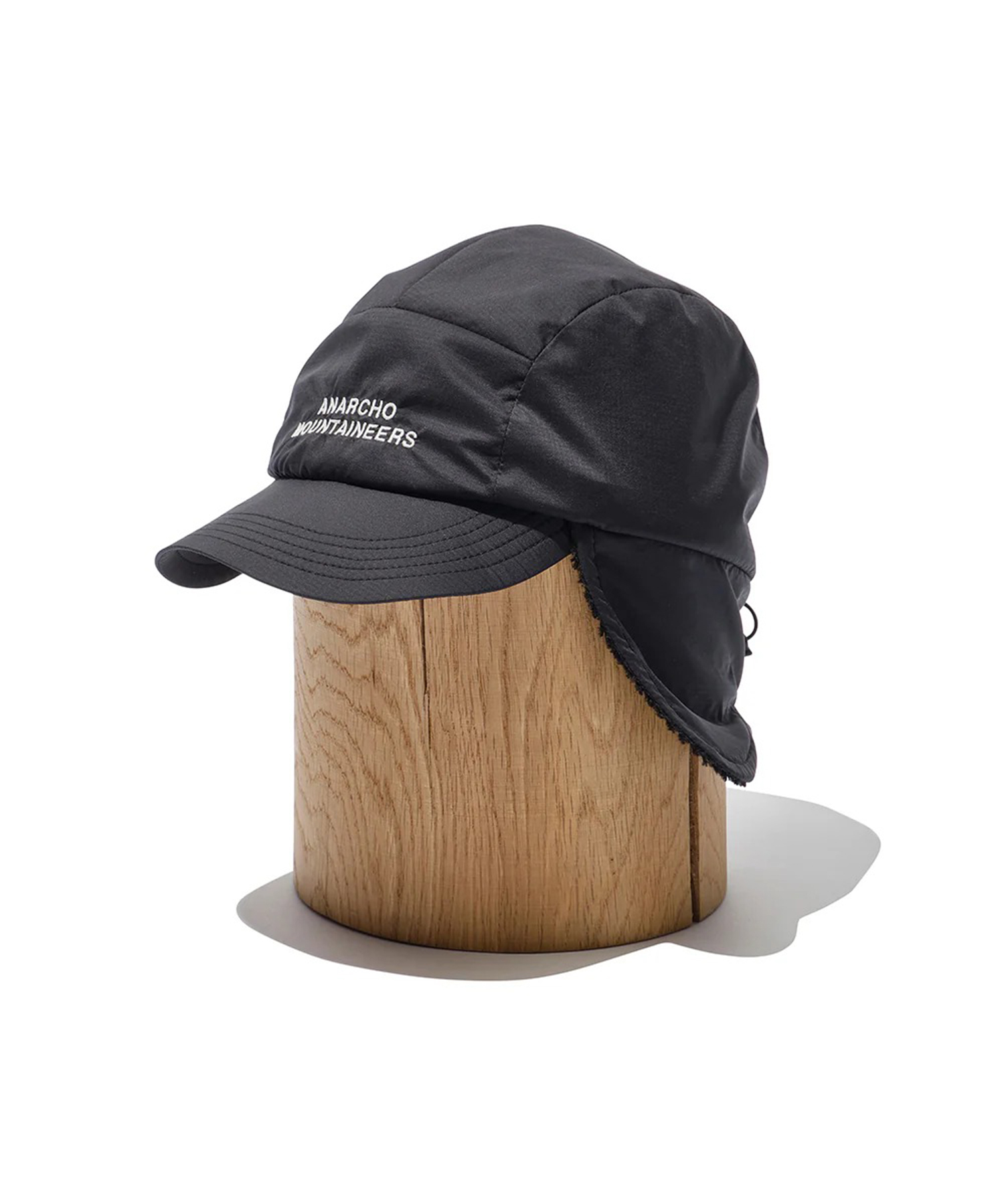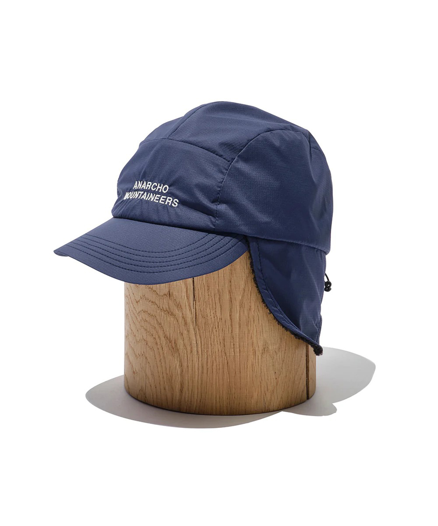 軽量リップナイロン w/OCTA裏地の耳当て付きキャップ。撥水・透湿・速乾といったアウトドア対応型スペックの充実に加え、軽やか・柔らかな被り心地がポイント。フロントの刺繍は、定番の”Anarcho Mountaineers”。ドローコードでフィットの調整可能です。