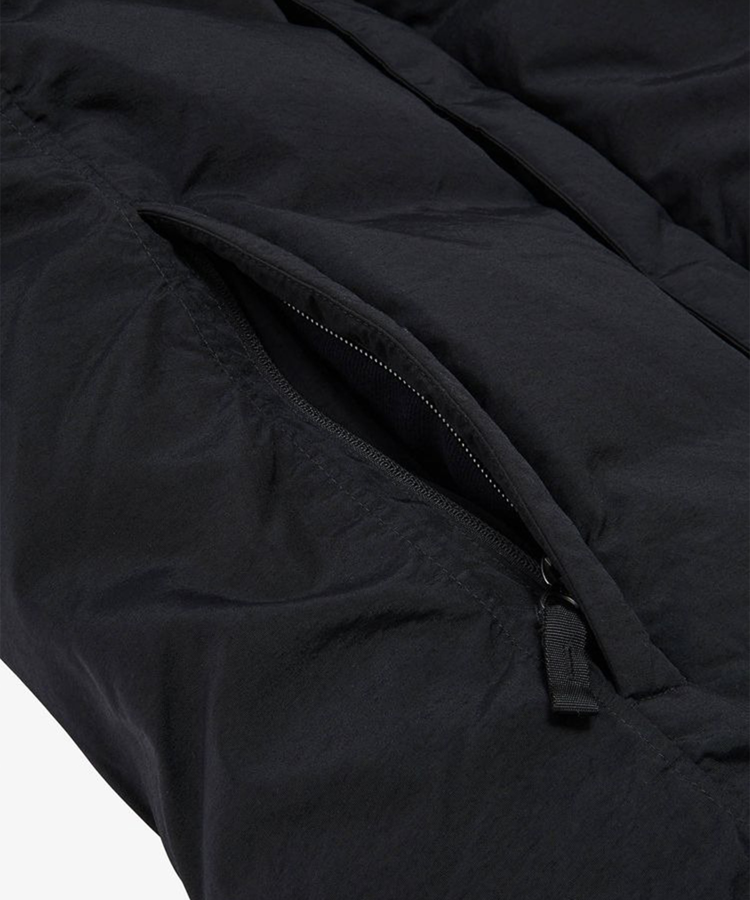 高いバッフル感を持ちつつ、落ち着いたトーンが印象的な、軽い着心地のダウンベスト。