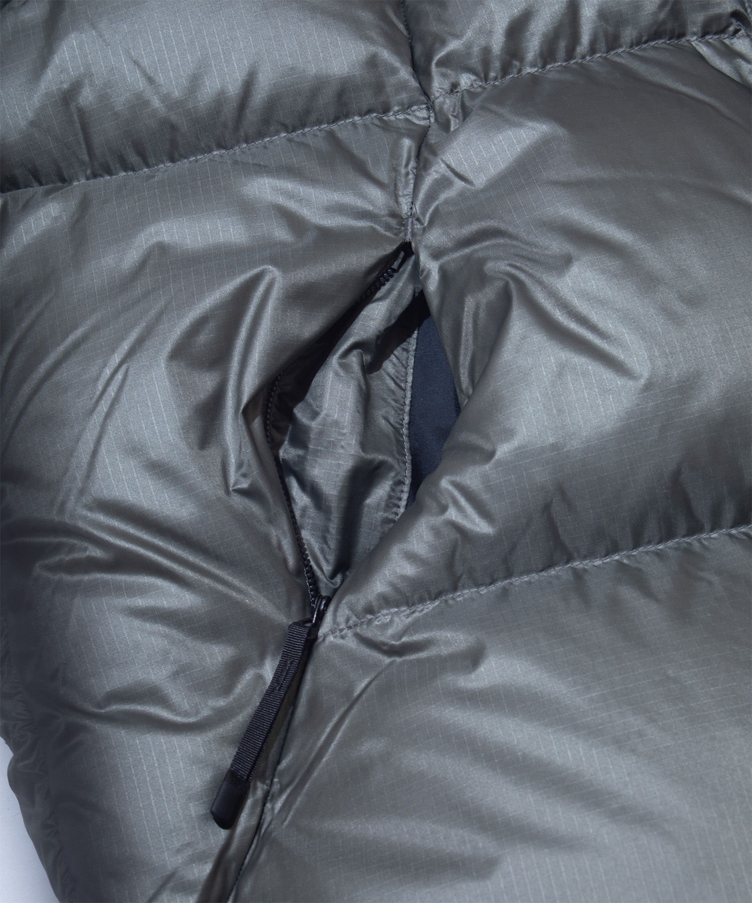 ダウンのバッフル構造は、ダウンが背中の中心部分に集まる形状になっているため、体幹を効率的に保温。