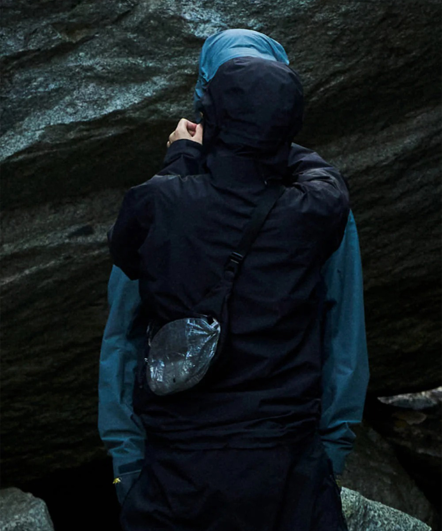 生地の撥水性に加え、止水ファスナーを使っているので突然の雨でも内容物を守ります。主にデイリーユースとして、ちょっとした買い物時に便利なアイテムです。
