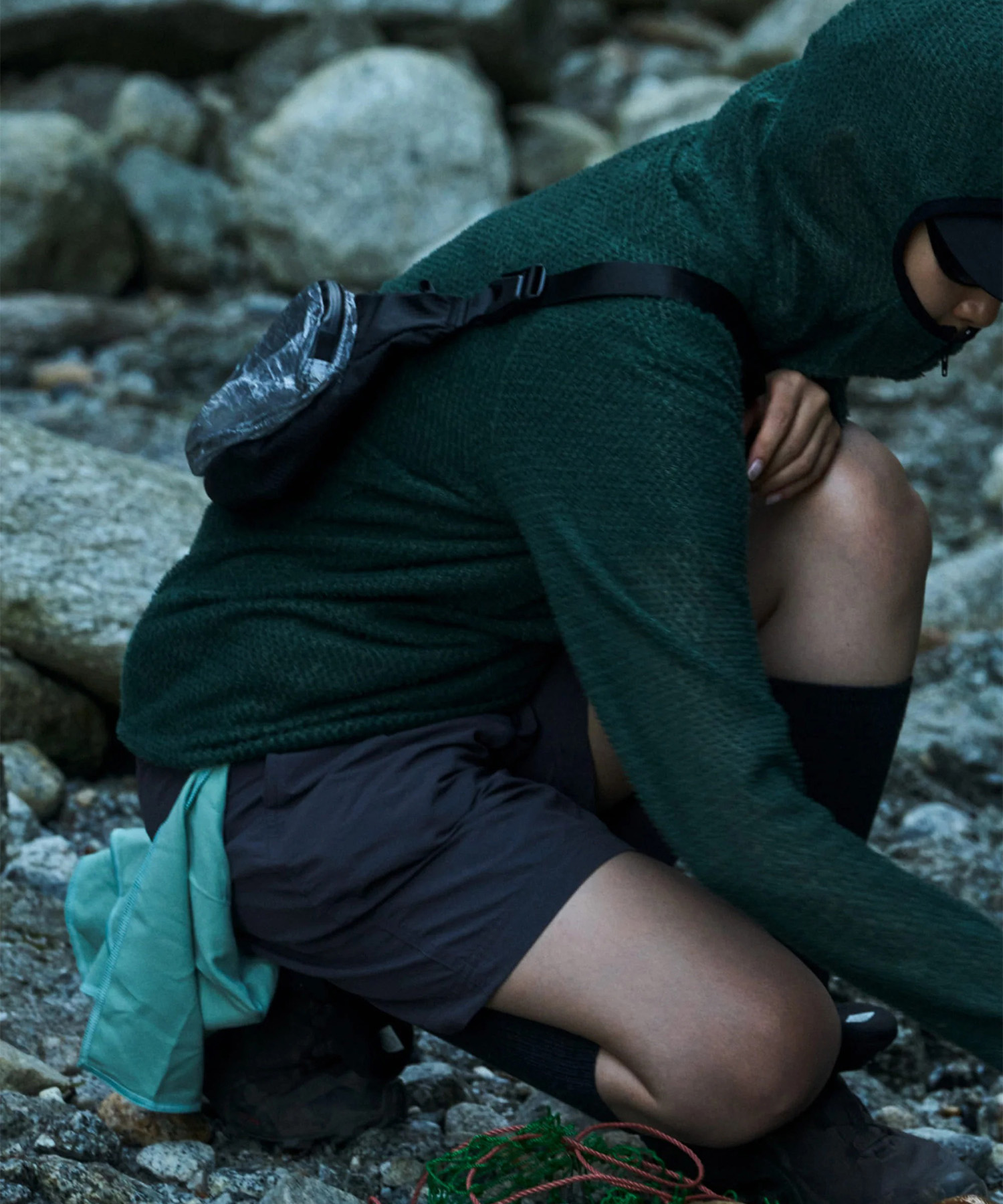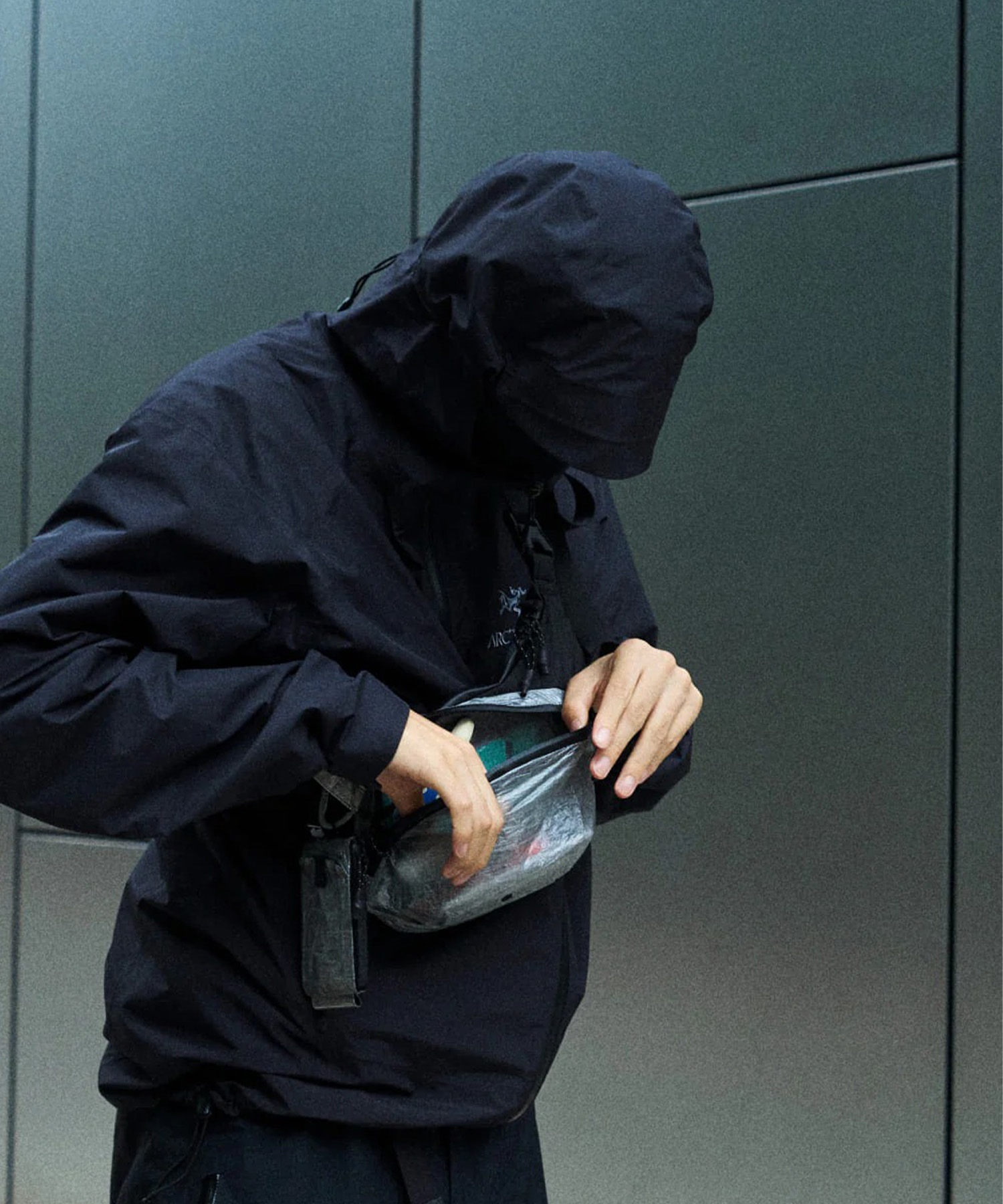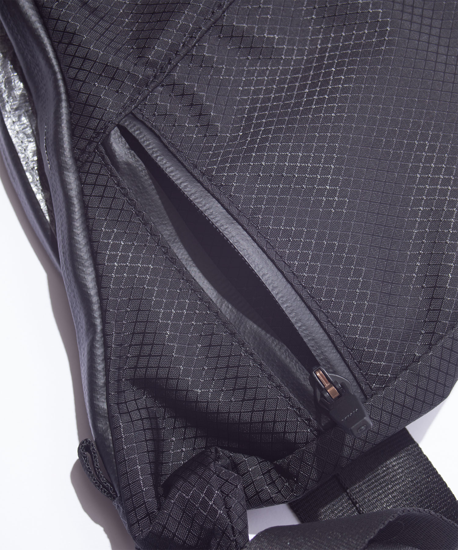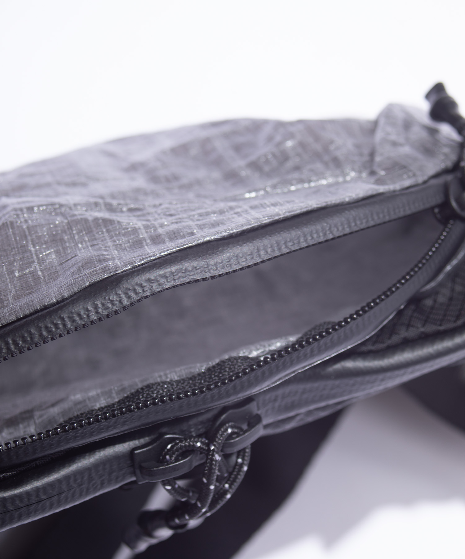 軽量で、引き裂き強度が高く、撥水性も兼ね備えた米AVIENT社のDyneema®を外ポケットに使用。その機能性はもちろんのこと、中身が透ける独特の素材感が魅力です。