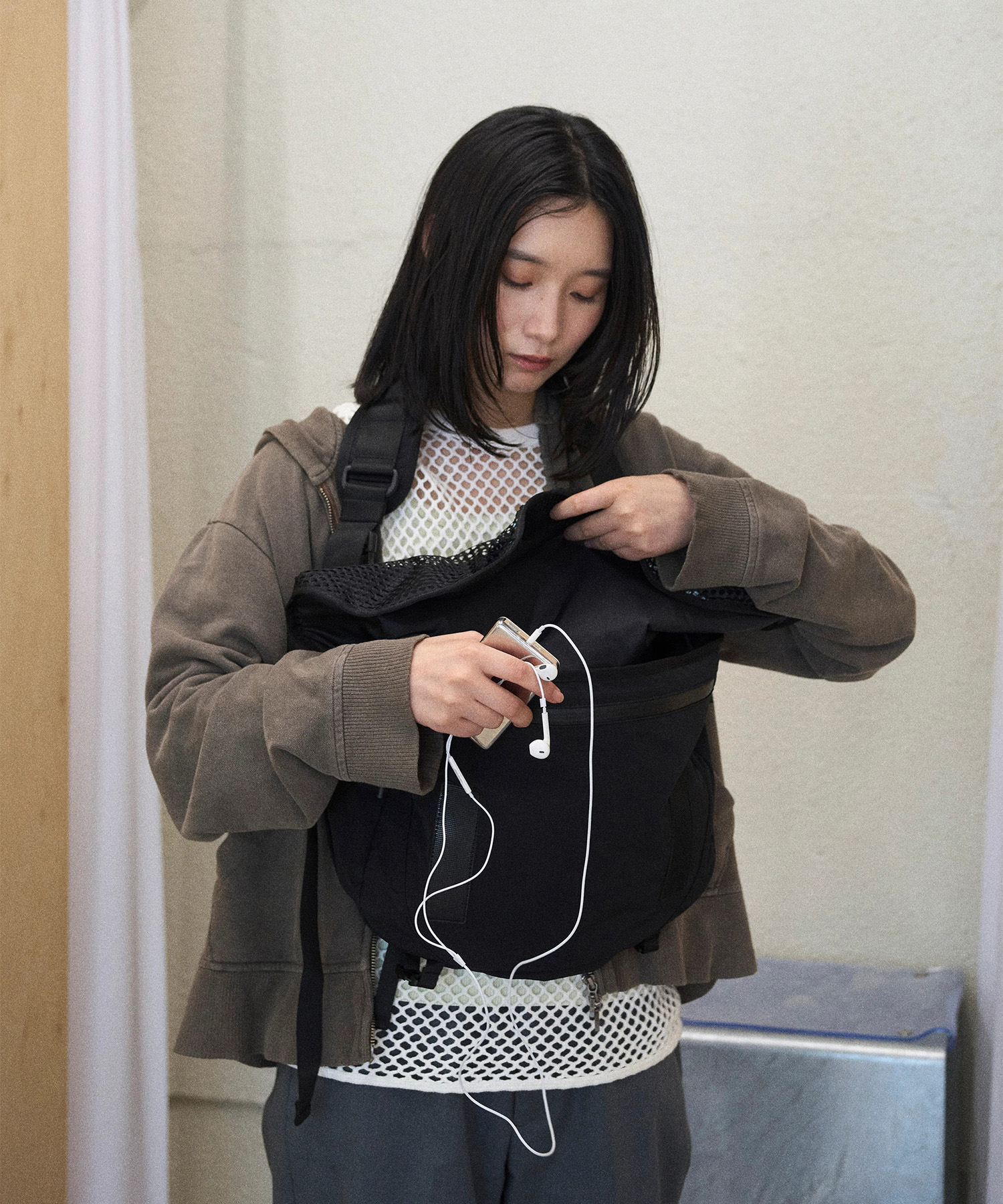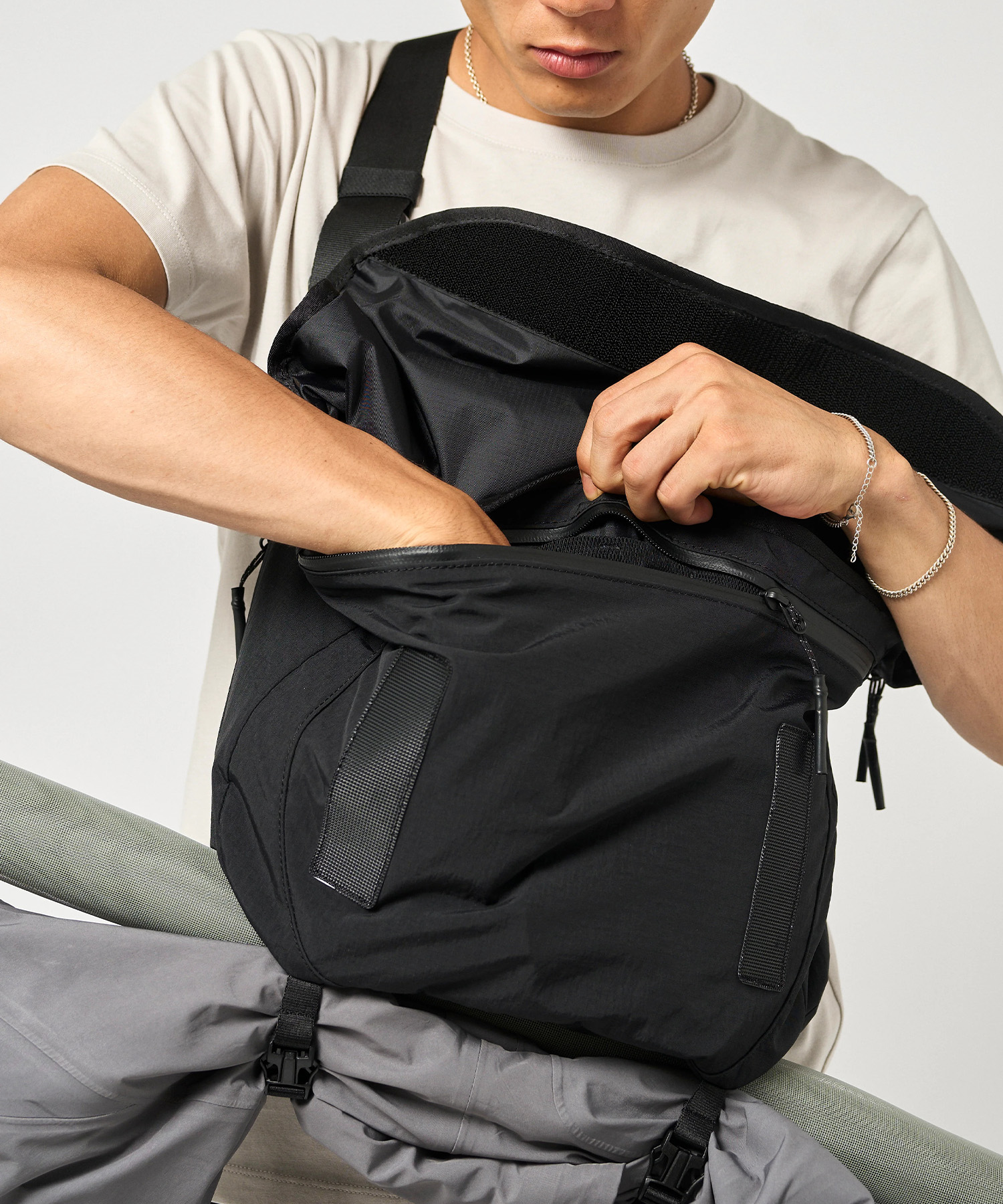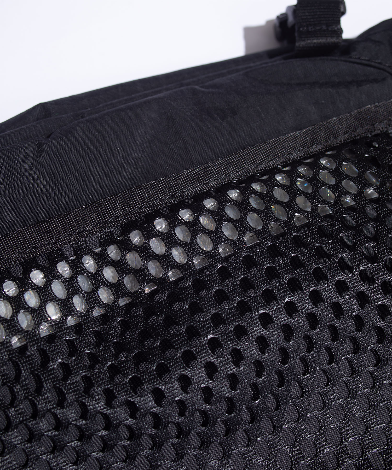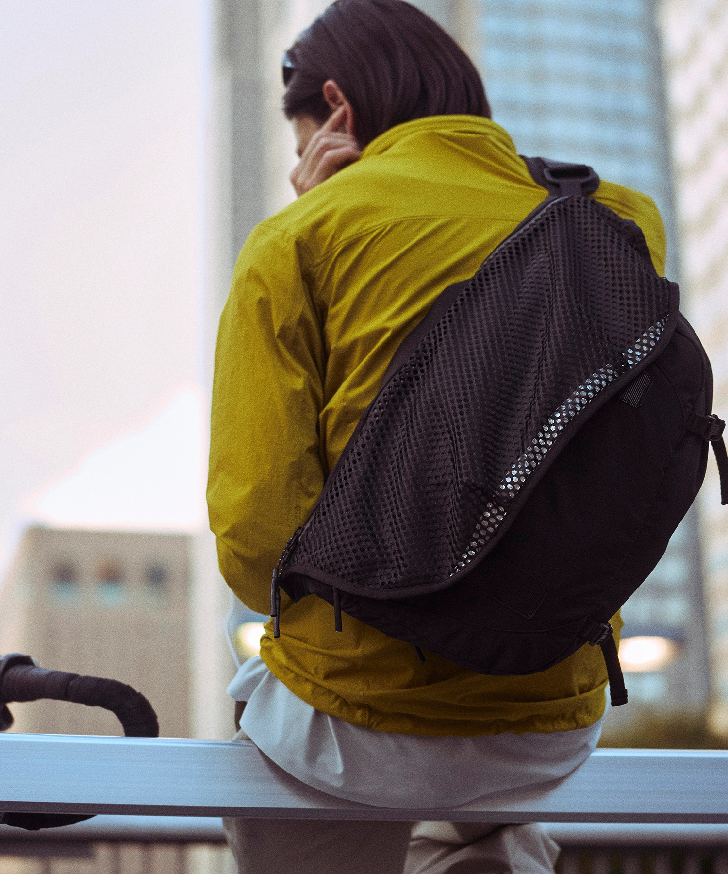 バッグの大きな部分を占めるフラップポケットにメッシュ素材を用いることで軽やさがより増し、メッセンジャーバッグ特有の重たいイメージから解放された印象に仕上がっています。