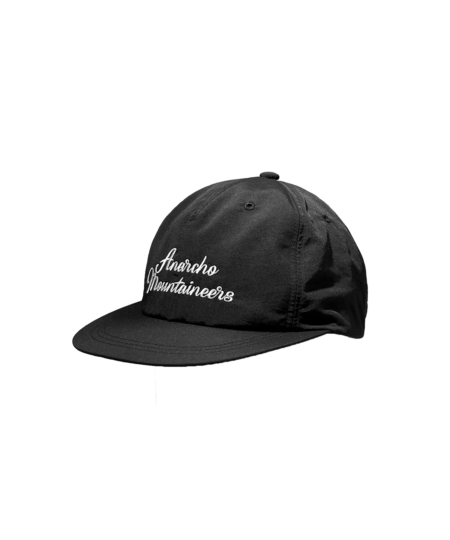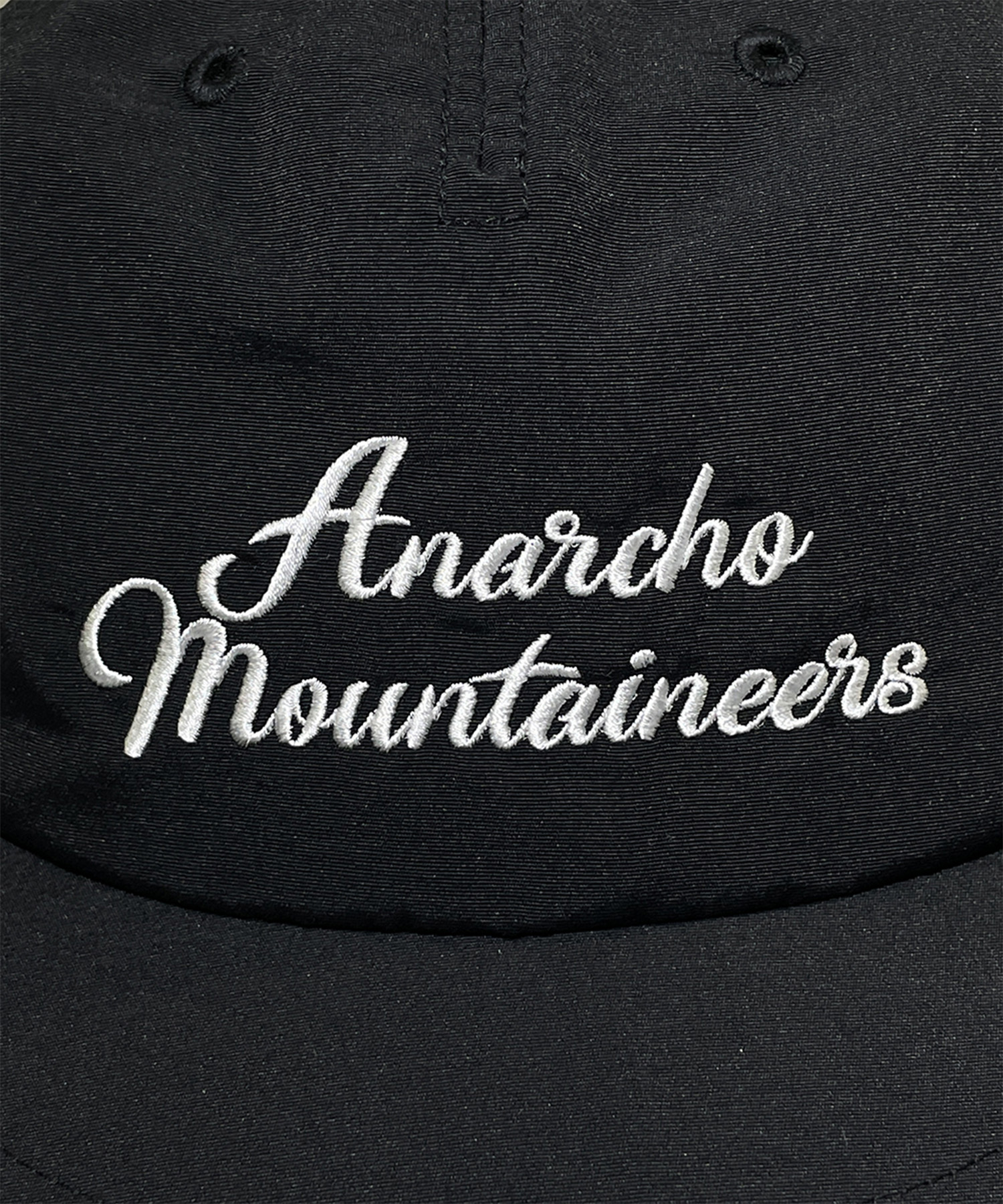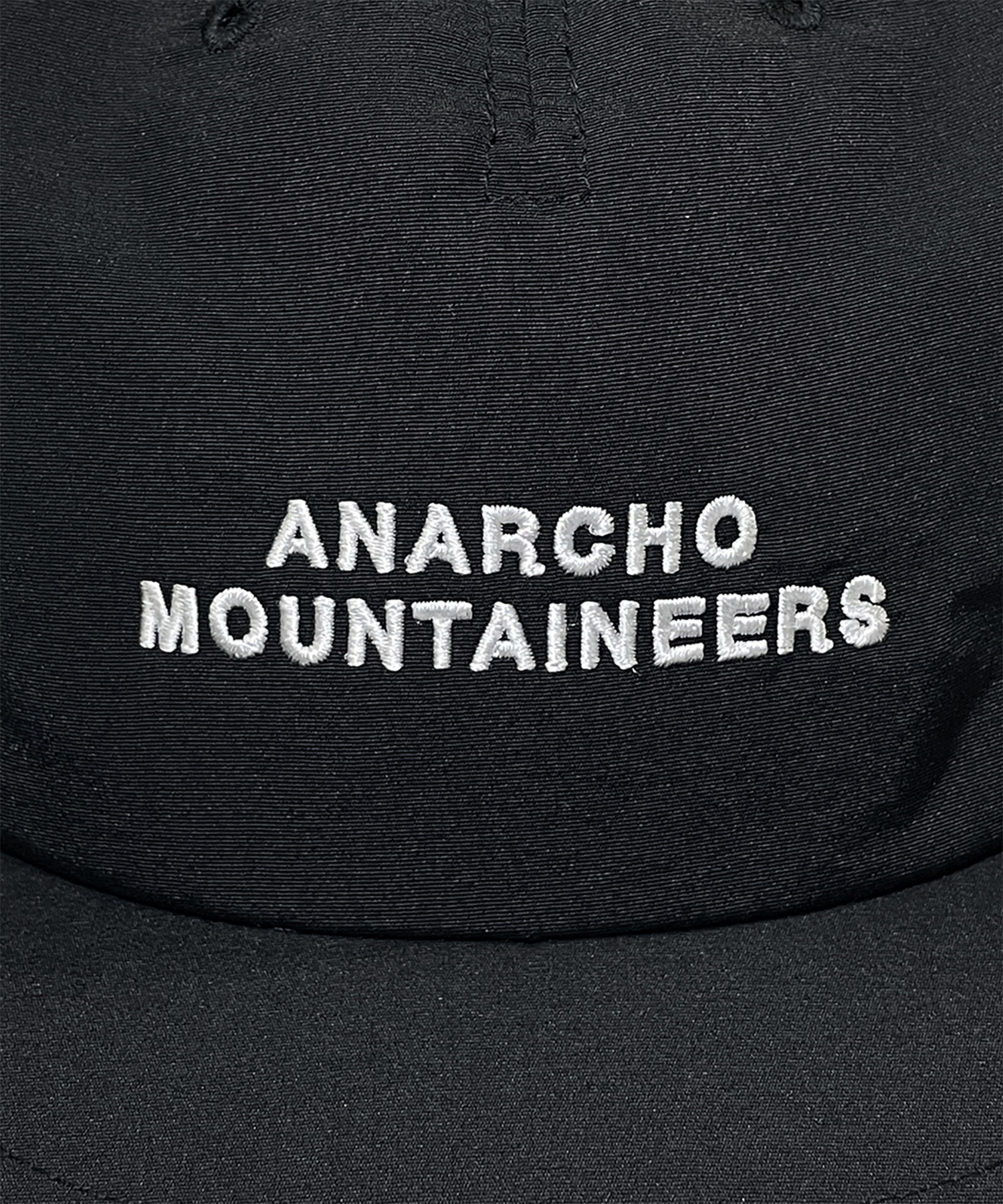 サプレックスナイロンを使用したキャップは、フロントパネルに“ANARCHO MOUNTAINEERS”の刺繍入り。
