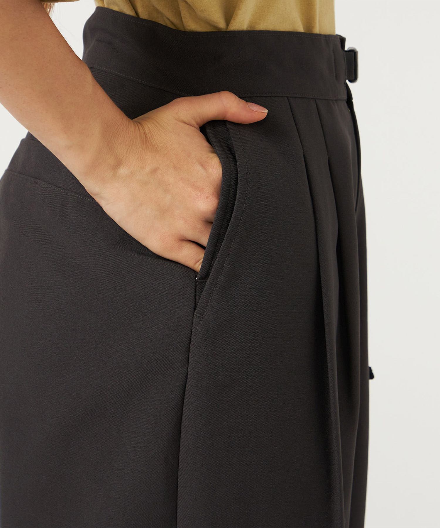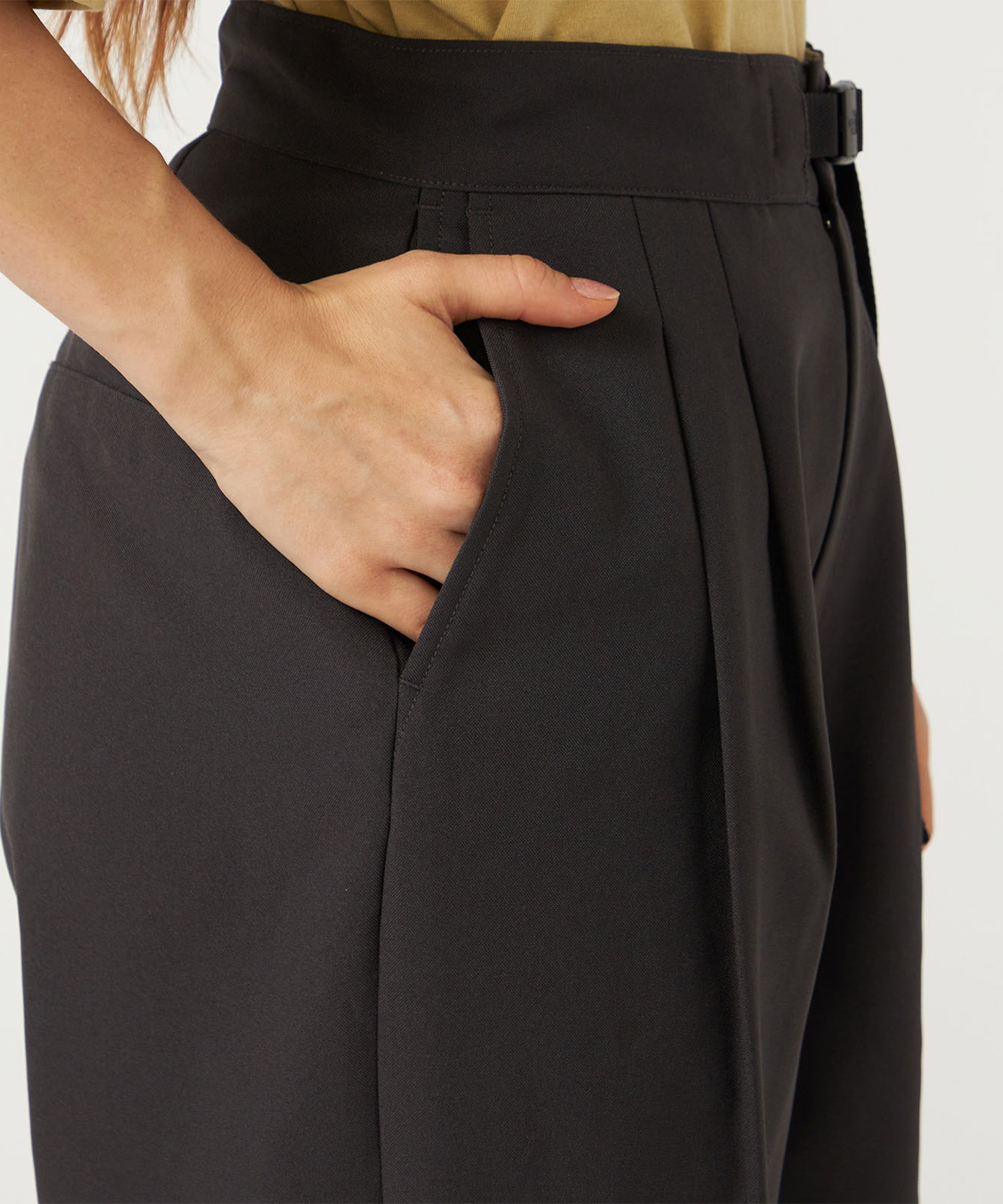 ・リサイクルポリエステルトロピカル素材を使用したウィメンズタックパンツ