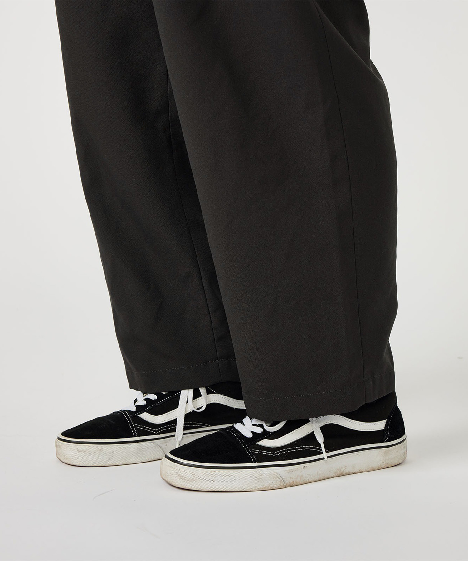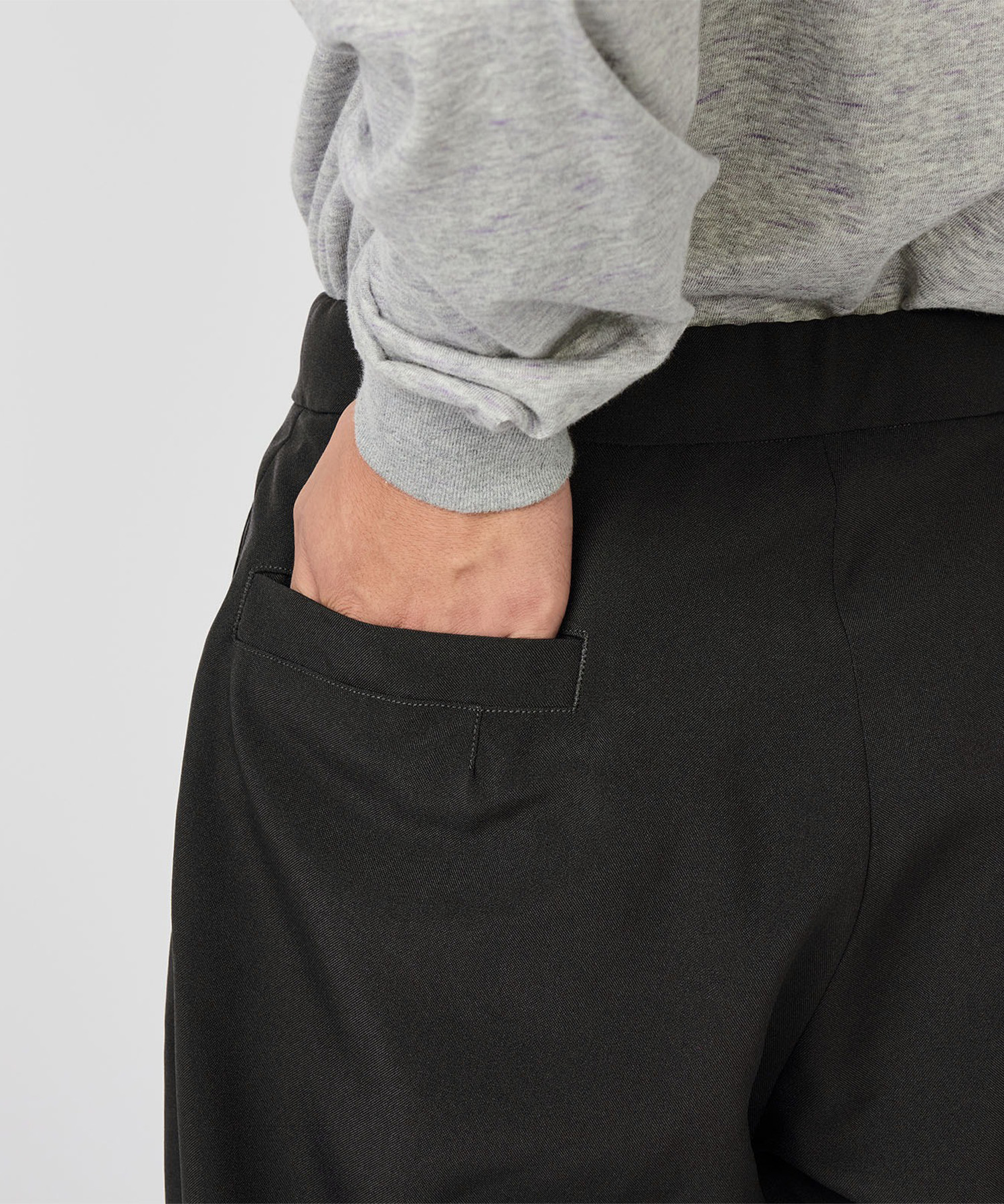 ・リサイクルポリエステルトロピカル素材を使用したワイドテーパードパンツ