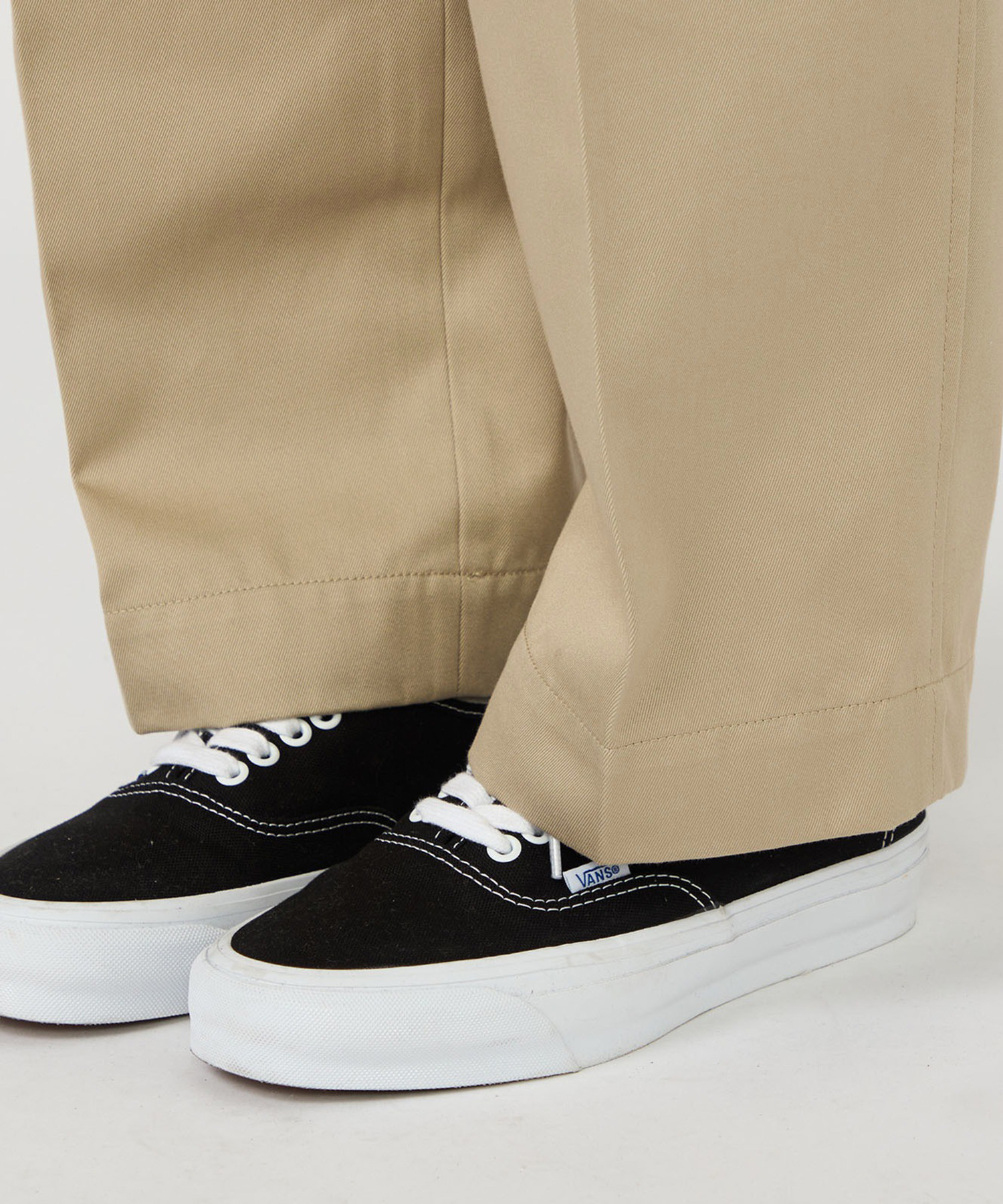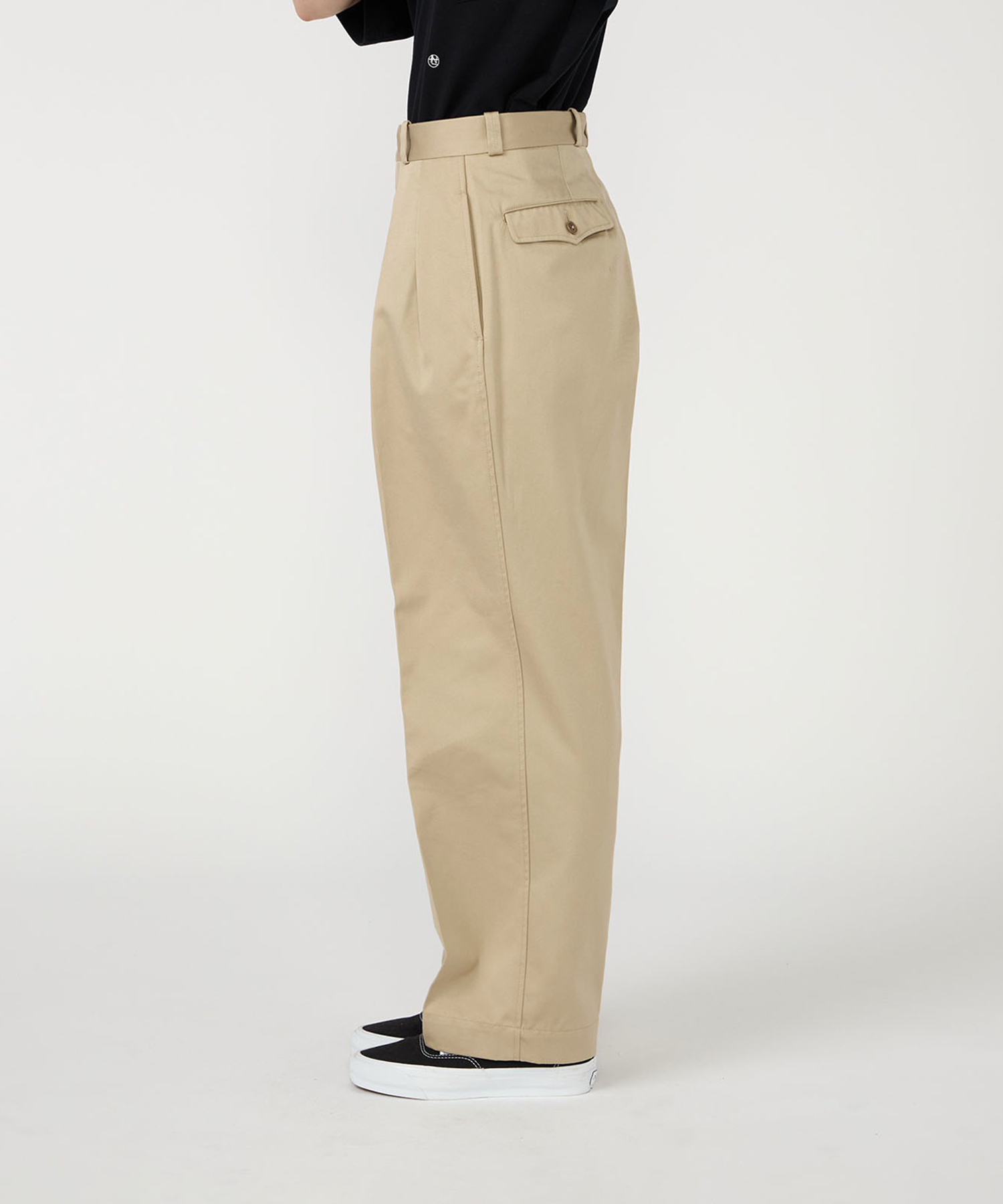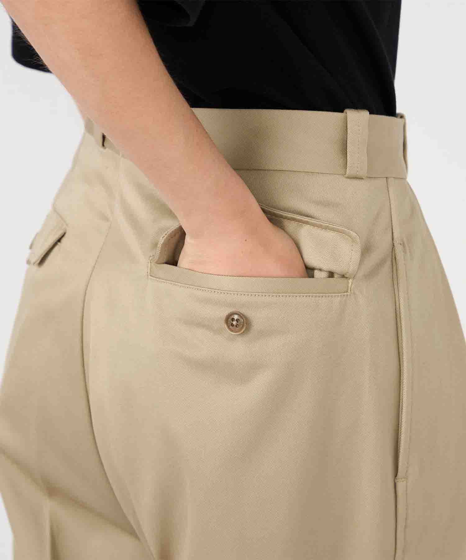 ・ワイドテーパードカットの2タックチノパンツ。