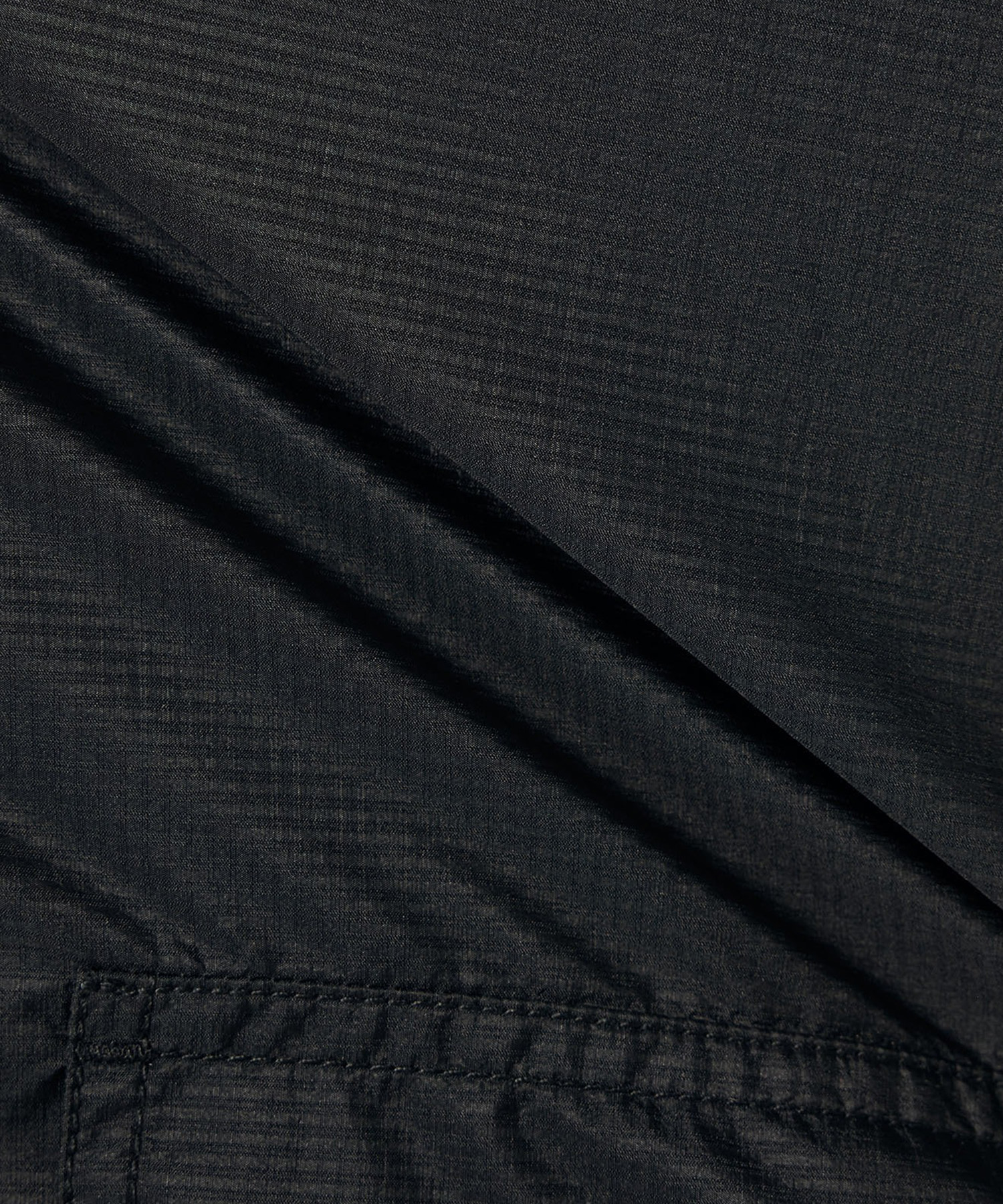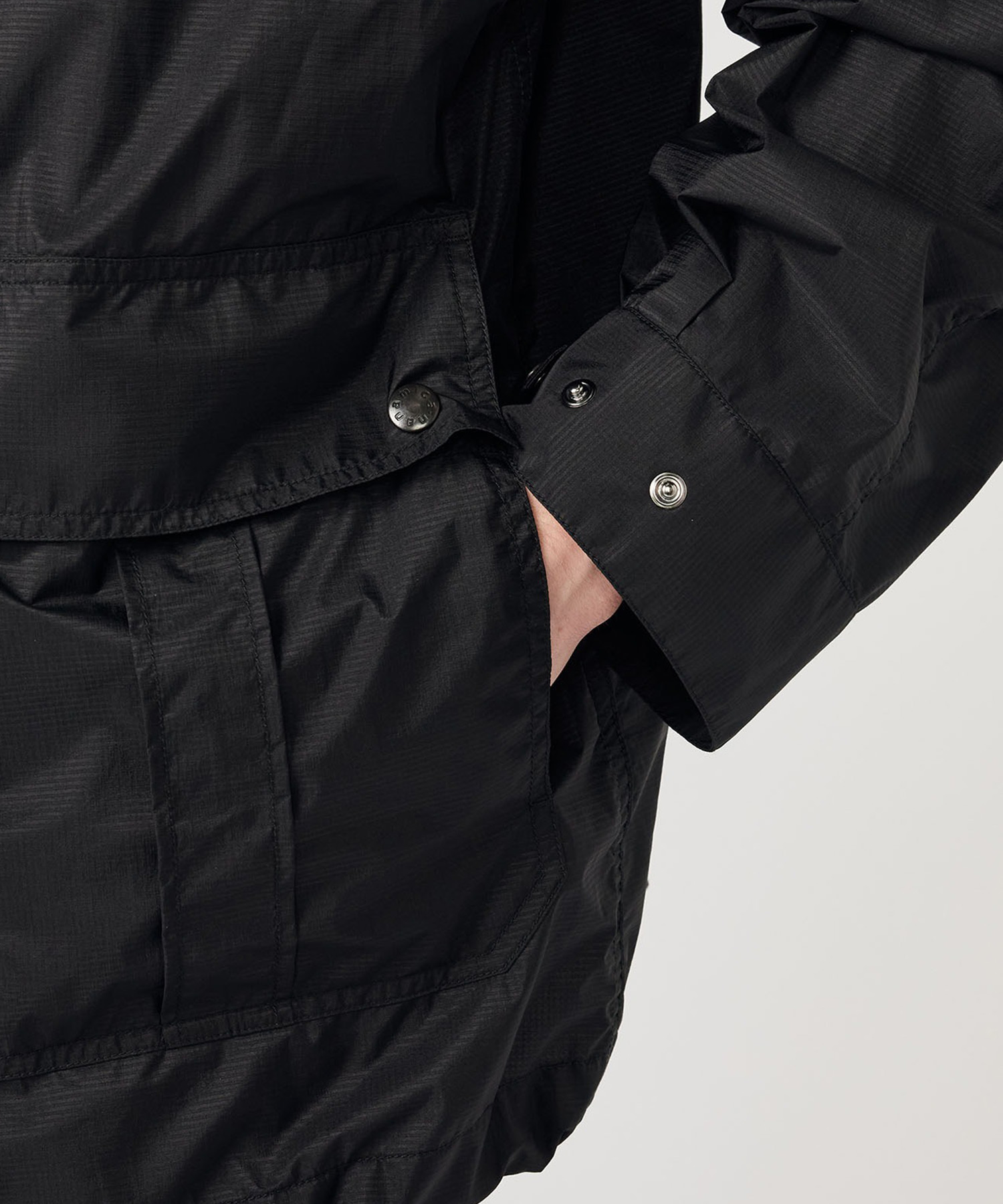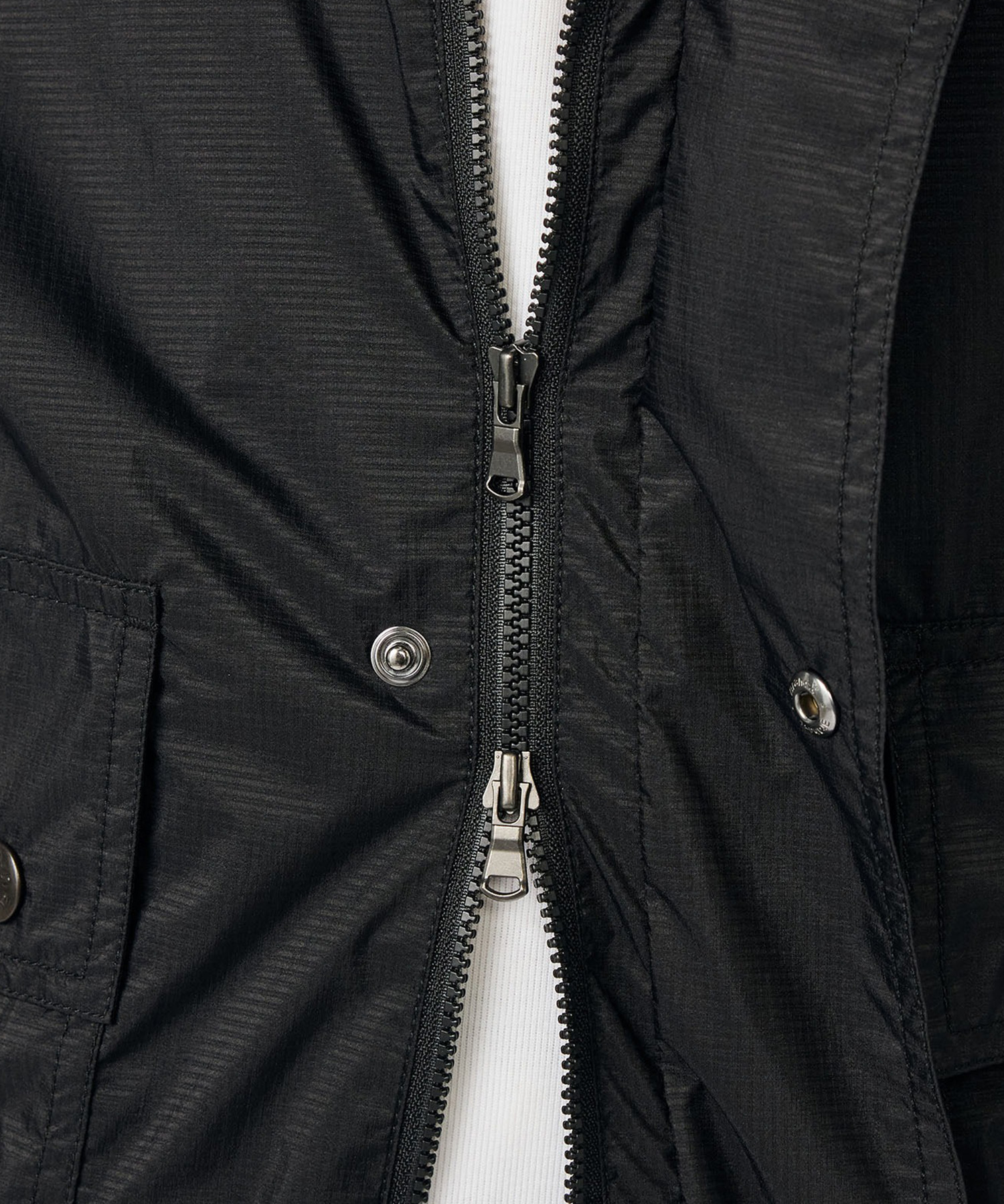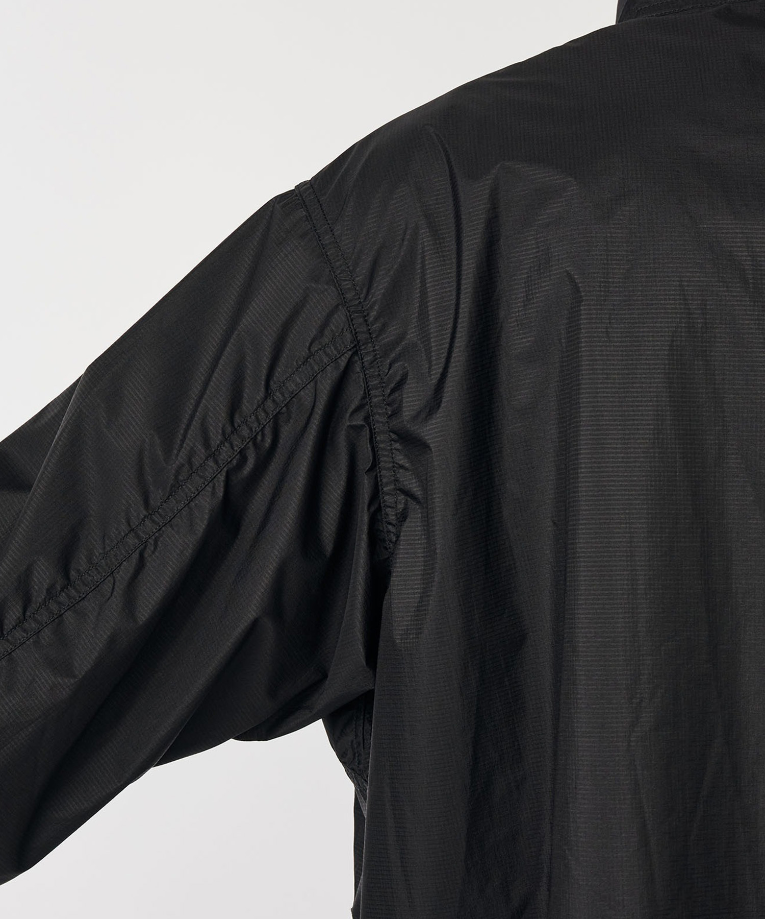 防風性とはっ水性を備えた、軽量な2.5層構造の12Dナイロンリップストップを使用したフィールドジャケット。軽やかな着心地ながら、アウトドアシーンでも頼れる機能性を発揮します。 内ポケットに本体を収納できるパッカブル仕様で、コンパクトに持ち運びが可能。携行性にも優れた実用的な一着です。