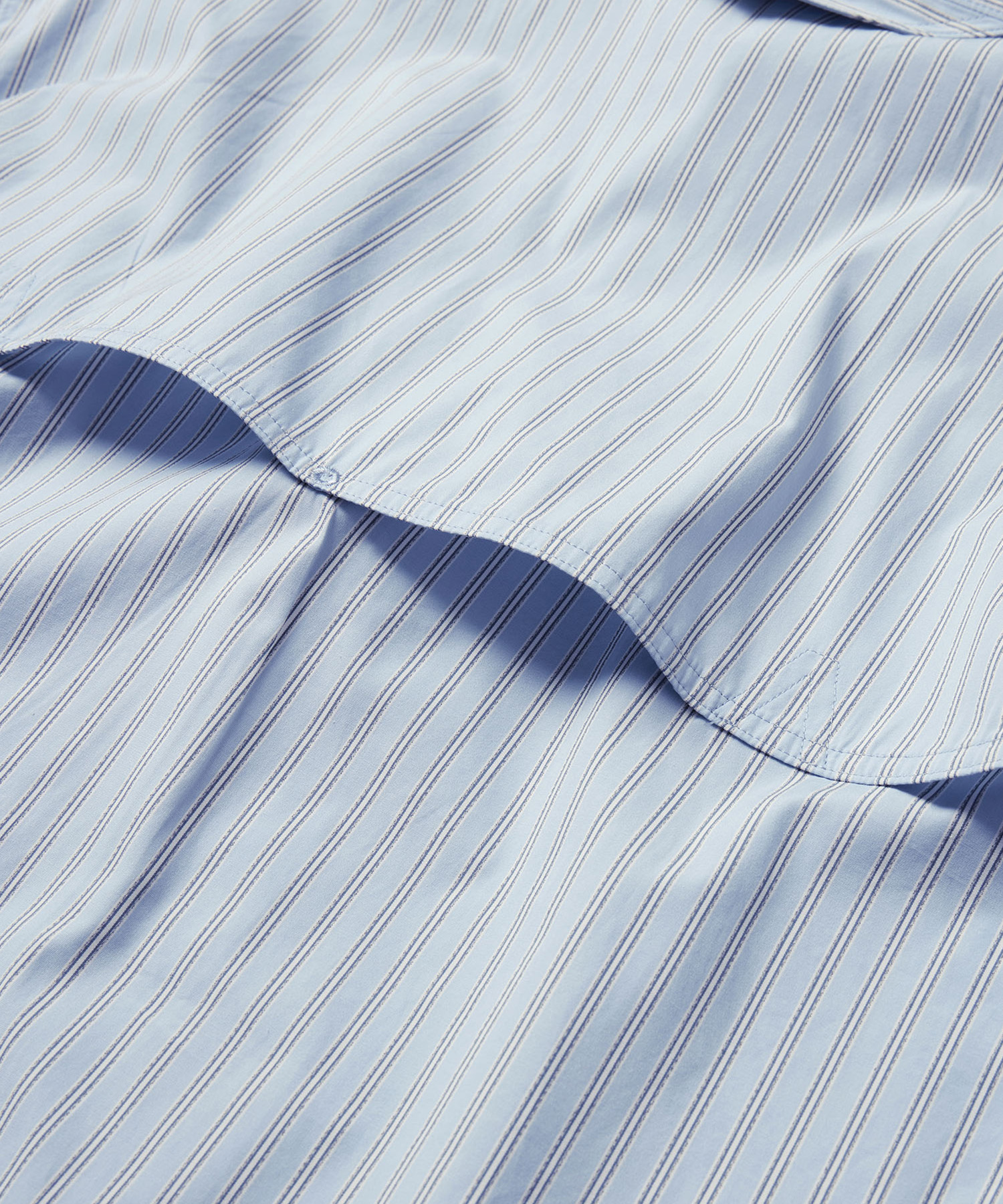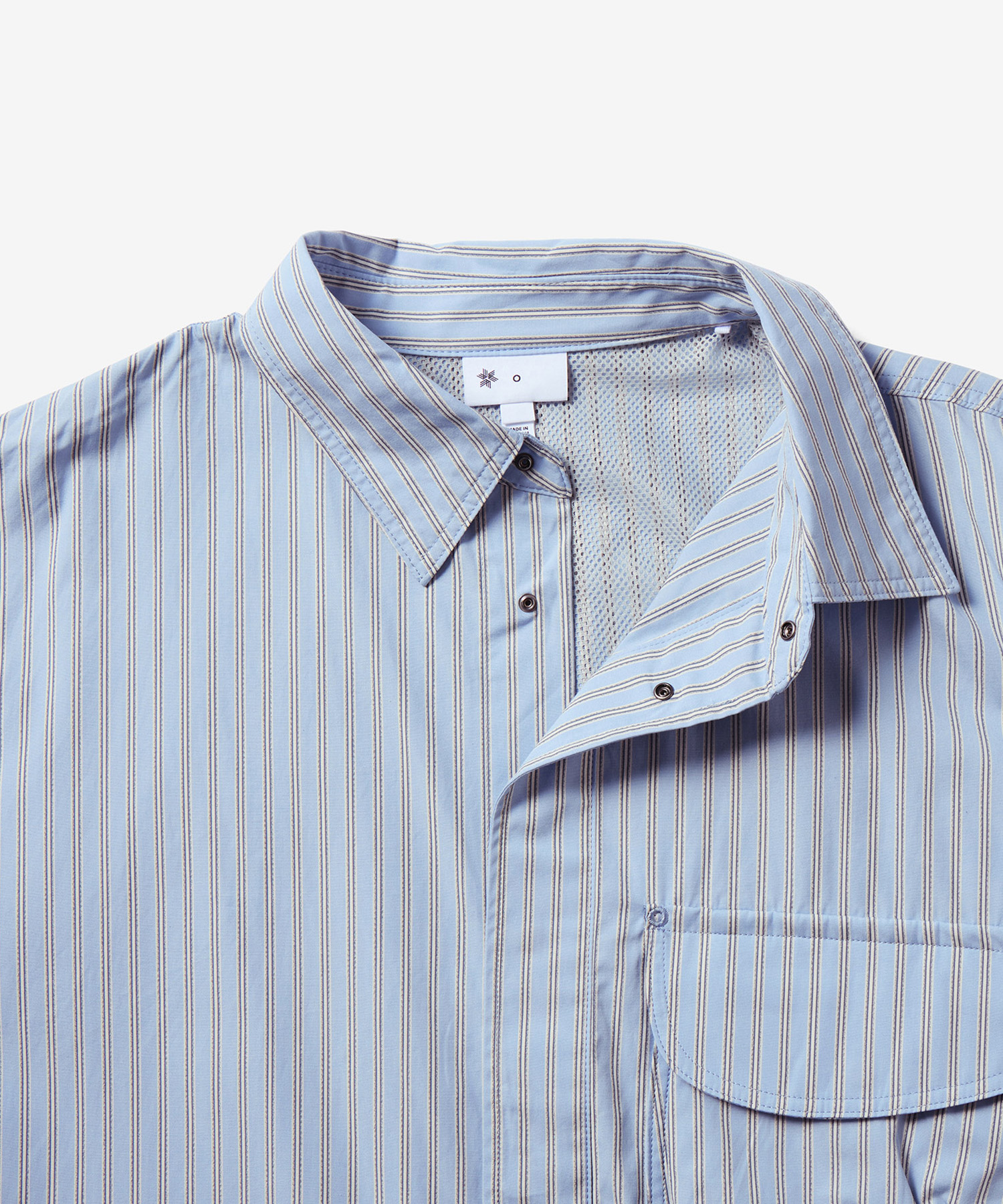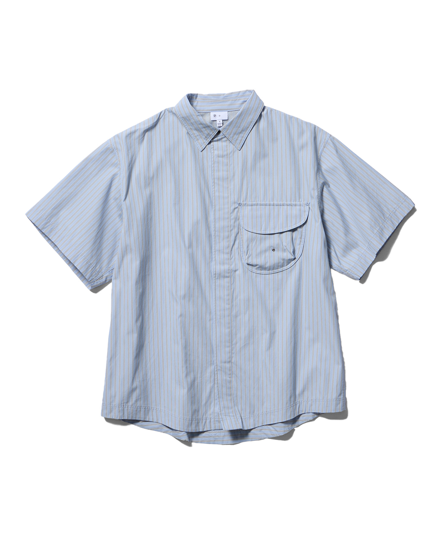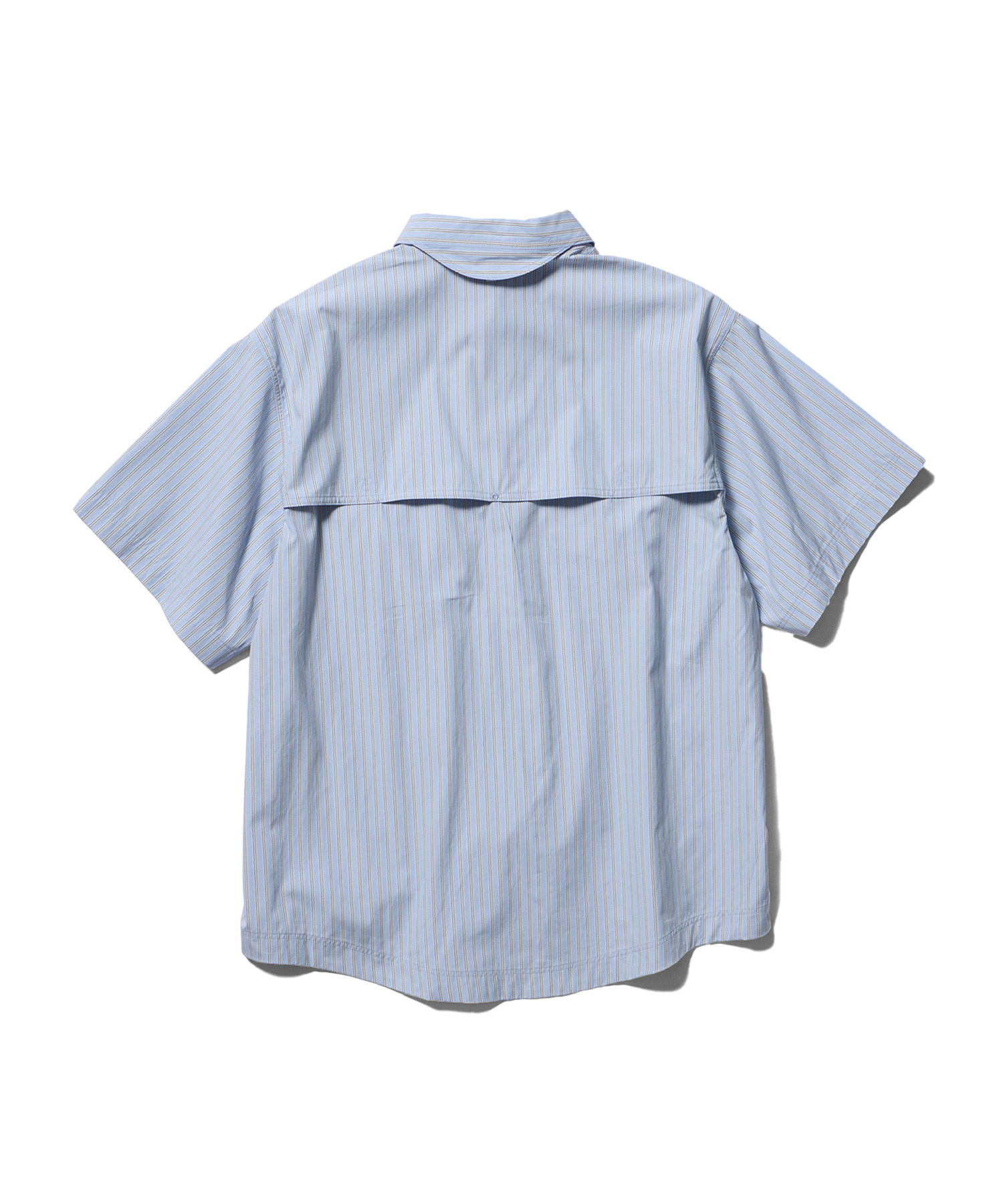 クラシックなストライプ柄の中に再帰反射糸を織り込んだ、オリジナルの生地で仕立てたショートスリーブシャツ。