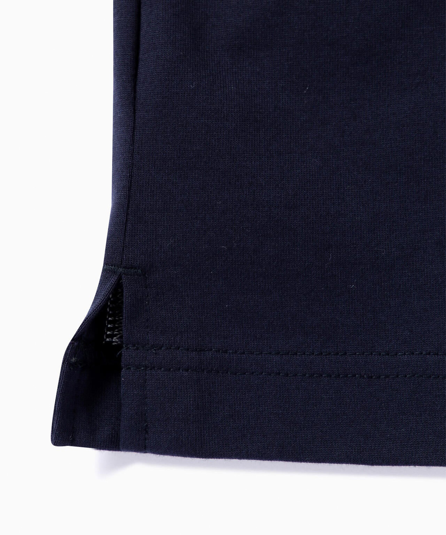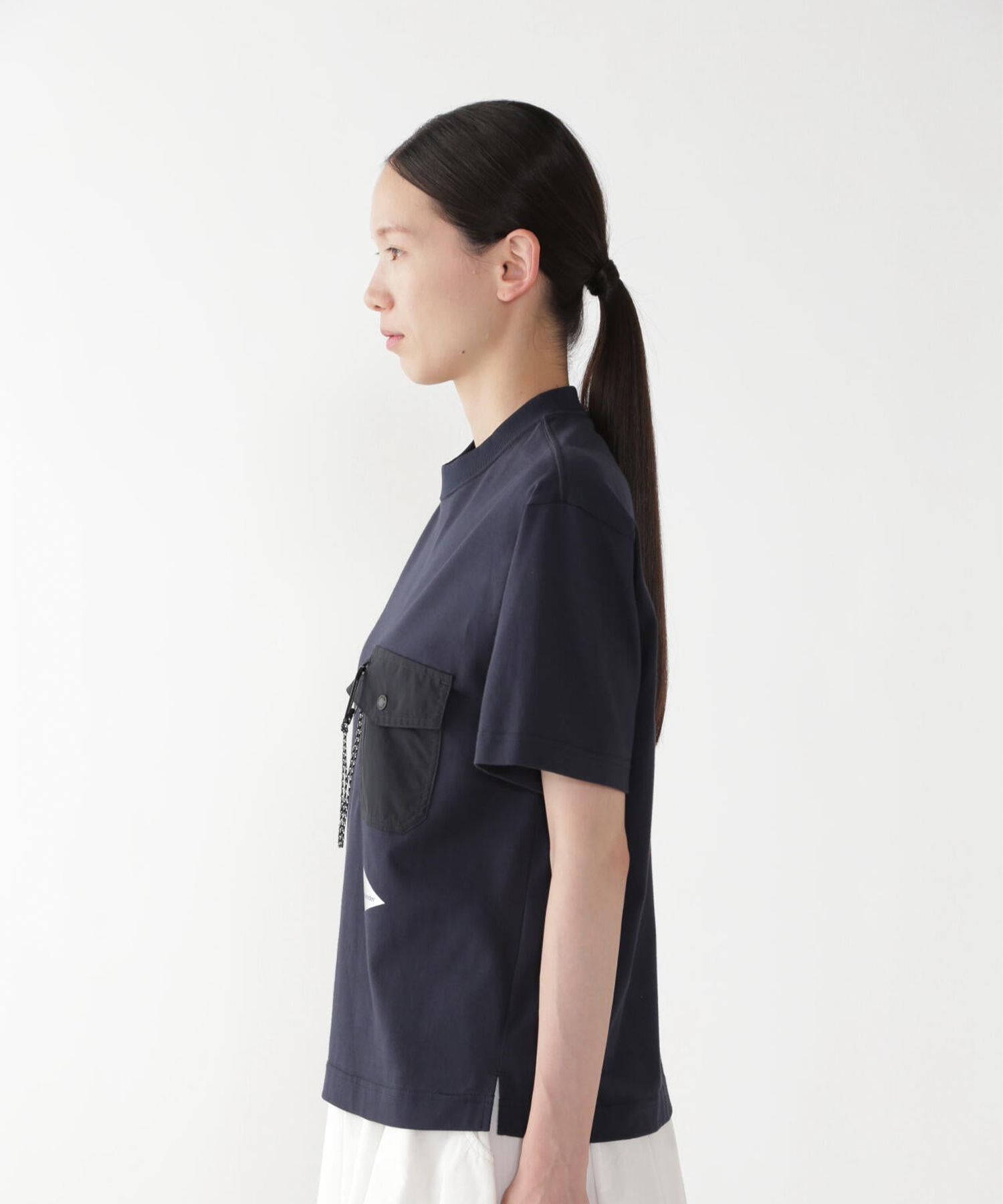 カラビナつきのポケットを胸につけたTシャツです。表にコットン、肌面にCOOLMAXを使用したハイブリッドな天竺素材を使用しています。