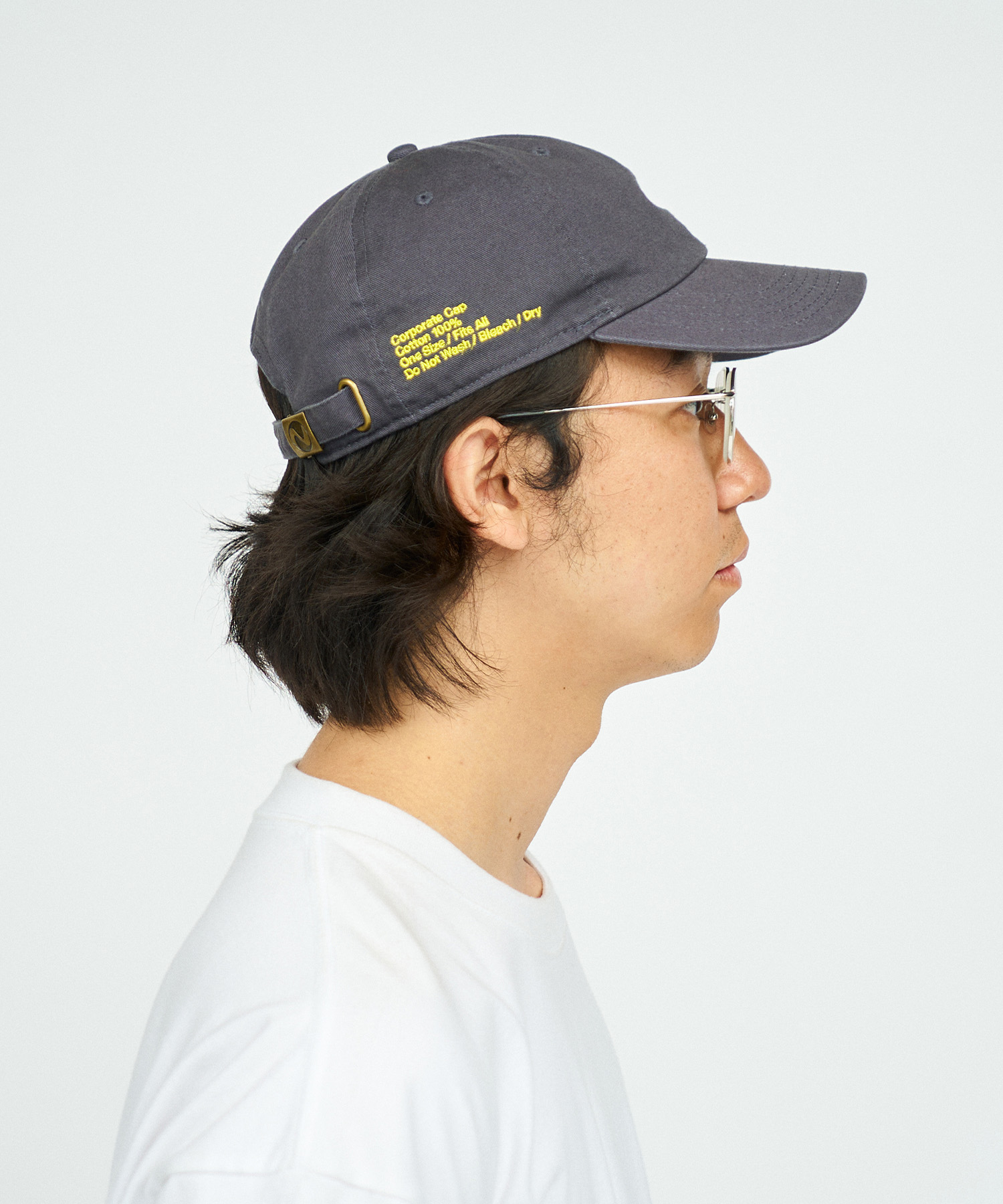 キャップはニューヨークの老舗帽子メーカー〈ニューハッタン〉がベース。浅めのサイズ感でツバが長いのが特徴で、真鍮製の留め金がついたサイズ調節のアジャスターもクラシックな雰囲気。