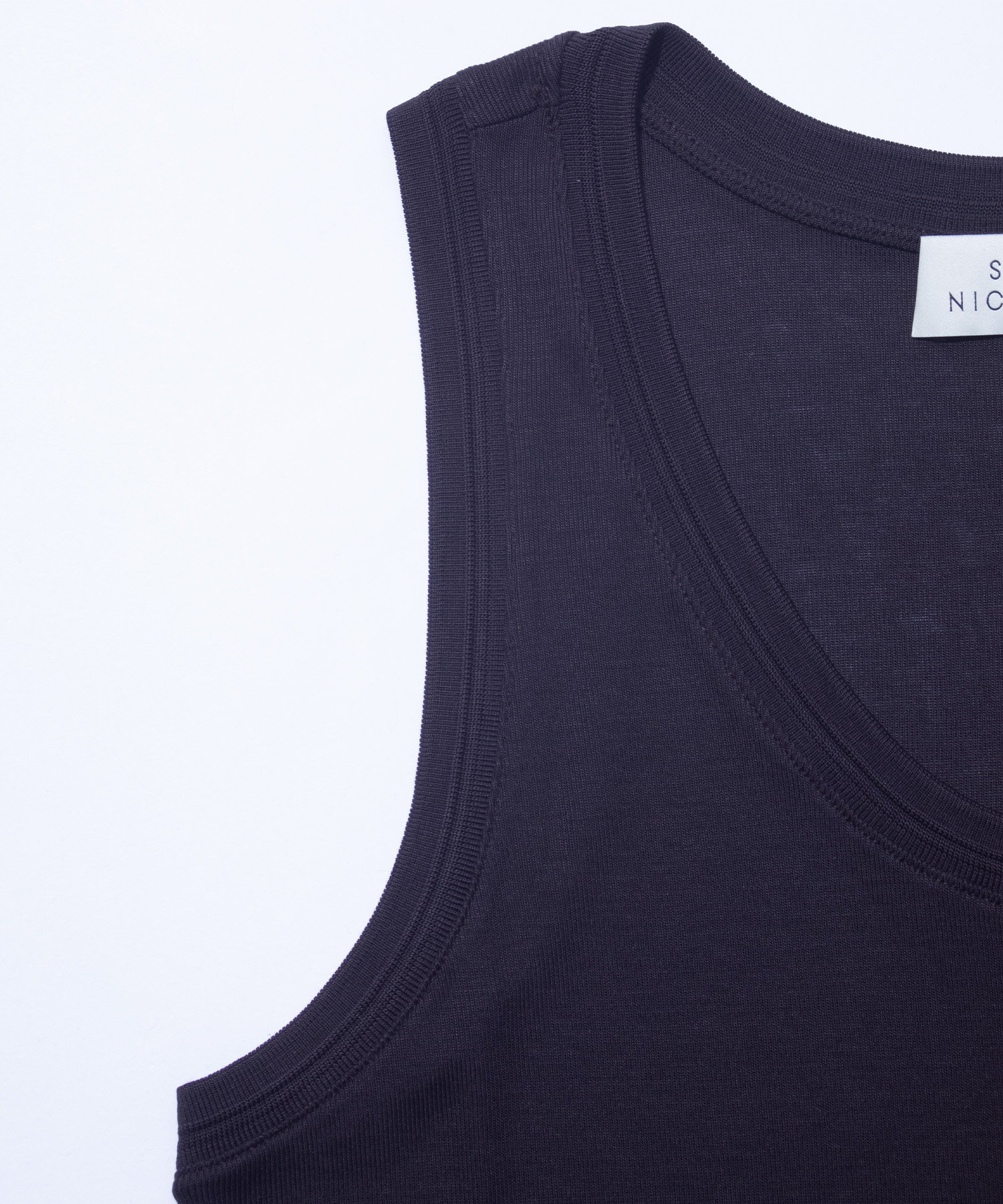 ボーイッシュだけにとどまらぬようジャストフィットサイズ、オーバーサイズどちらにでも、女性本来の体型をベースにだらしなくならないように構築し直されている。ネックラインのバランス、アームホールは細やかにモダンなシルエットへデザインし直され、パンツもウエスト、ヒップともにシルエットをリ・メイドし決してスキニーになりすぎない微妙なゆとりを意識してデザイン。 ニックの望む雰囲気と着心地、完璧なシェイプをだすために、彼女自身のチョイスによるこだわった素材感、高級感あるファブリックを使用している。