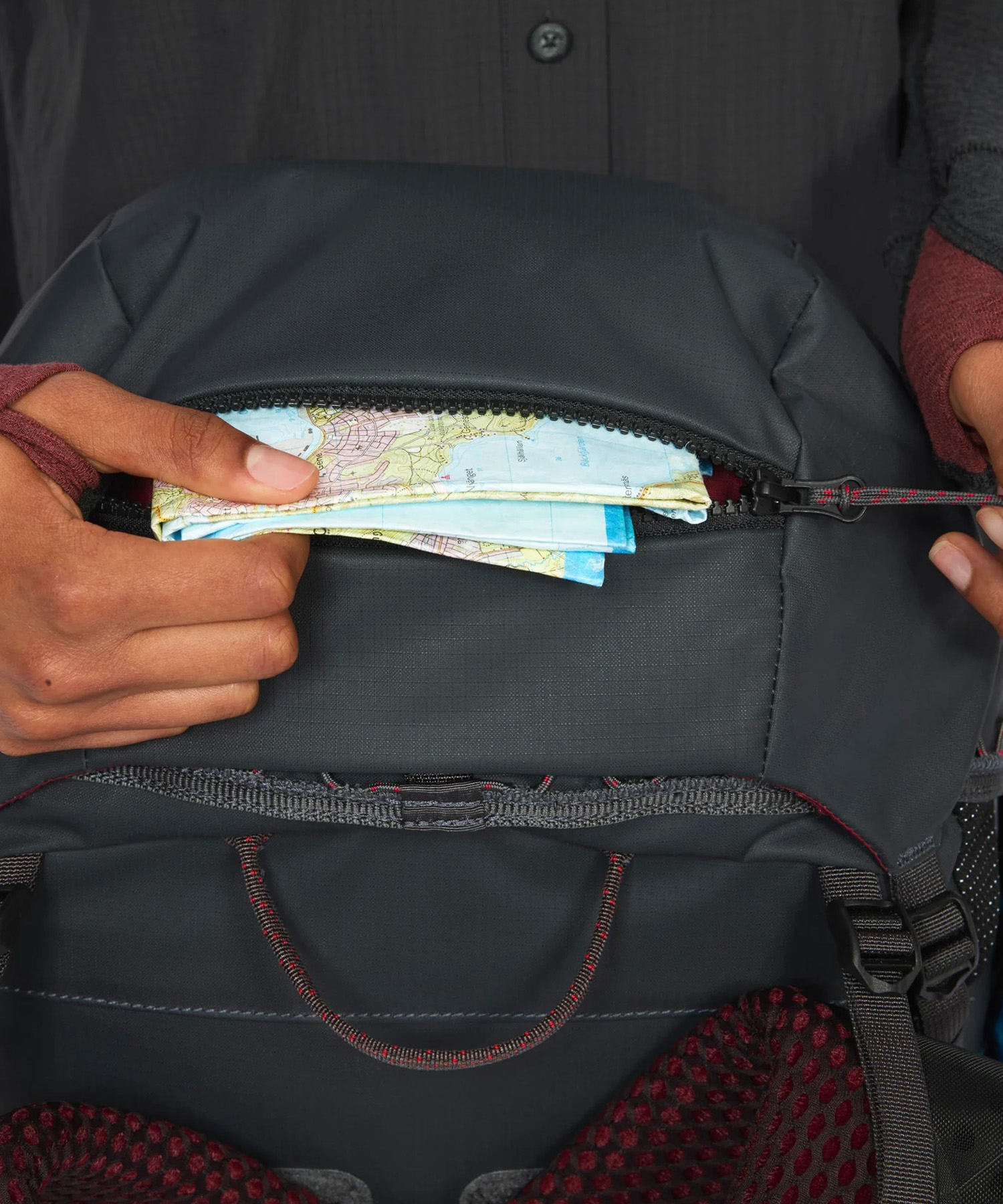 人間工学に基づいたショルダーハーネスとヒップベルト、無段階で調整可能なキャリーシステムにより、高いフィット感を実現。 ストレッチポケットやトップリッド、サイドコンプレッションなど収納力と整理力に優れ、シンプルな1気室構造で扱いやすさも追求。