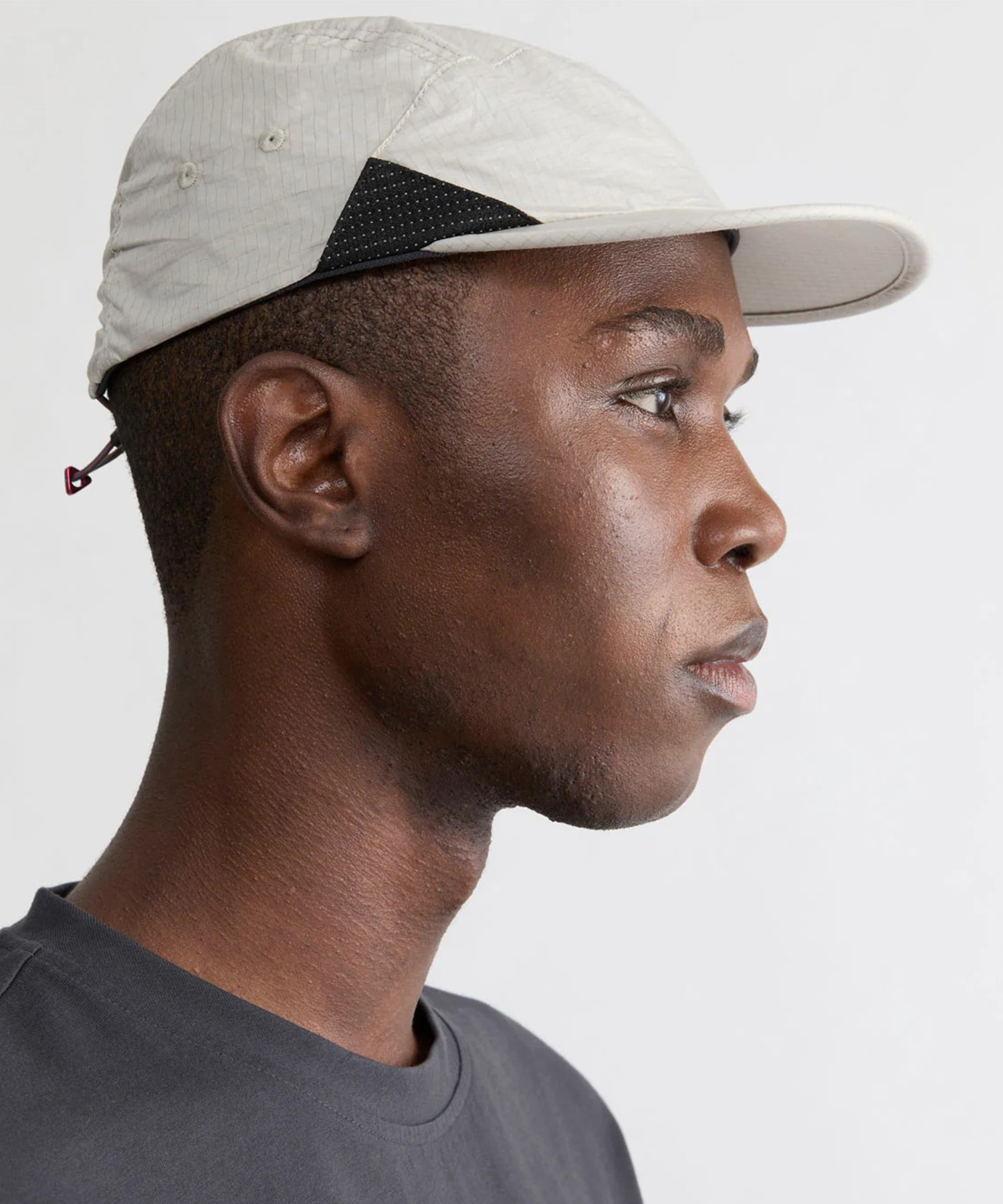 耐久性と軽量性を兼ね備えた、パッカブル仕様の5パネルキャップ。リップストップオーガニックコットン素材を使用し、防風性・耐水性に優れながら、コットン特有の柔らかさと通気性も確保しています。