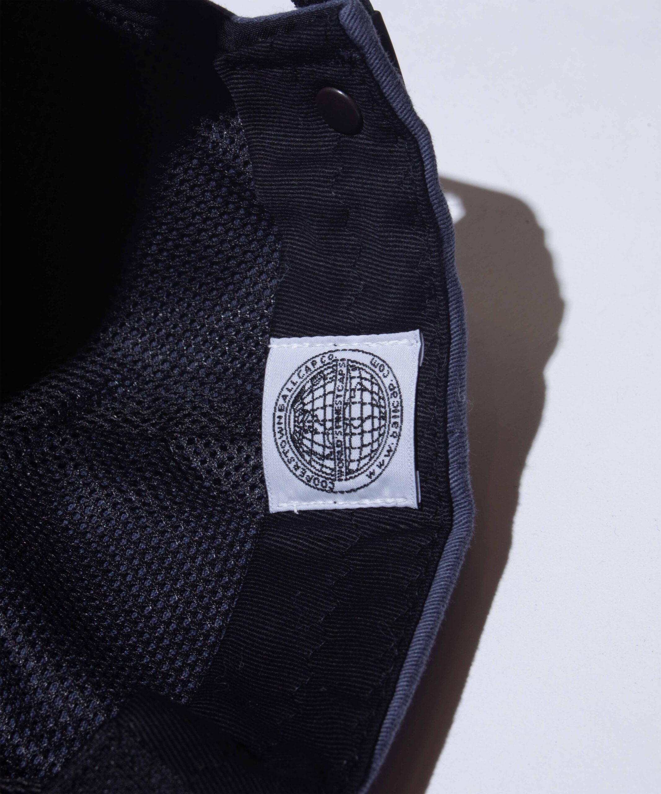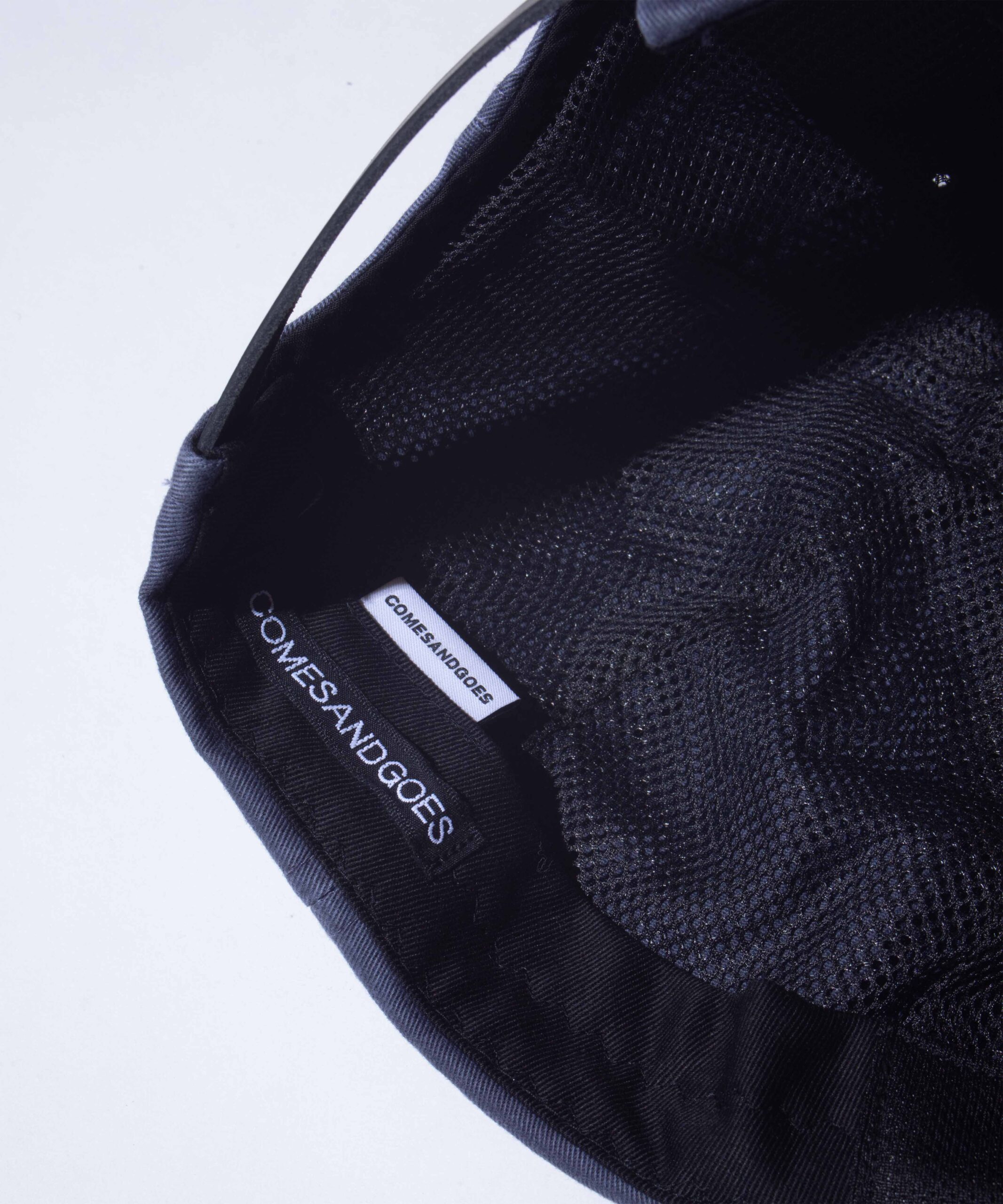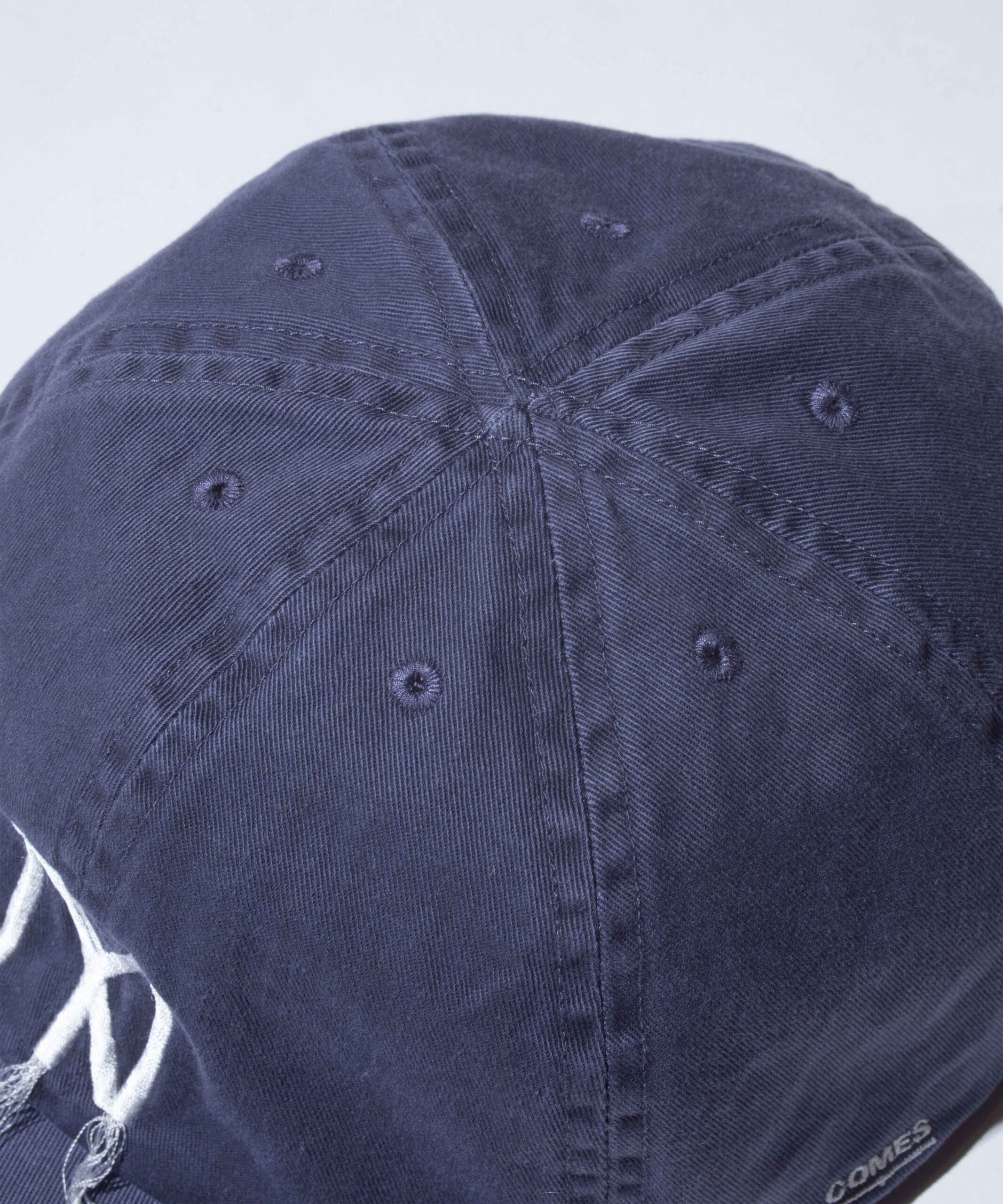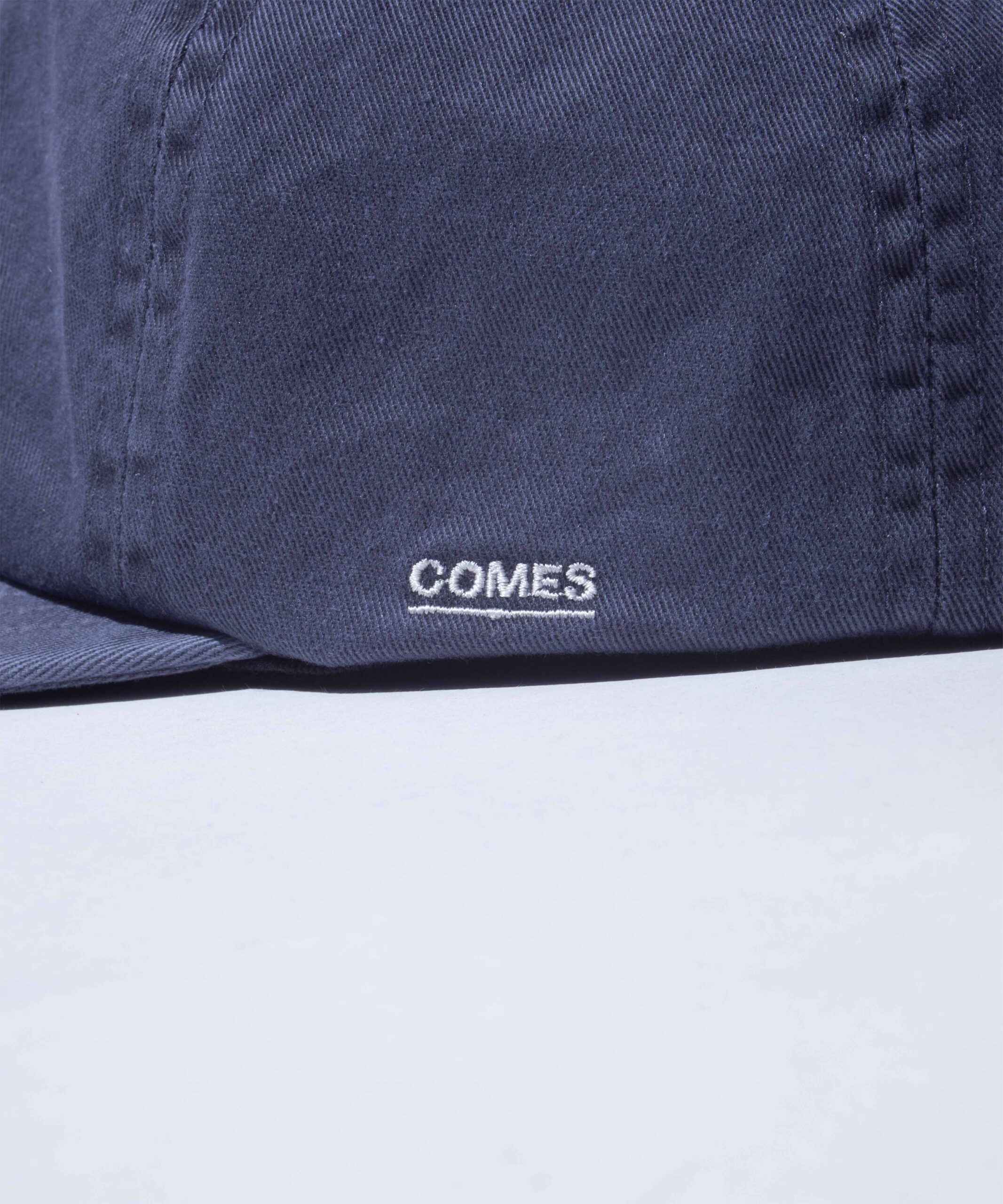 COOPERS TOWN BALL CAP(クーパーズタウンボールキャップ)とのコラボレーションキャップ。 ベーシックなチノクロスをベースに染料で染めた後に、黒の顔料でオーバーダイした生地を 製品バイオウォッシュし、程よいダメージ感を出した6パネルキャップ。 Aタイプはベーシックな”NY”ロゴ刺繍。Bタイプは”NY”ロゴから糸が垂れたデザインになっています。 サイドにはどちらも”COMES”の刺繍が入ります。裏地はクールマックスのメッシュを使用しています。 後ろアジャスター部分は黒の牛革ベルト、バックルと小判ハトメはシックブラックのものを使用しています。 つばの長さ約7.2cm。