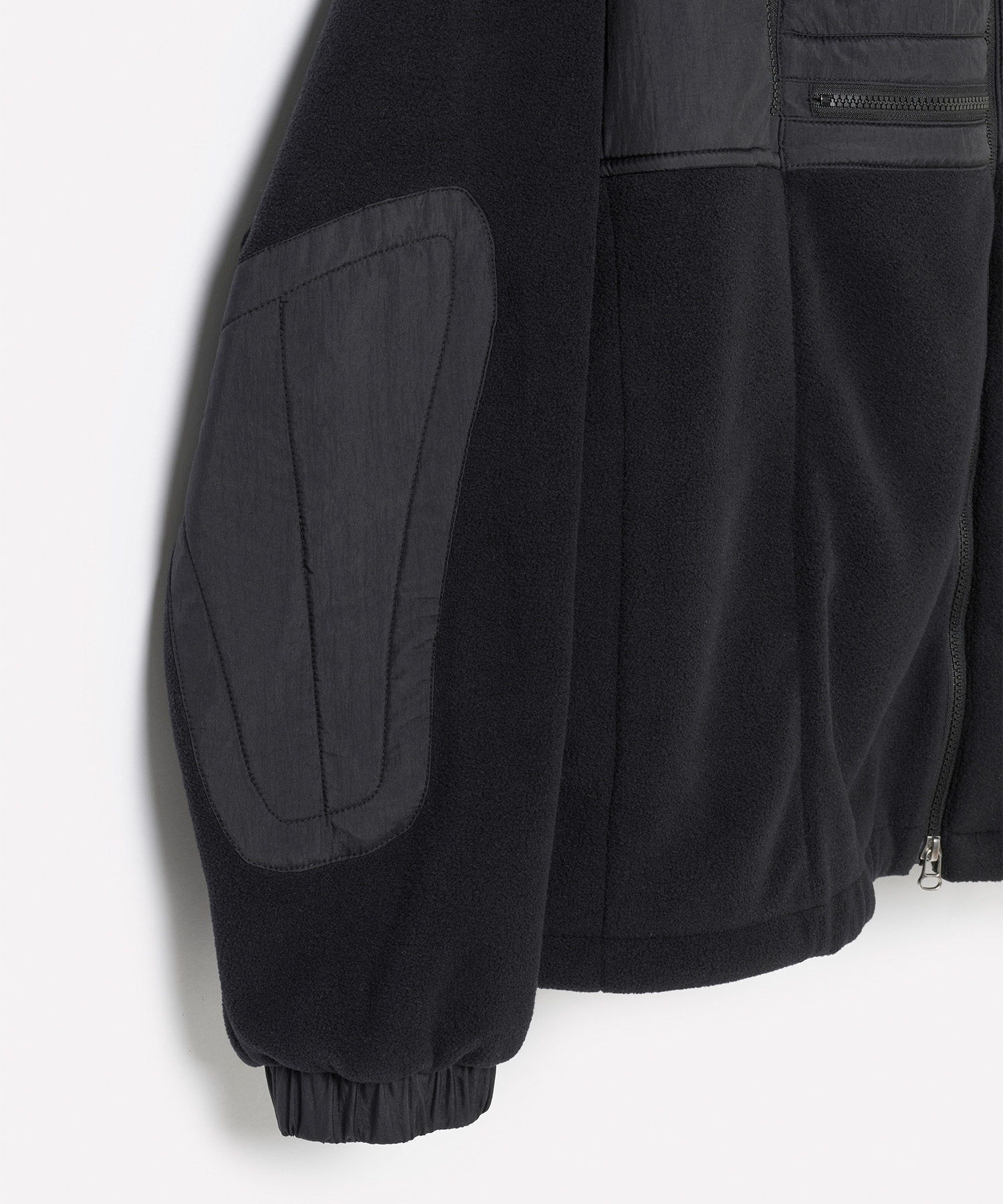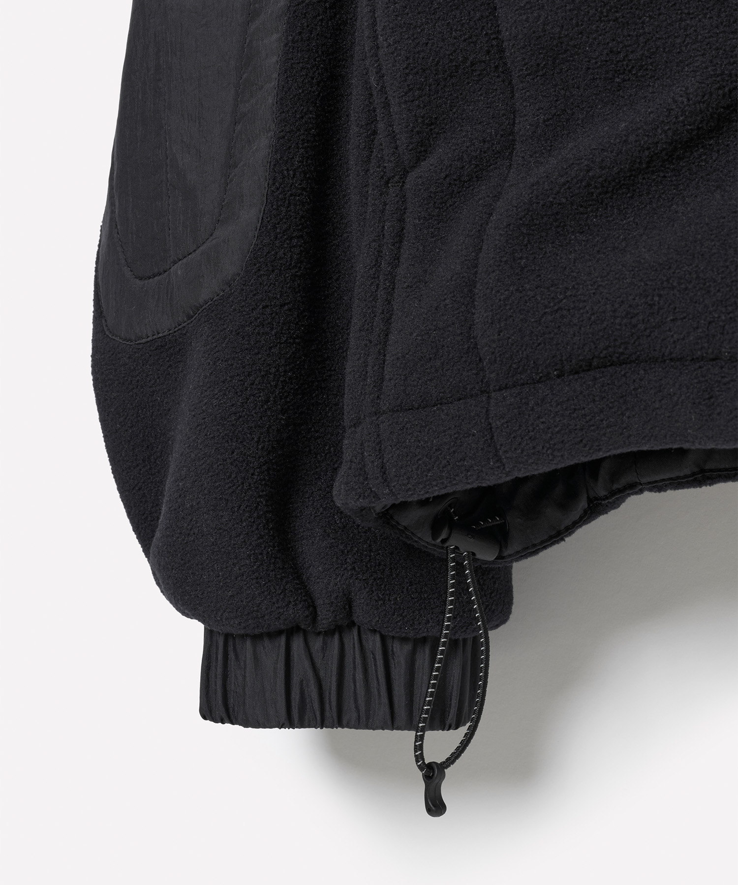 両面起毛の肌触りの良いフリースと、シワ加工を施したナイロンタフタの切り替えがアクセントになっています。