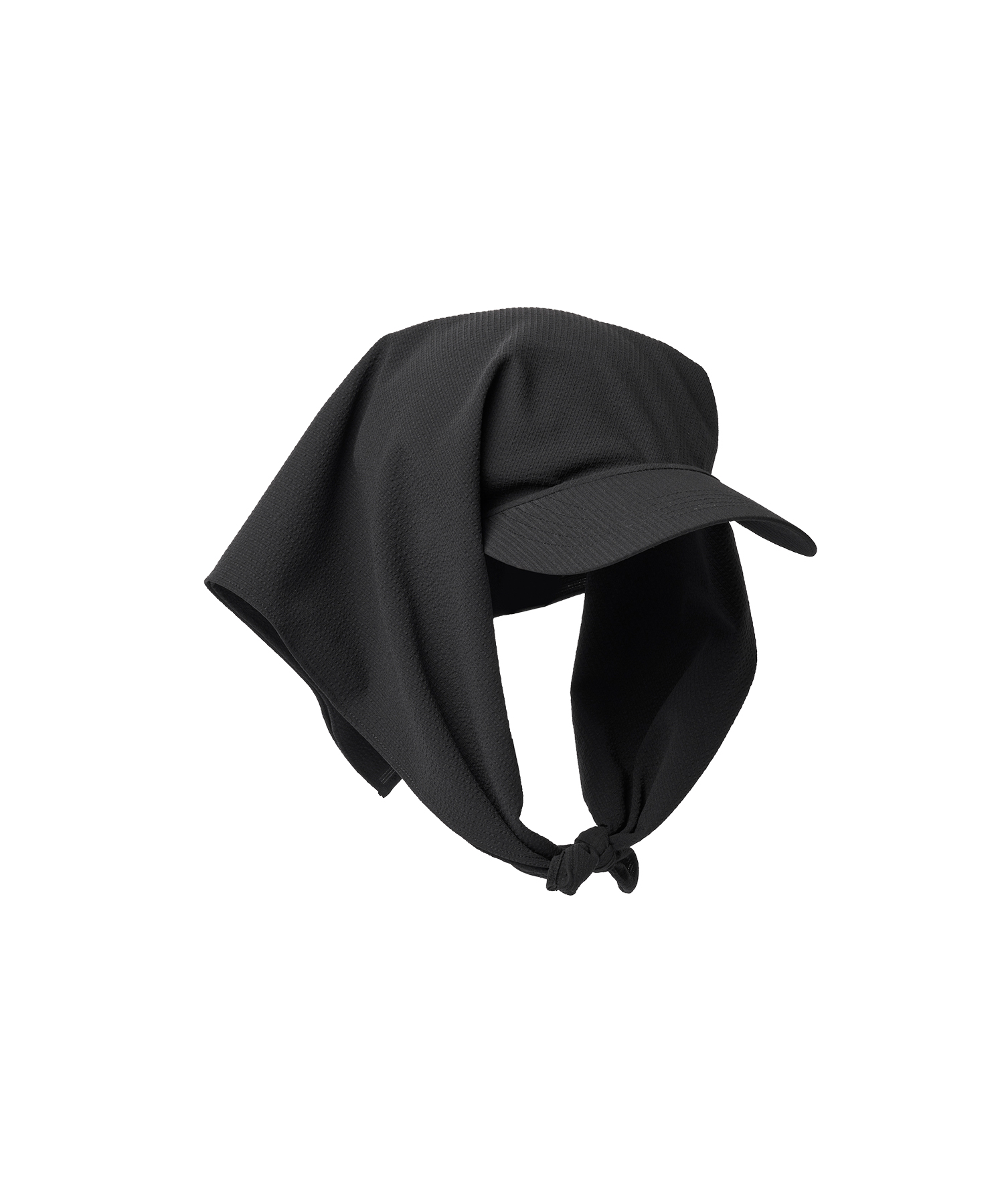 スカーフにツバの付いたデザインが特徴です。縛り方次第でさまざまな着用スタイルを楽しめるのも魅力のひとつです。素材は軽く、肌触りが良いため、長時間の着用も快適。アクセサリー感覚で取り入れられるデザインは、季節やシーンを問わず活躍します。