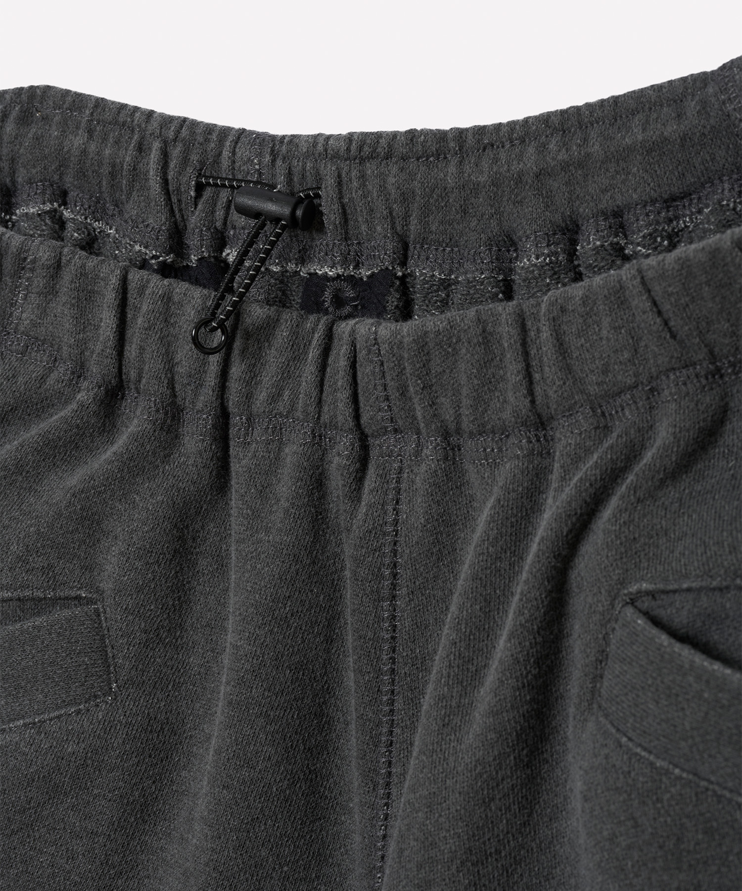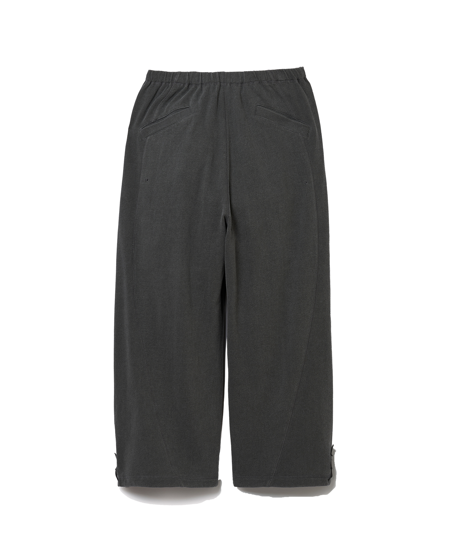 Material: 顔料染料で加工した30/10裏毛。顔料染料を用いて加工された素材で、耐久性と風合いの変化を重視しています。洗濯を重ねるごとに経年変化が生まれ、独自の風合いと味わいが増していきます。 Design: サークル状の切替とワイドシルエットにより、動きやすさと快適性を追求しています。膝下にはタックを施し、立体的なシルエットを実現しています。ウエストと裾はスピンドルで調節可能なため、フィット感を自在に調整できます。左ポケット付近にはブランドロゴを配置し、さりげないアクセントとなっています。 Size(cm): S ウエスト68 ヒップ115 股上31 股下65 裾幅28 M ウエスト74 ヒップ123 股上32 股下67 裾幅29 L ウエスト78 ヒップ127 股上33 股下60 裾幅30