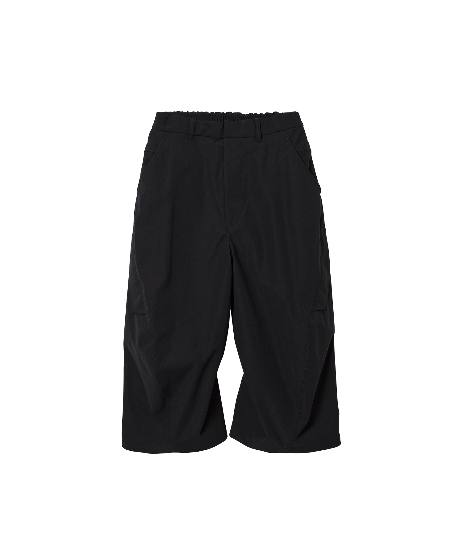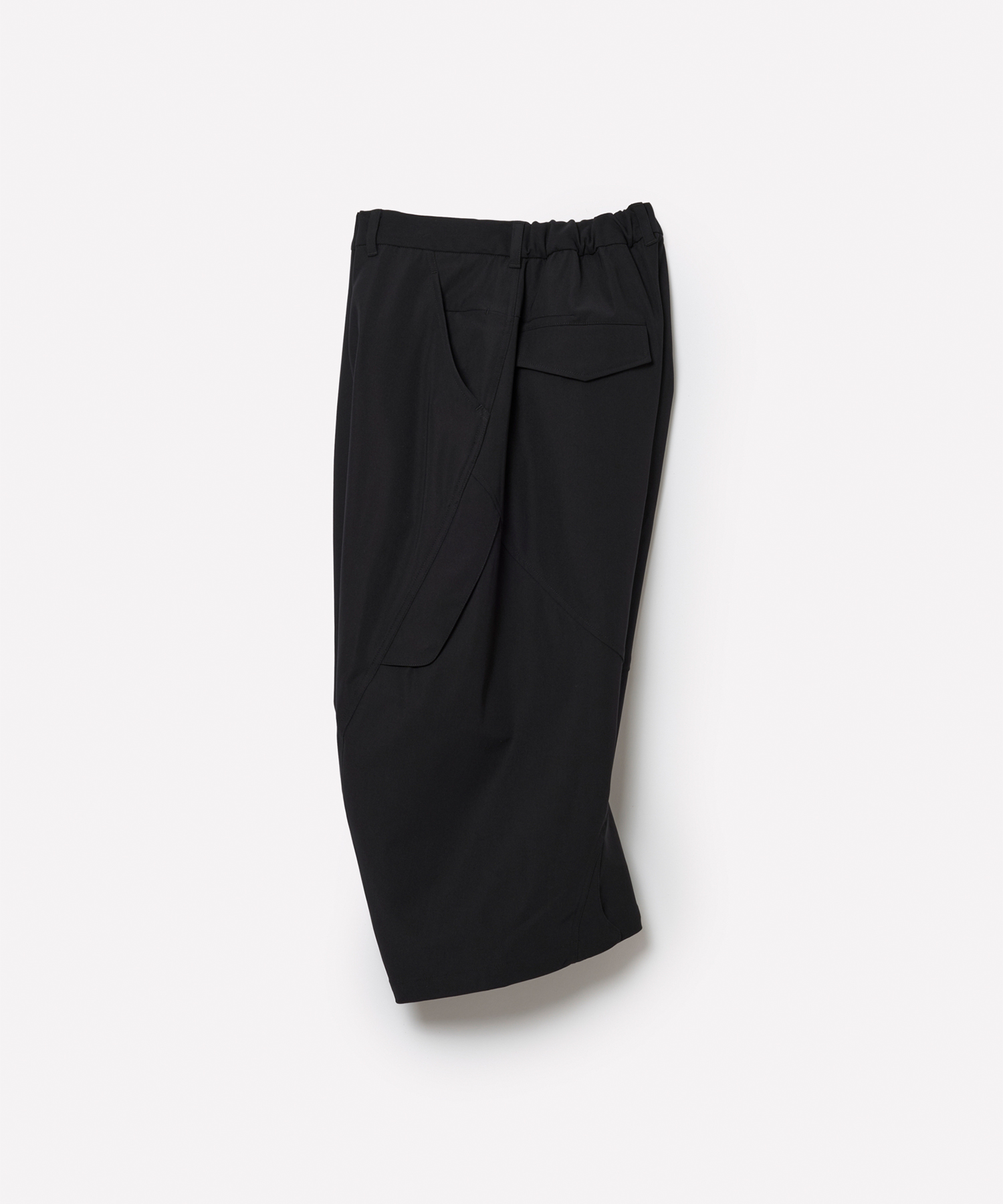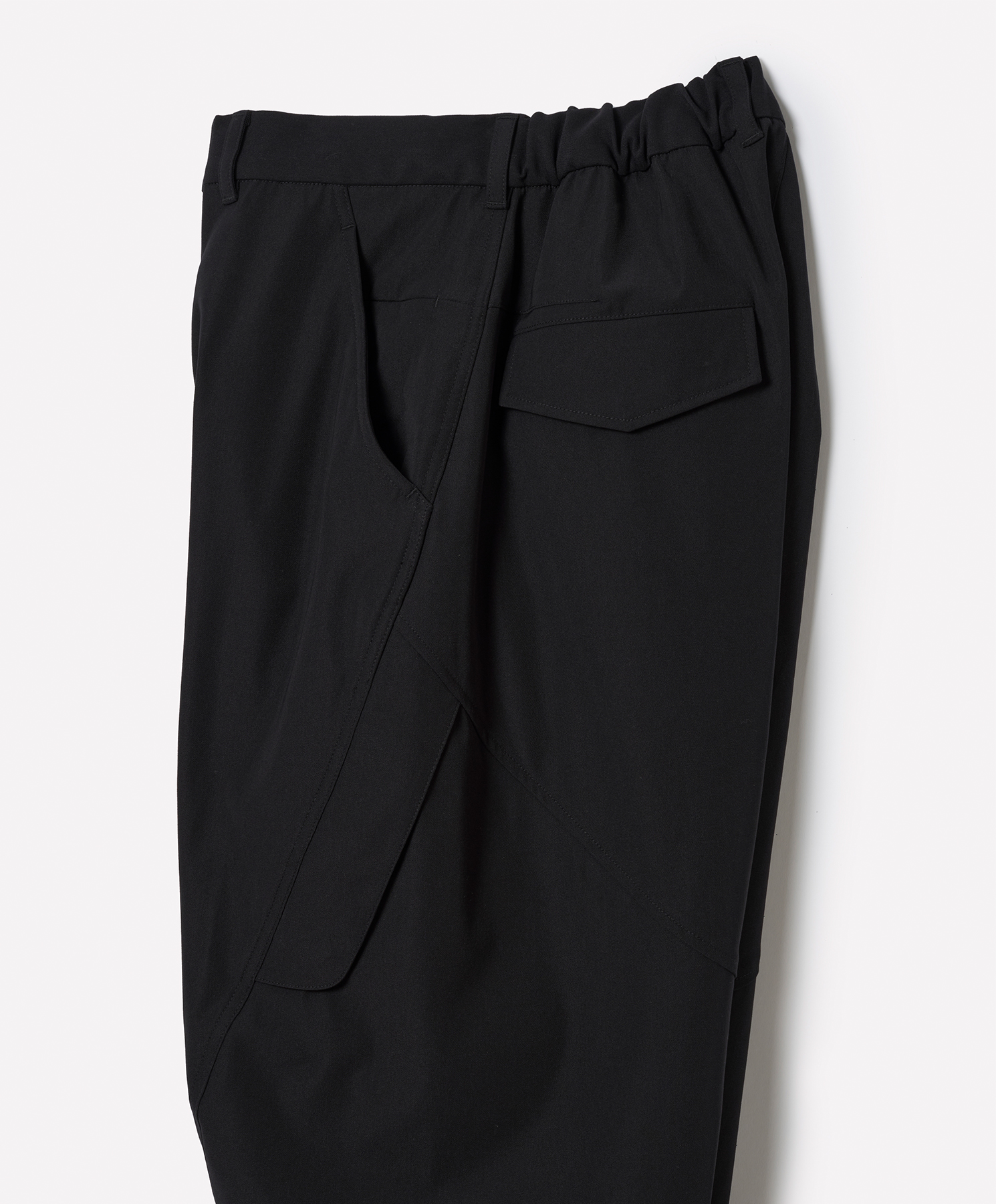 Material: 梳毛調の風合いを持つMILPARとしなやかな伸縮性を持つSOLOTEXRを組み合わせた中肉厚のストレッチ素材。MILPARの糸を強 撚することで、より梳毛らしい心地よいドライタッチとプリッとした反発感を表現した機能的な素材です。 Design: 立体的なパターンが特徴のクロップドパンツ。脇のシームにひねりを加え、膝に向かって湾曲した独特のシルエットにより、動きやすさと快適性を追求。腰部分にはシークレットポケットを配置し、貴重品の収納に便利です。サイドのフラップポケットなど、全部で8個のポケットが備わっています。裾はドローコードによって調節可能です。 Size(cm) S ウエスト70-80 ヒップ113.5 股上31.5 股下48 裾幅29 M ウエスト74-84 ヒップ117.5 股上32.5 股下50 裾幅30 L ウエスト78-88 ヒップ121.5 股上33.5 股下52 裾幅31
