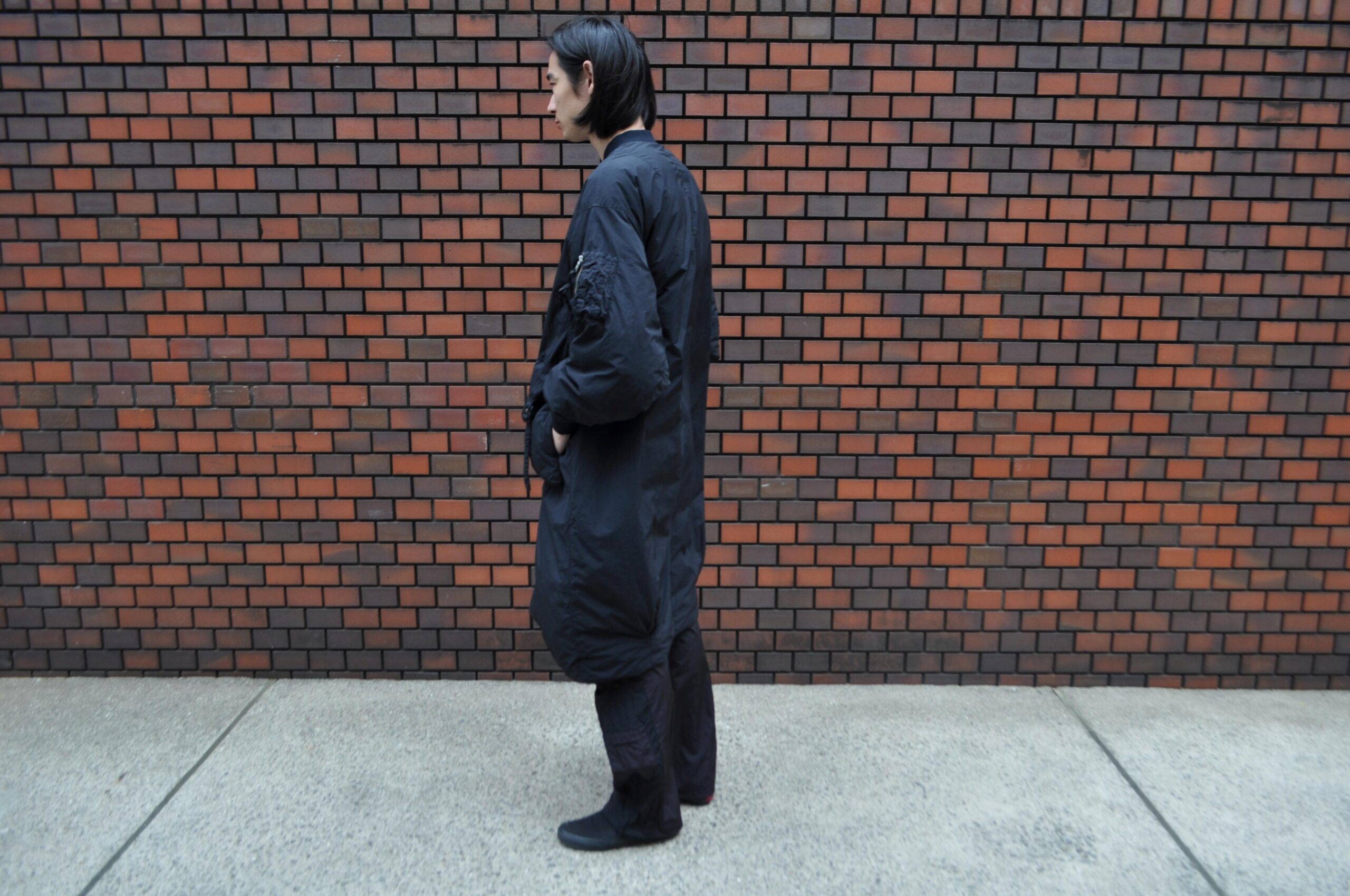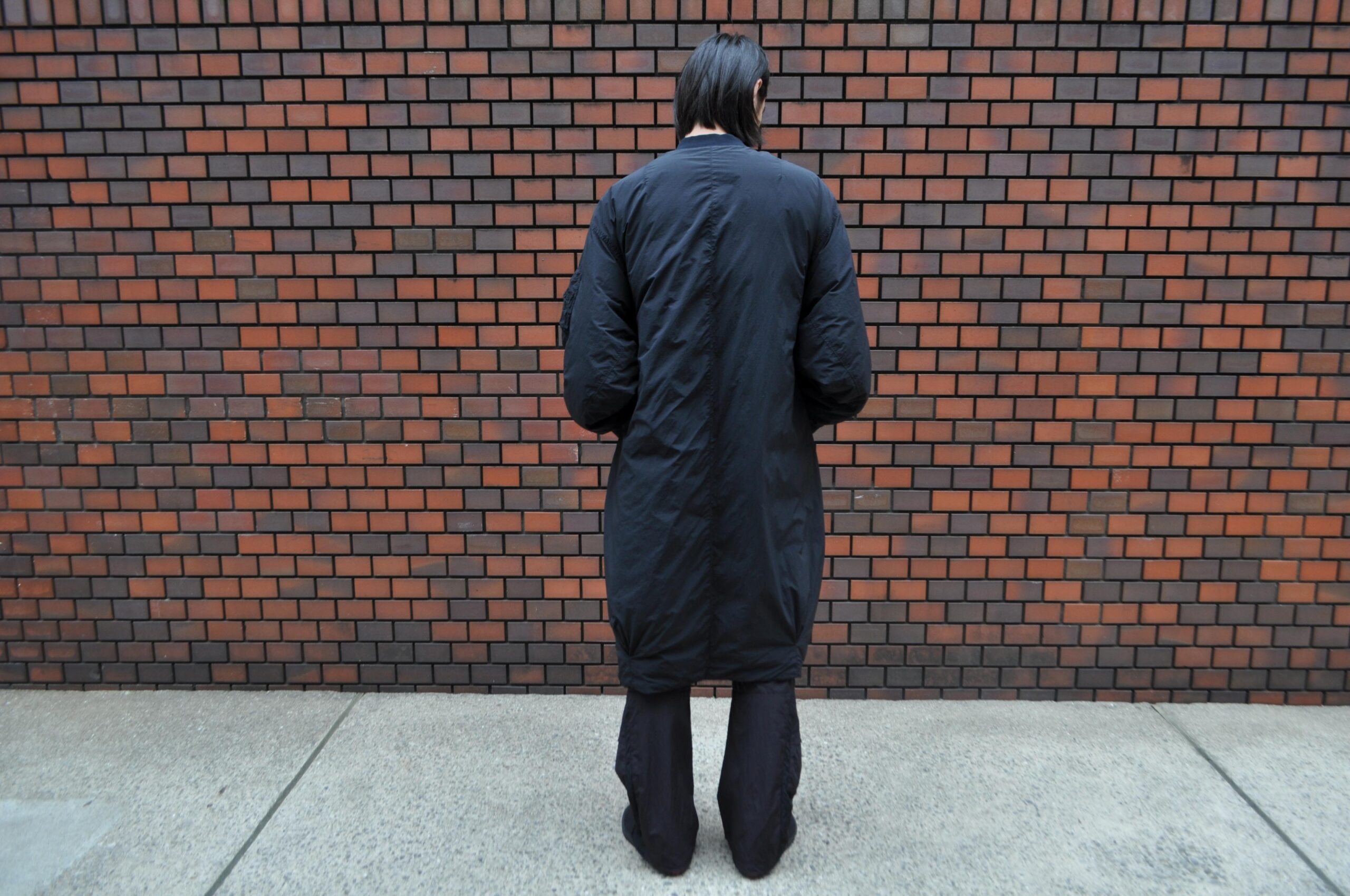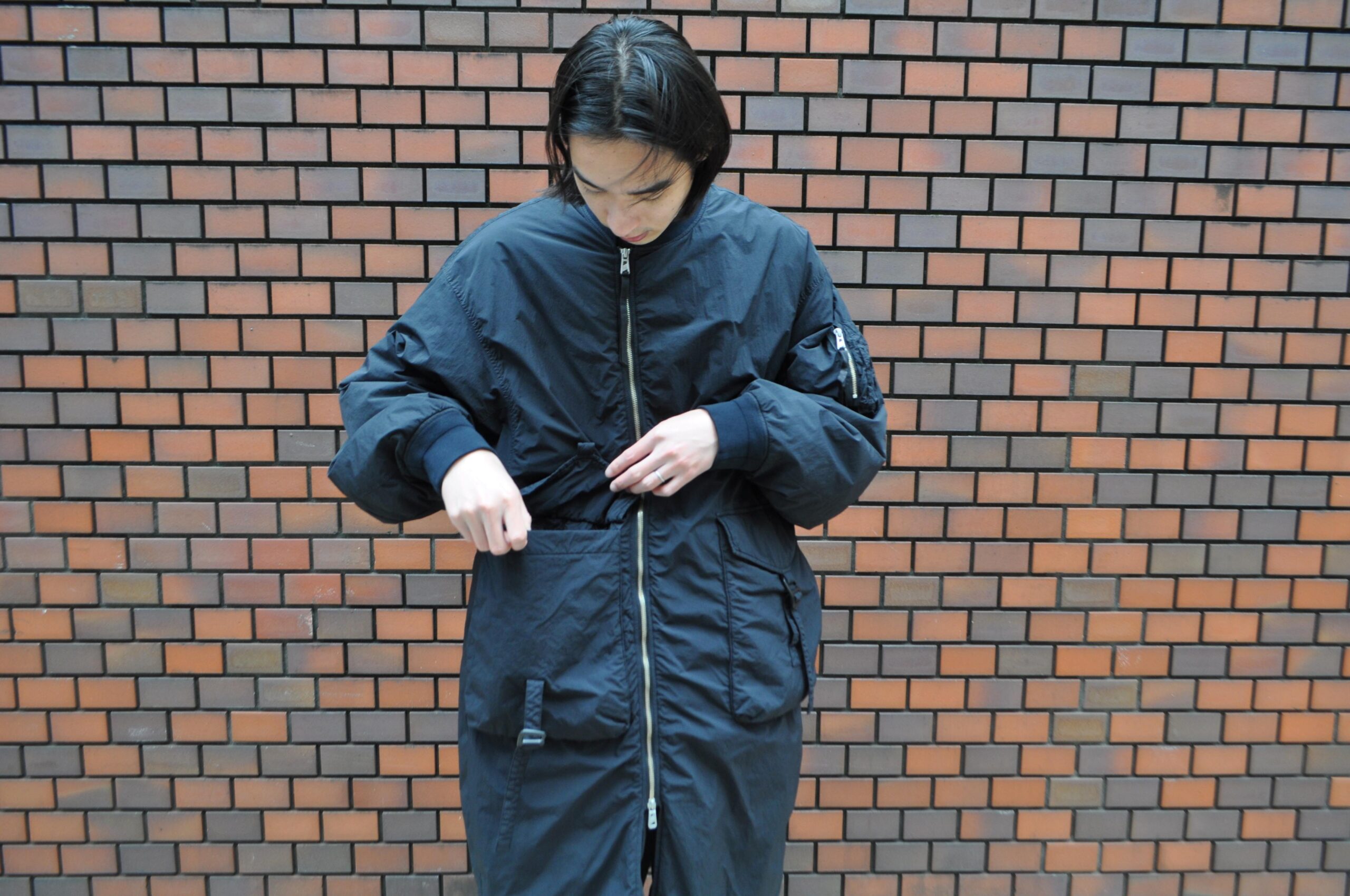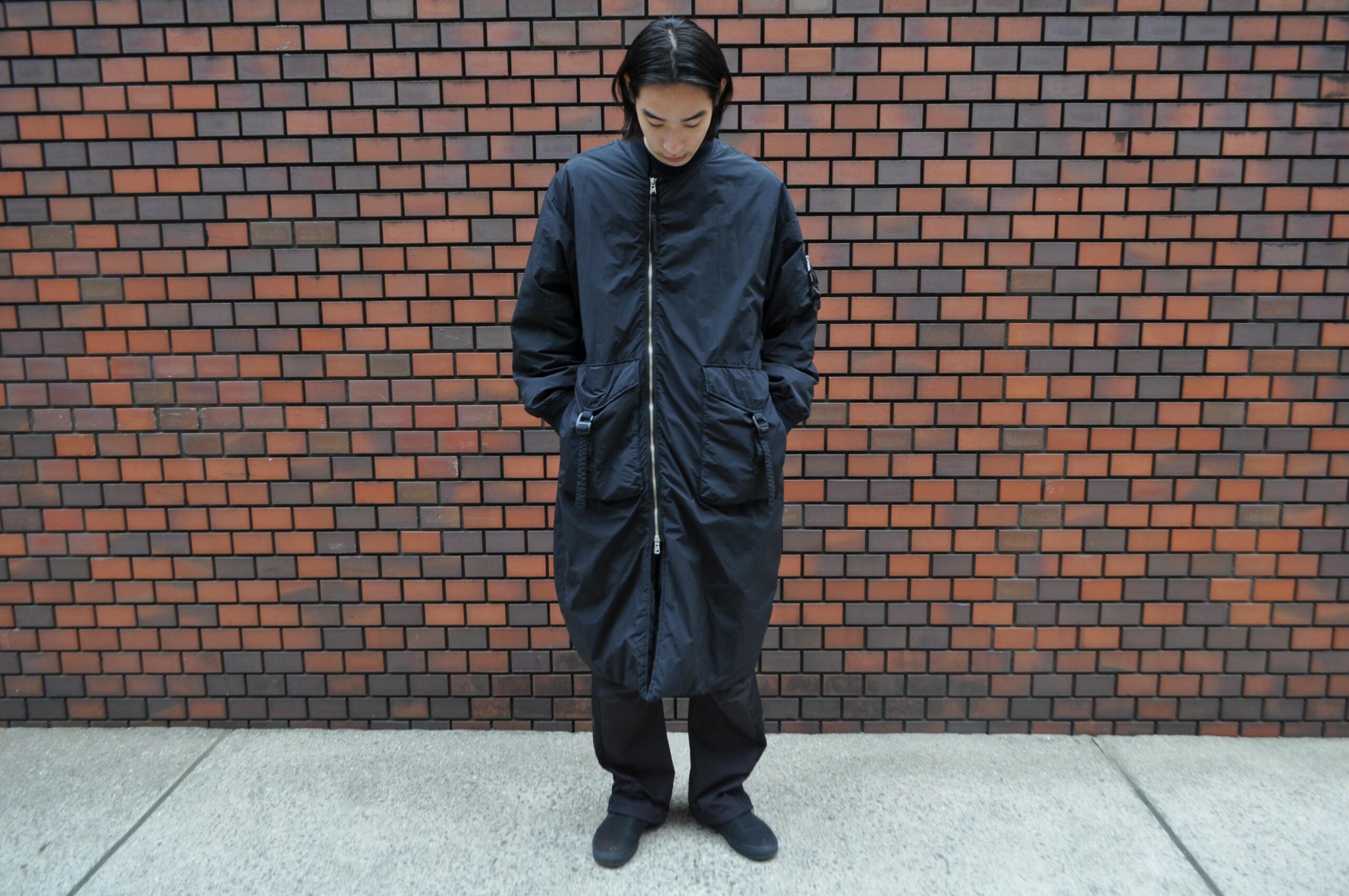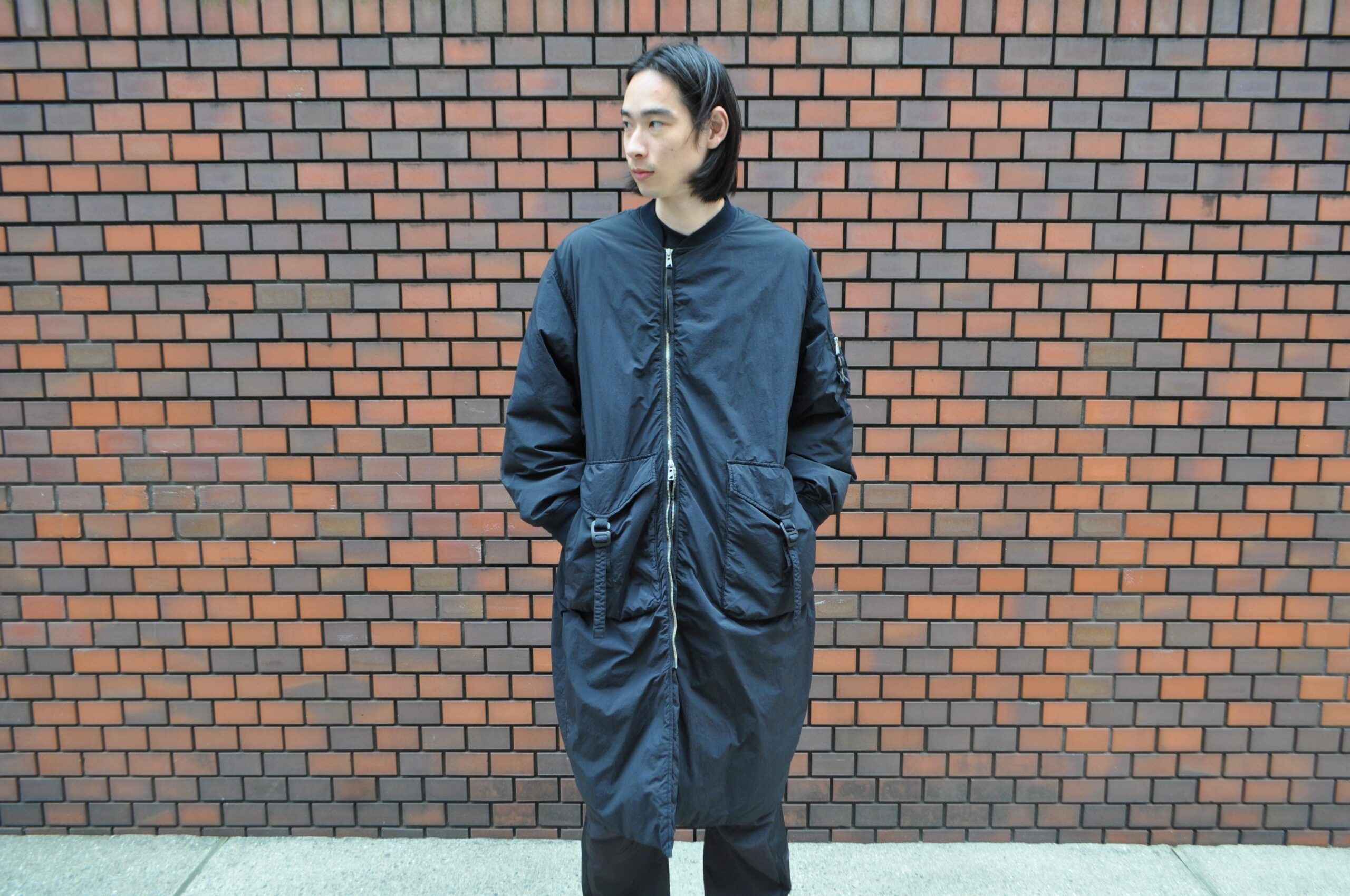 製品染を施すことで深みのある独特な色合いの表現が特徴のMA-1タイプのロングコート。