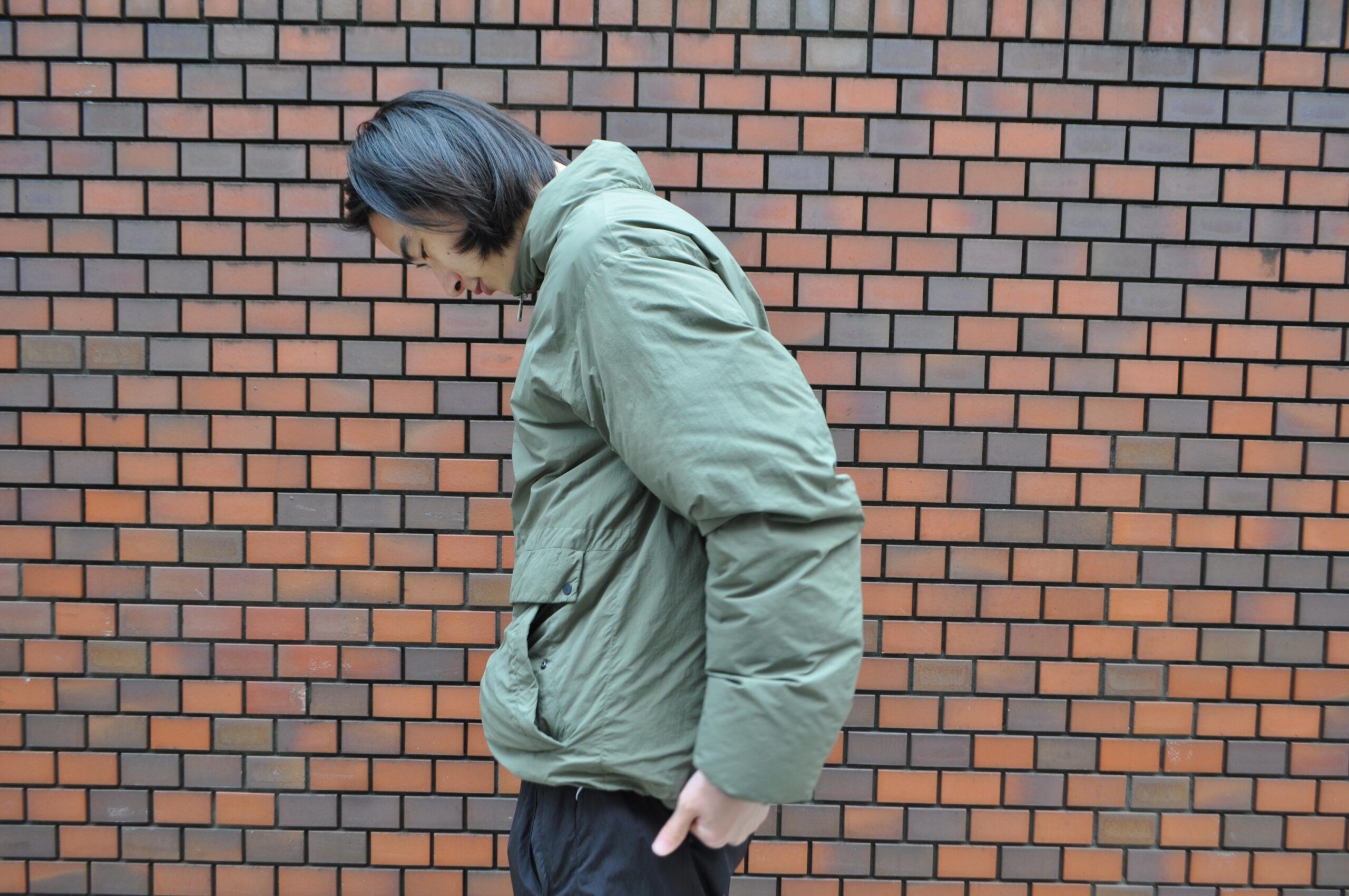 ですが、アシンメトリーデザインのジップ、ガーメントダイでの独特の風合い、各ディテールはF/CE.らしい機能を搭載し、着用すると生地の風合いやシルエットが相まってカジュアルすぎず、綺麗目すぎない。