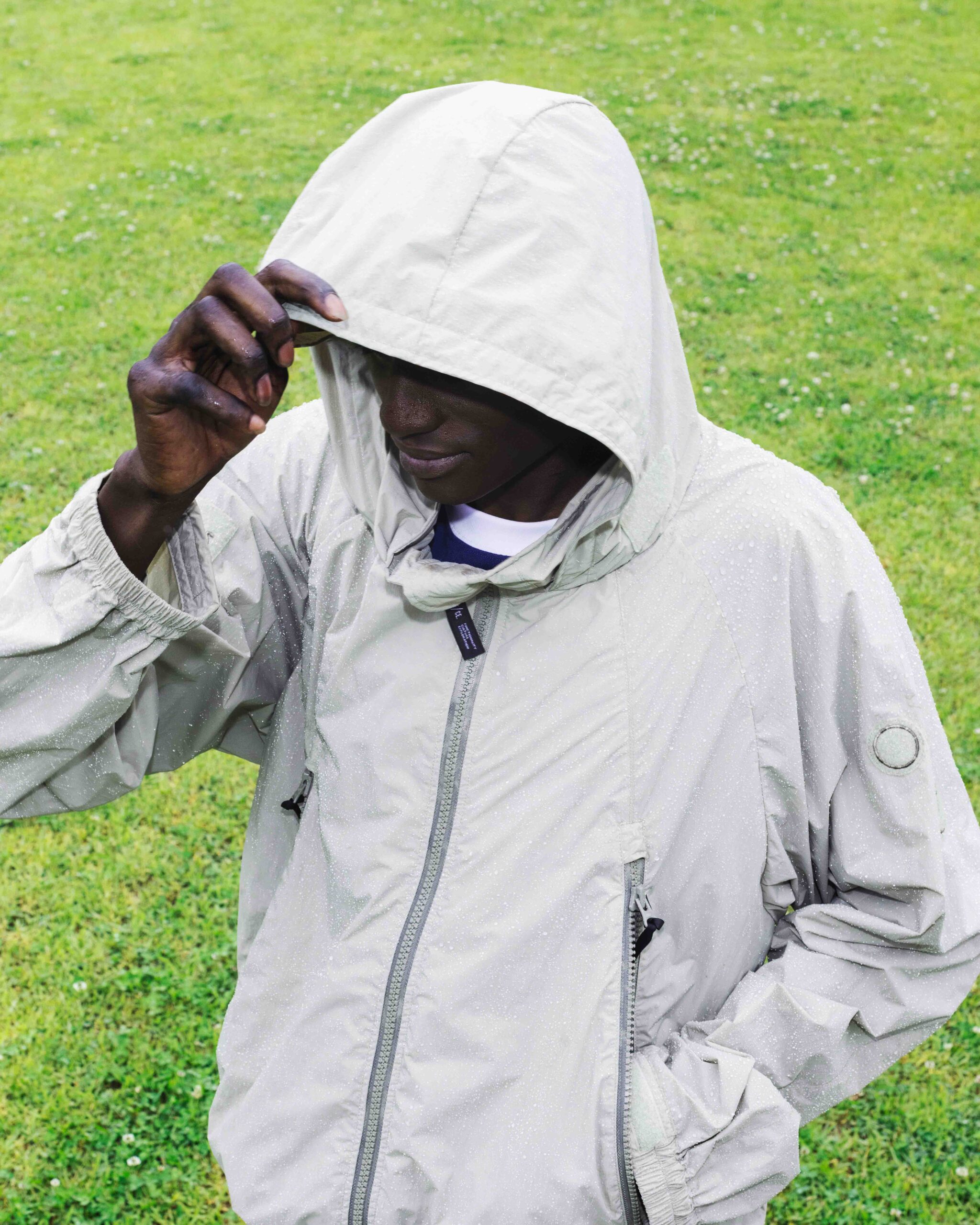 For 26SS, the jacket is crafted from a high-density 100% nylon fabric. An extra-thick acrylic coating is applied to the reverse side, creating a unique paper-like firmness and a sculptural, structured silhouette. Finished with a water-repellent treatment, it is designed to handle sudden changes in weather.