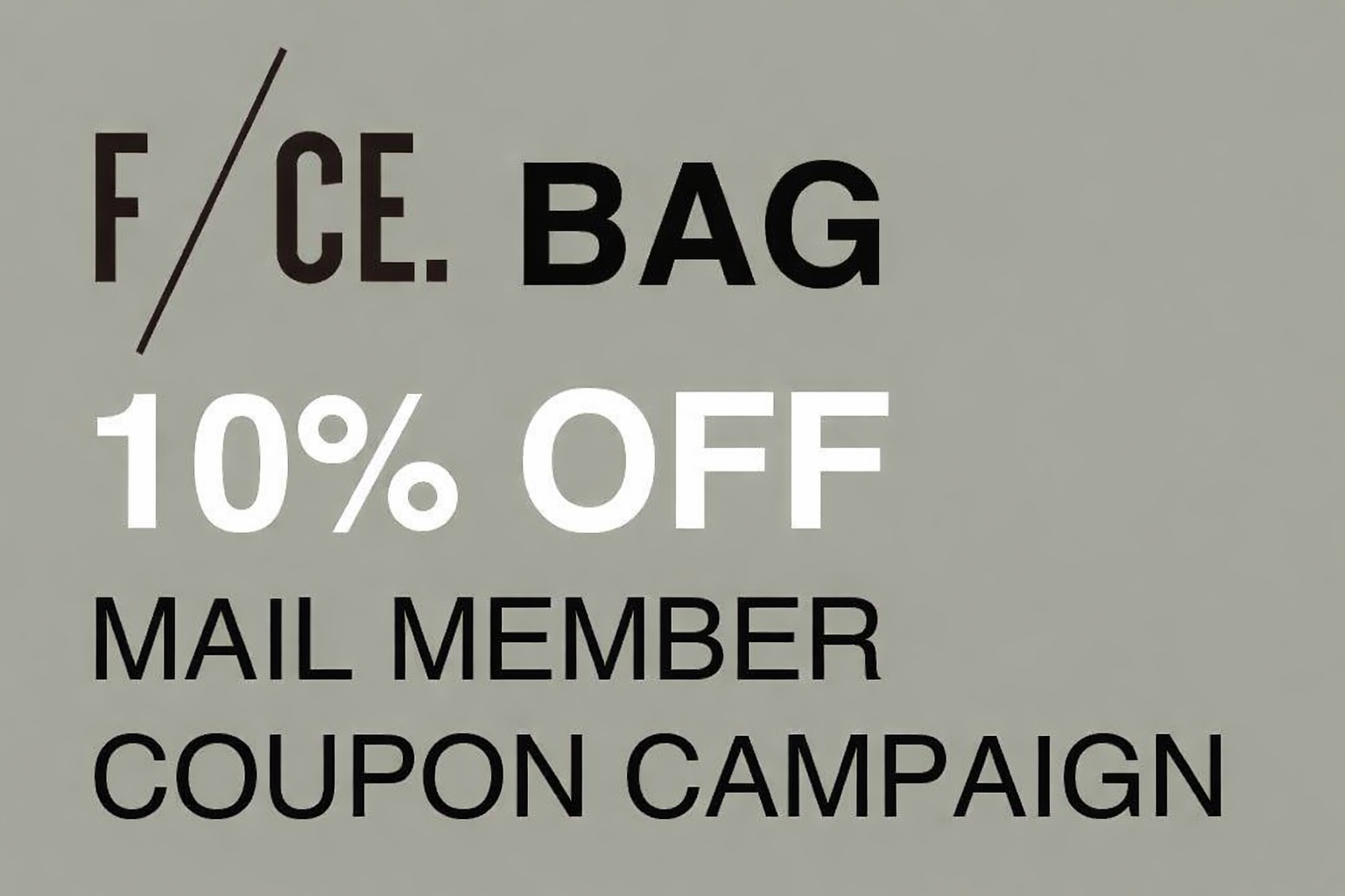 As a special offer exclusively for our email newsletter subscribers, we are pleased to announce a 10% OFF coupon campaign for F/CE. bags, available from February 24 to February 27.