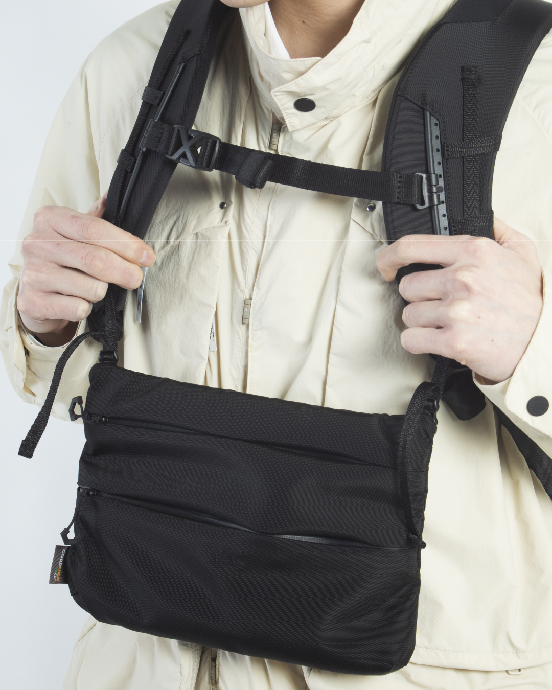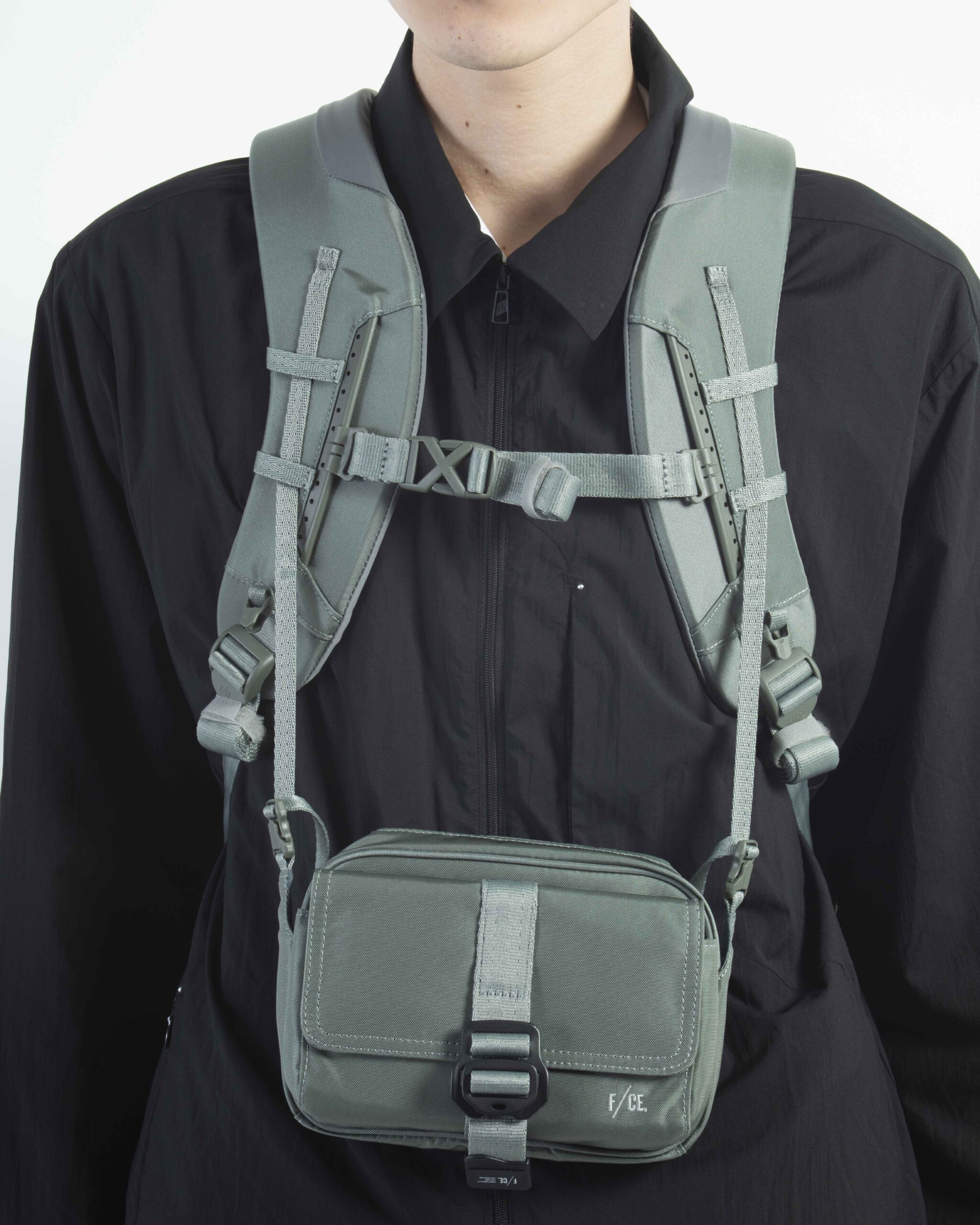 ショルダーにはサコッシュやポーチを取り付けられる「MOUNTING T SYSTEM」を搭載。
