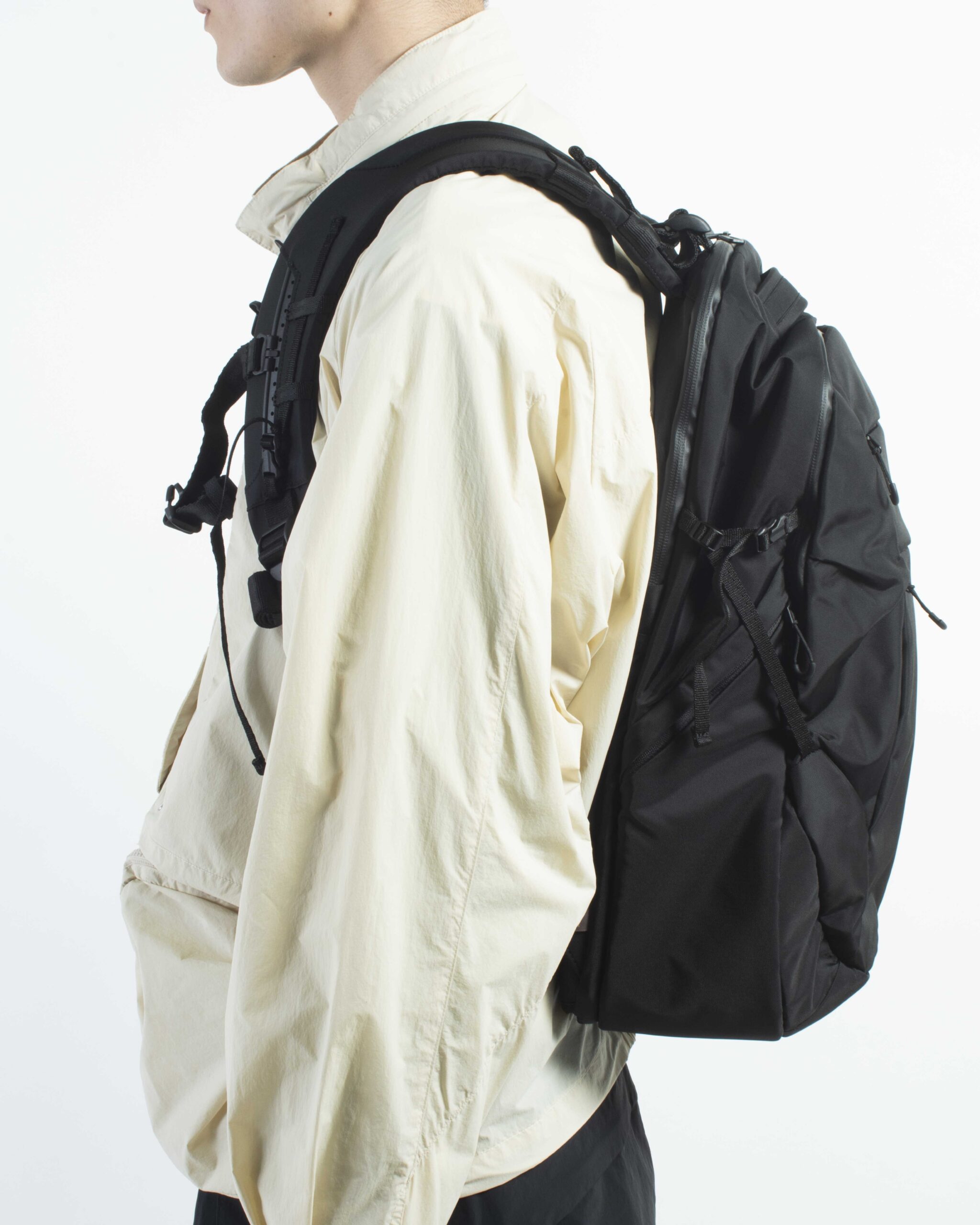 肩のカーブに沿うショルダー設計や細かなディテールにもこだわり、長時間の使用でも快適に背負えるバックパックです。
